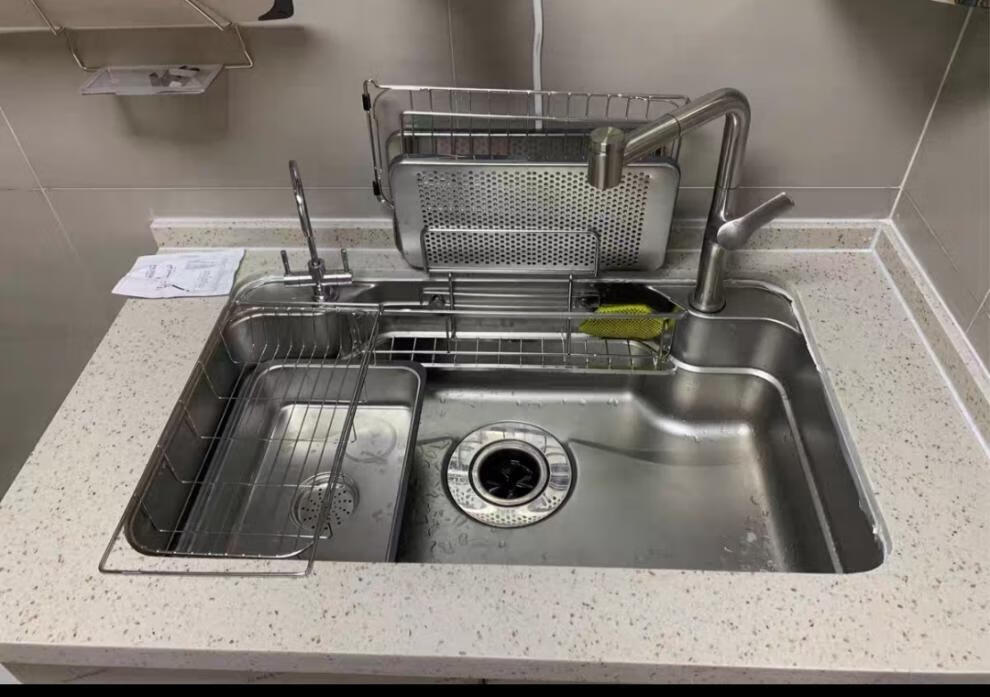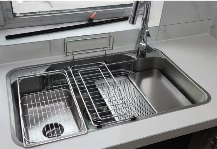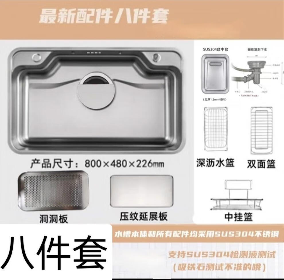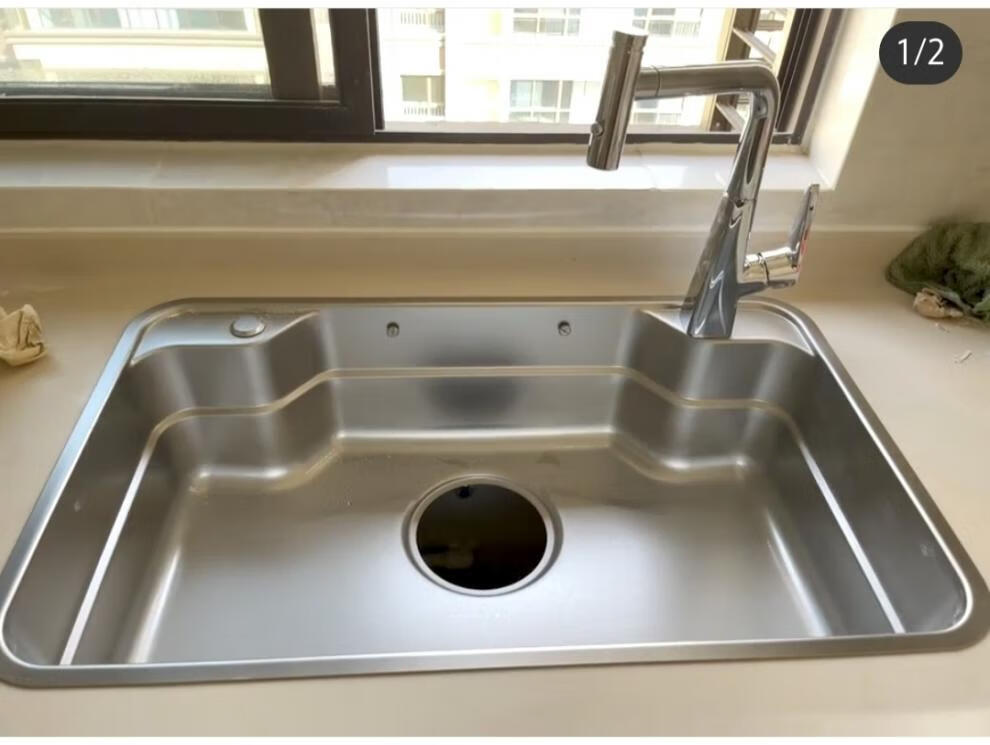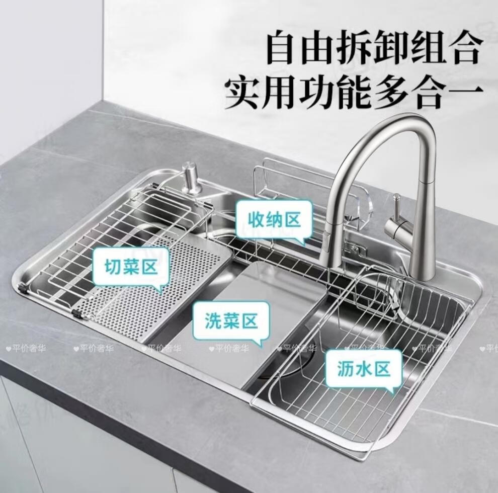 FANCYCHIC1272 people collect Japanese 3D embossed Lixil flat embossed sink SUS304 embossed large single tank multi-functional water fashion classic 8048 package A Moen pull-out faucet 80*48 nanometer silver