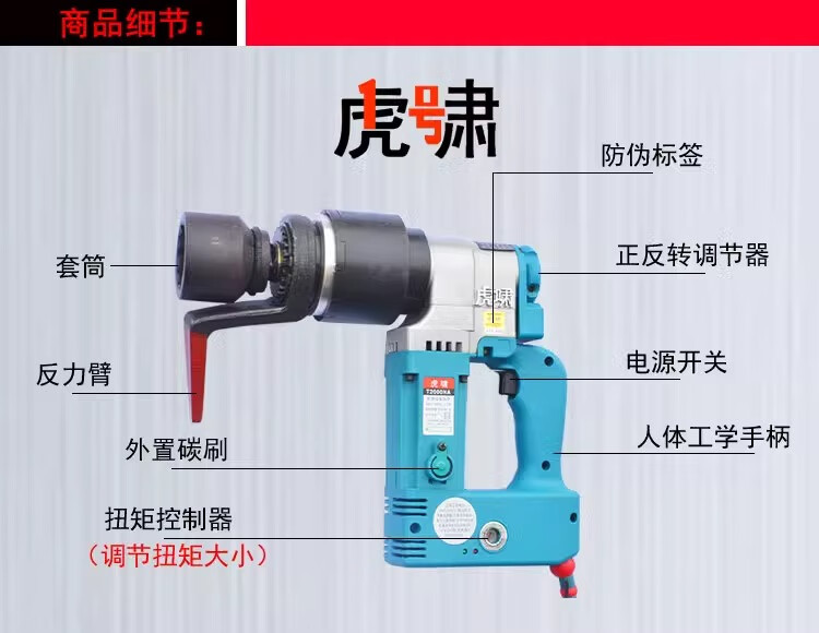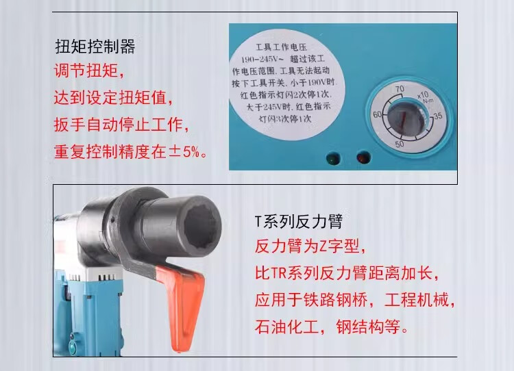 Huxiao Electric Fixed Torque Wrench Adjustable Torque Steel Structure Bridge Flange Pipe High Strength Bolt Loading and Unloading T1500NA (Torque 700-1700 Nm)