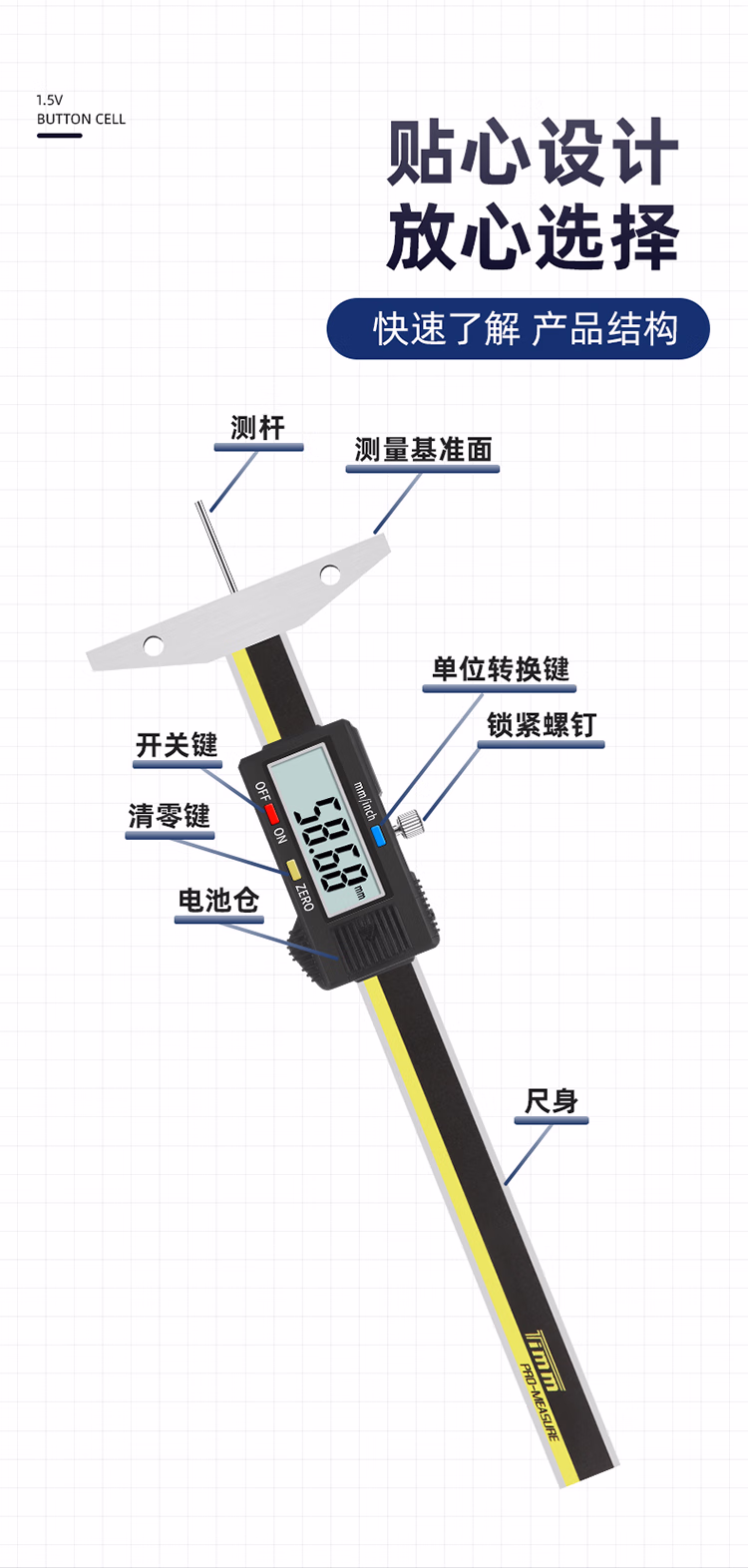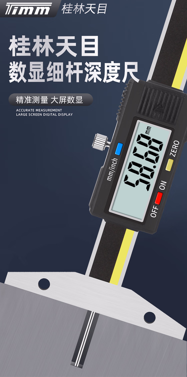 Zhenmu Guilin Tianmu thin rod depth ruler deep hole electronic depth ruler flat tip tip 0-50-100-200-300mm flat probe 0-150 rod diameter 2mm