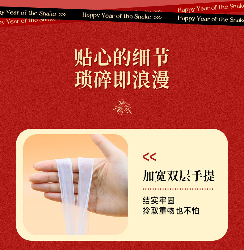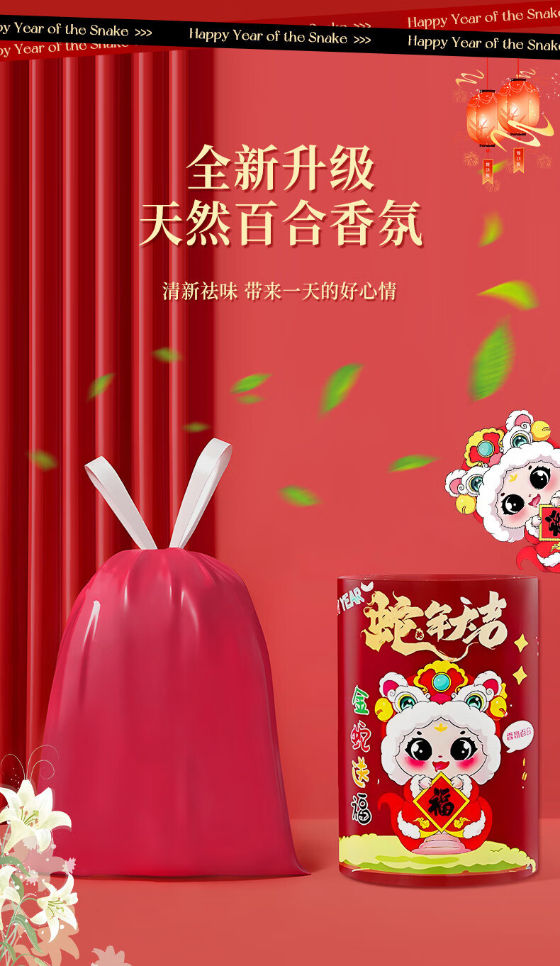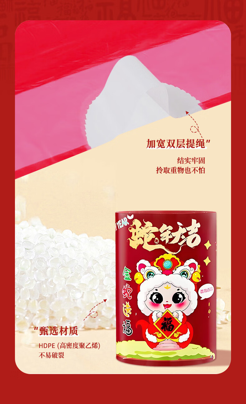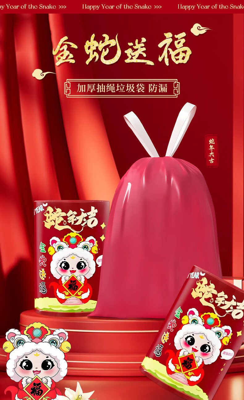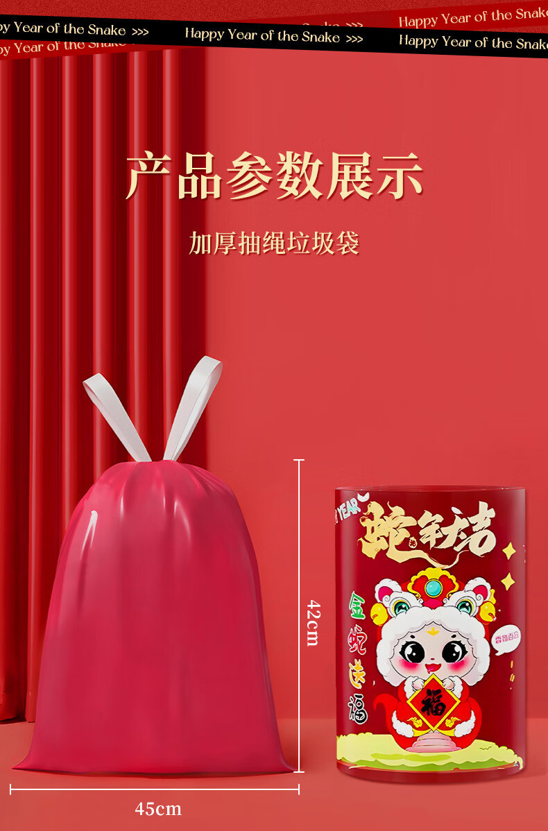 Good luck in the Year of the Snake 2025 New Year drawstring garbage bag kitchen portable drawstring thickened red garbage bag 3 rolls 300 pieces Good luck in the Year of the Snake
