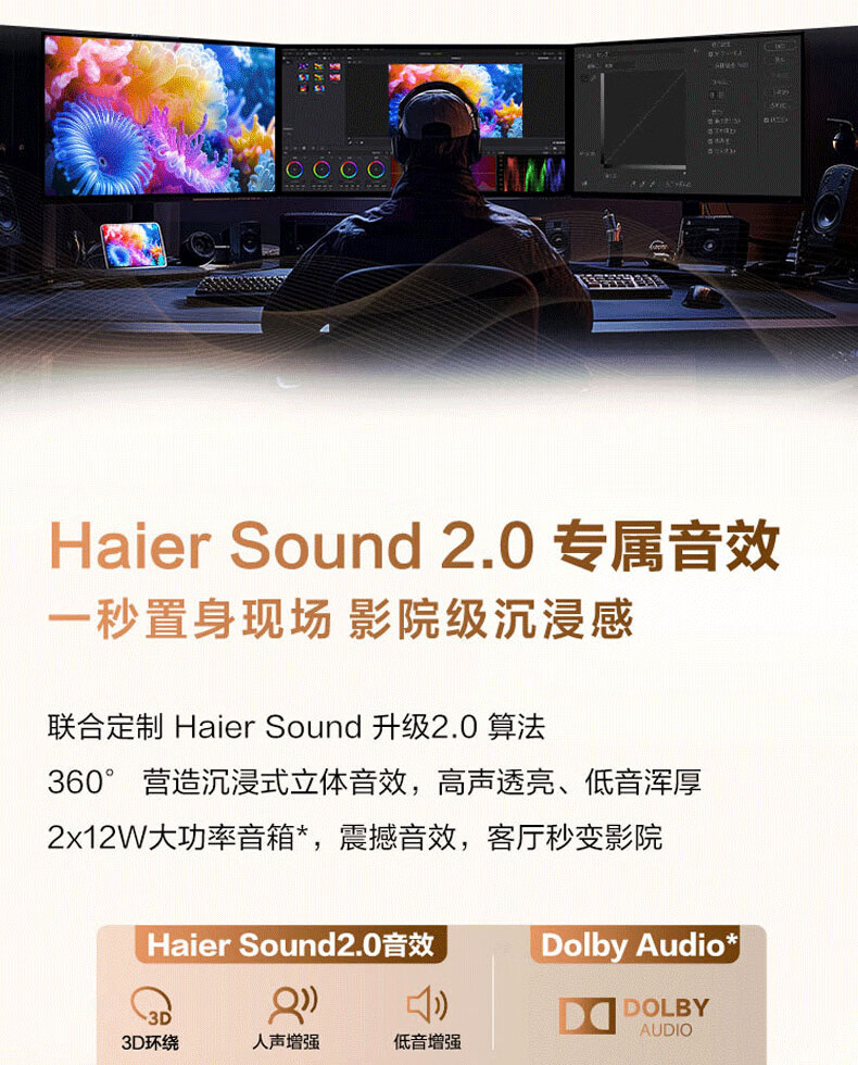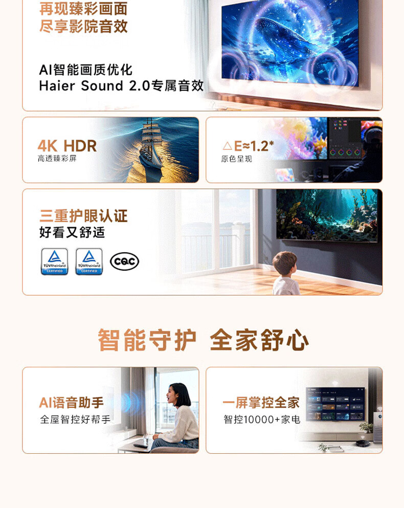 Haier TV 75-inch smart voice, triple eye protection, large memory, full channel 165HZ high brush, true 4K ultra-high definition quality, black full-screen flat-panel smart screen TV 75-inch, 64G large memory | New product launch | First-class energy efficiency