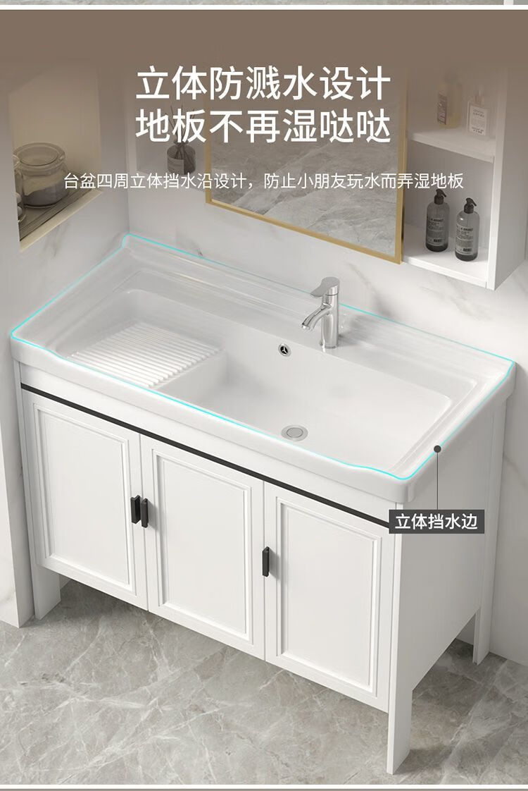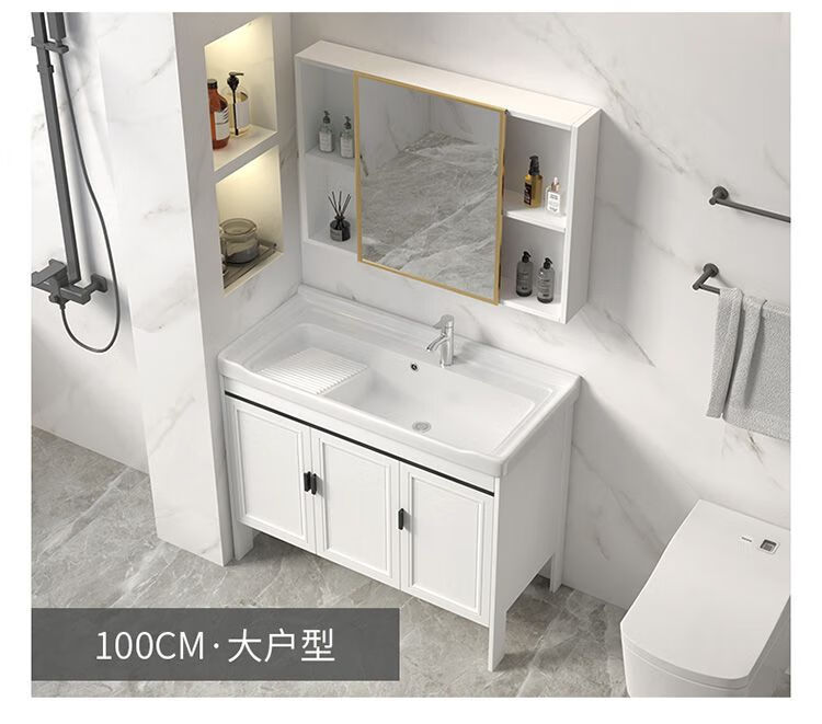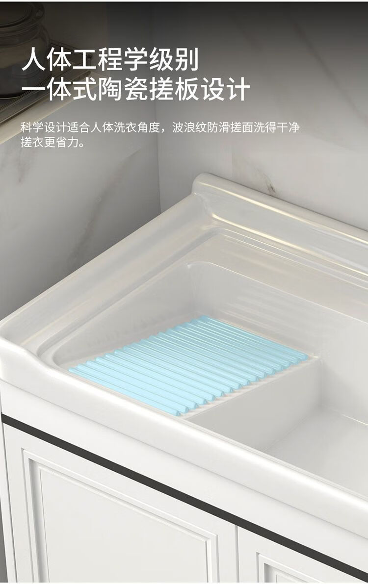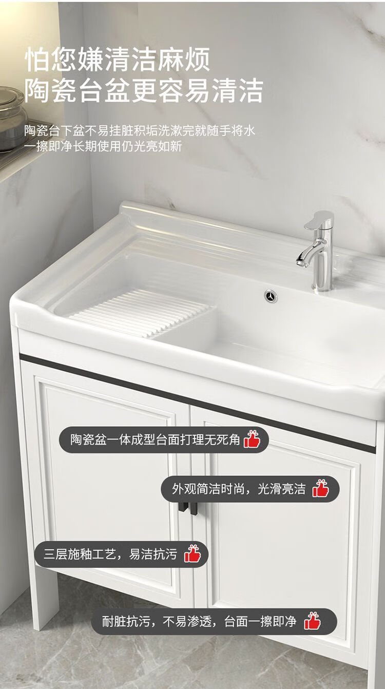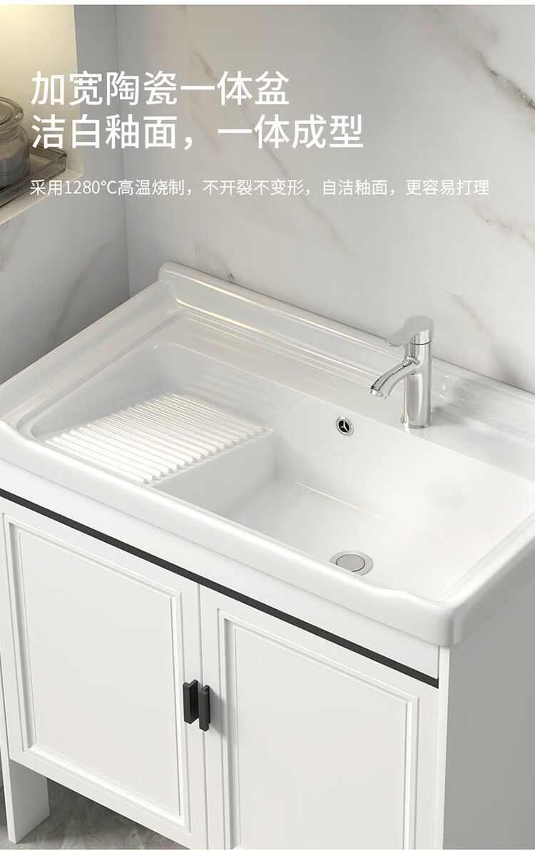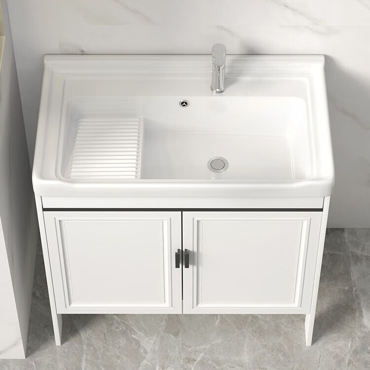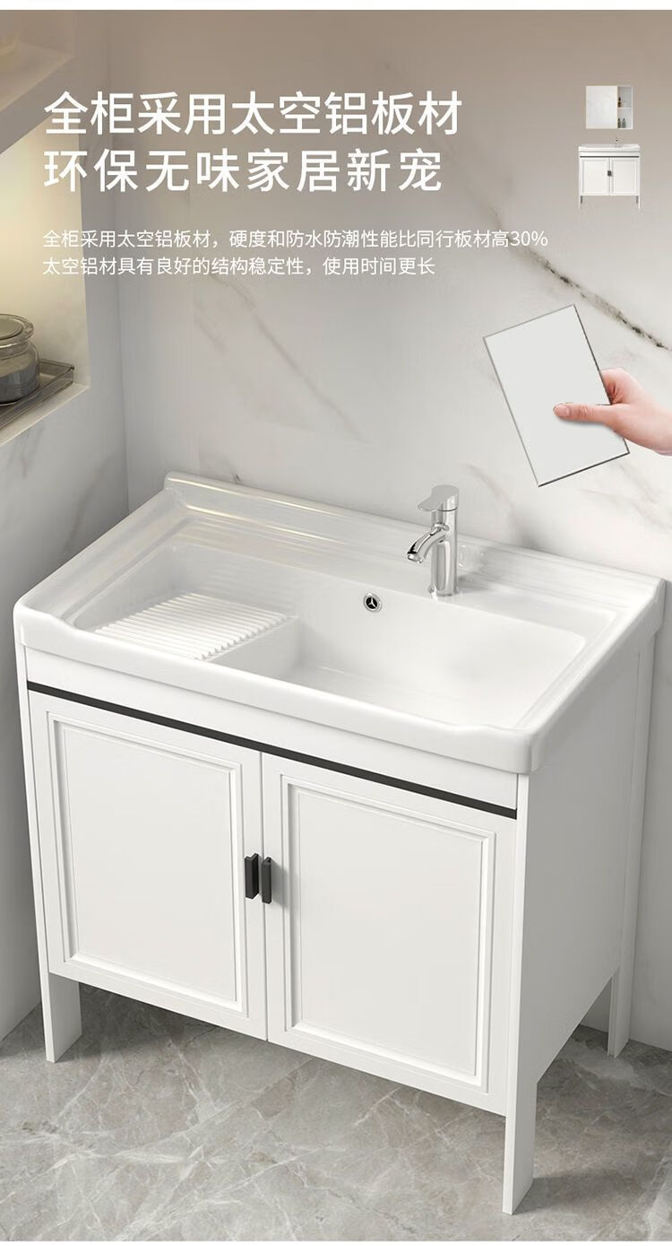 Jomoo's new space aluminum laundry cabinet balcony laundry sink ceramic washbasin with washboard floor-standing washbasin cabinet set ivory white 71*48 cabinet + basin + hardware + mirror cabinet