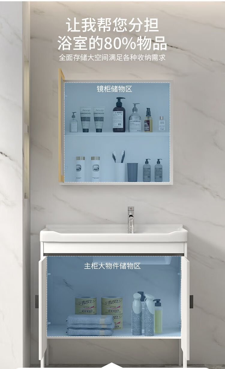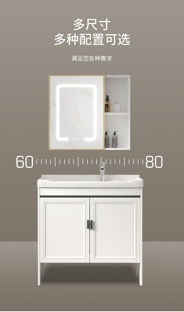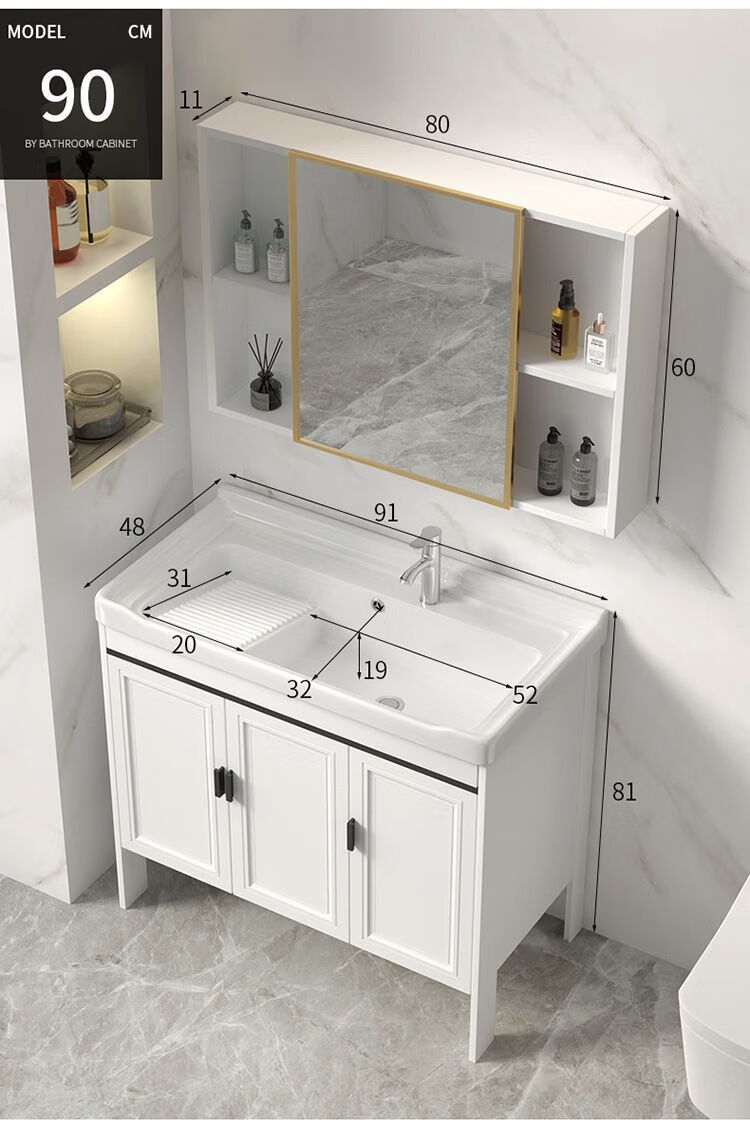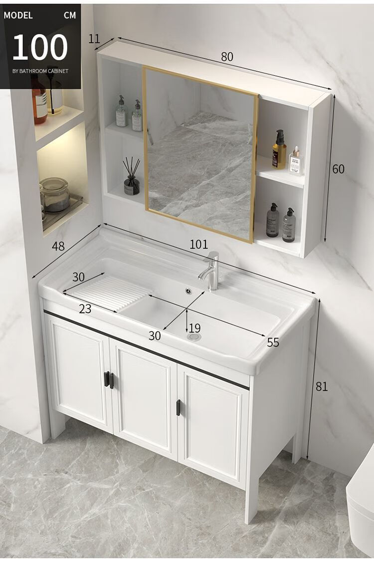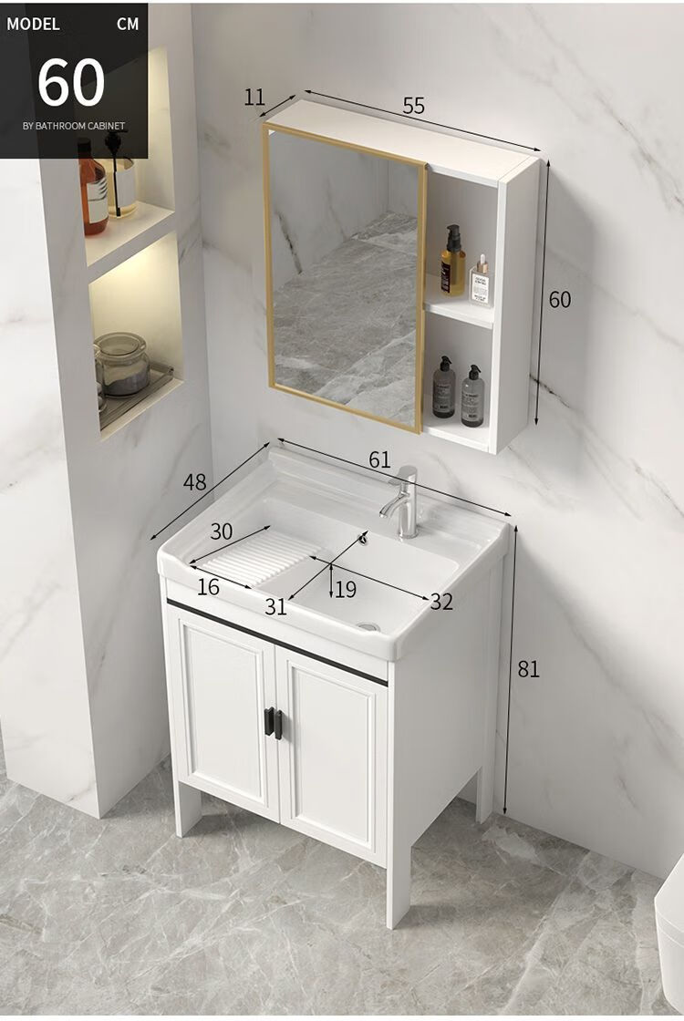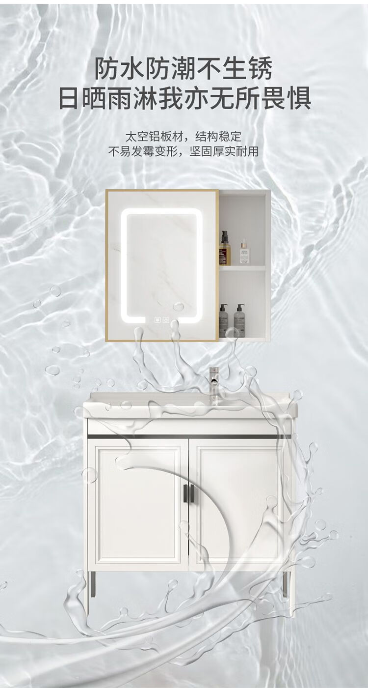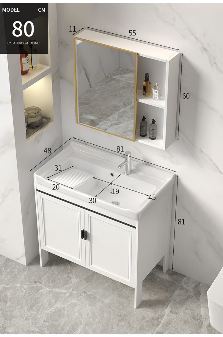 Jomoo's new space aluminum laundry cabinet balcony laundry sink ceramic washbasin with washboard floor-standing washbasin cabinet set ivory white 71*48 cabinet + basin + hardware + mirror cabinet