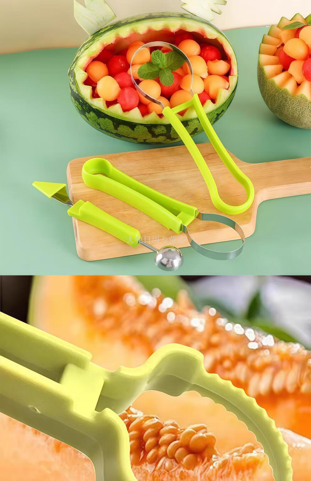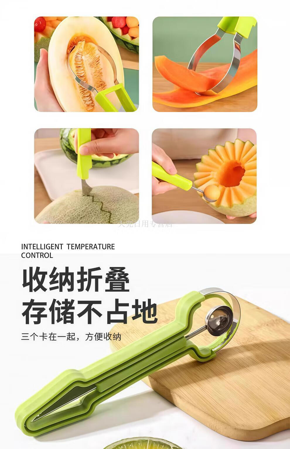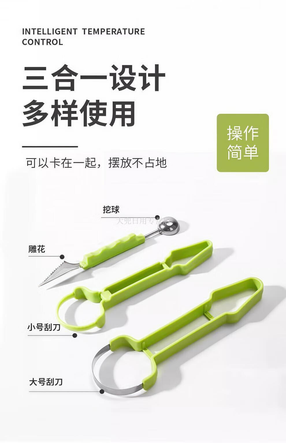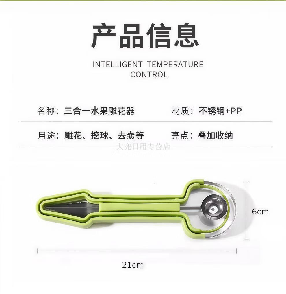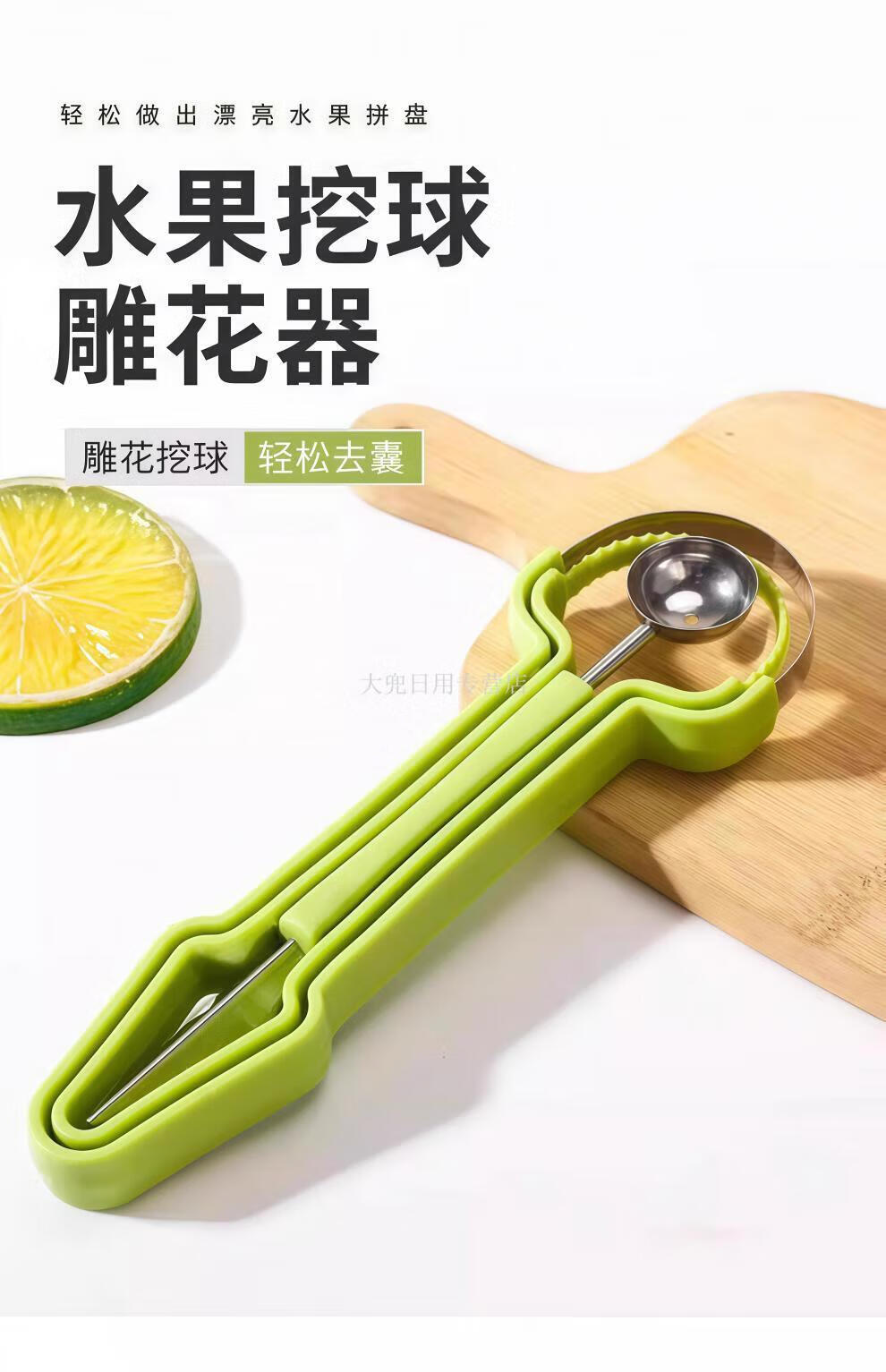 Magic Dou Shenghuo stainless steel three-in-one fruit divider, household multi-function ball digger, ball scoop, fruit meat carving tool, upgraded version 1 set, three-in-one fruit carving tool