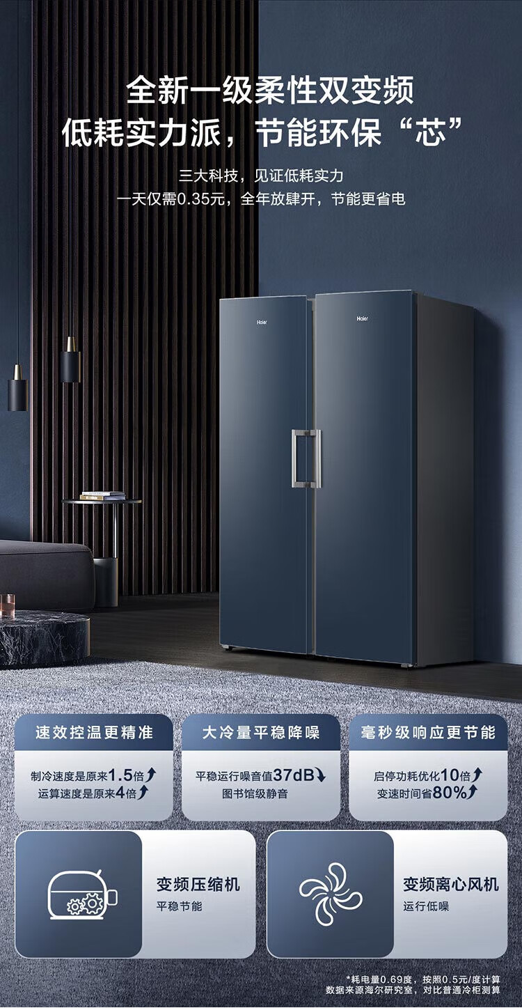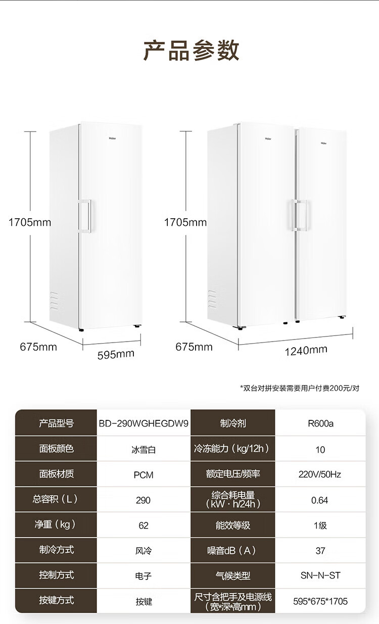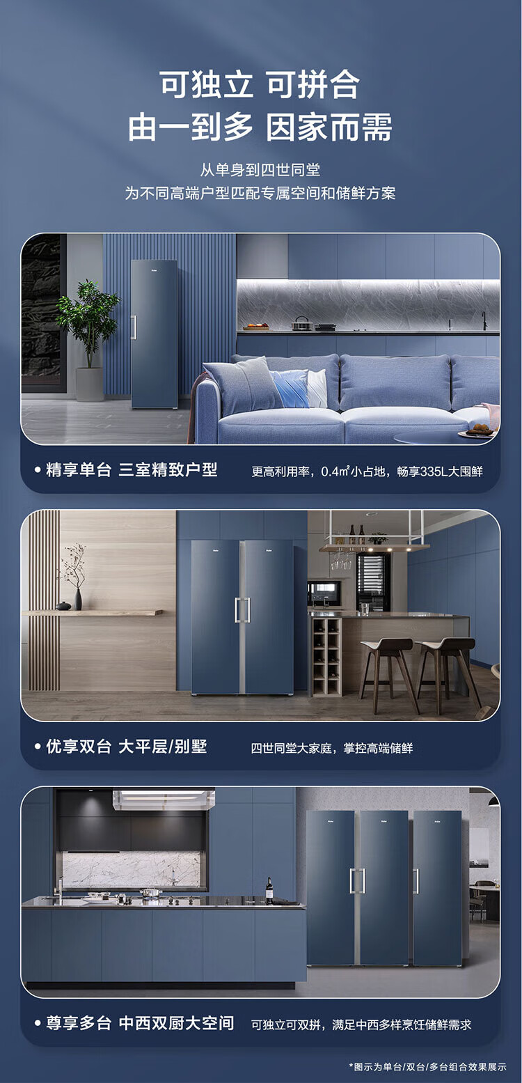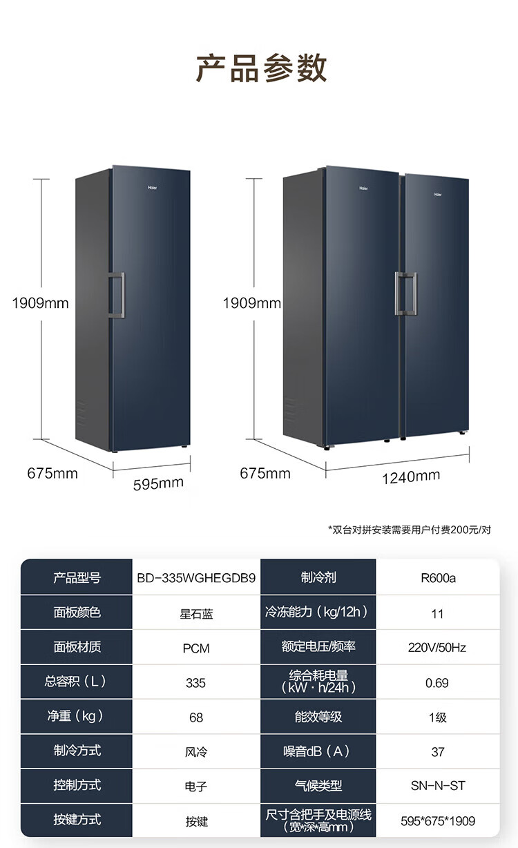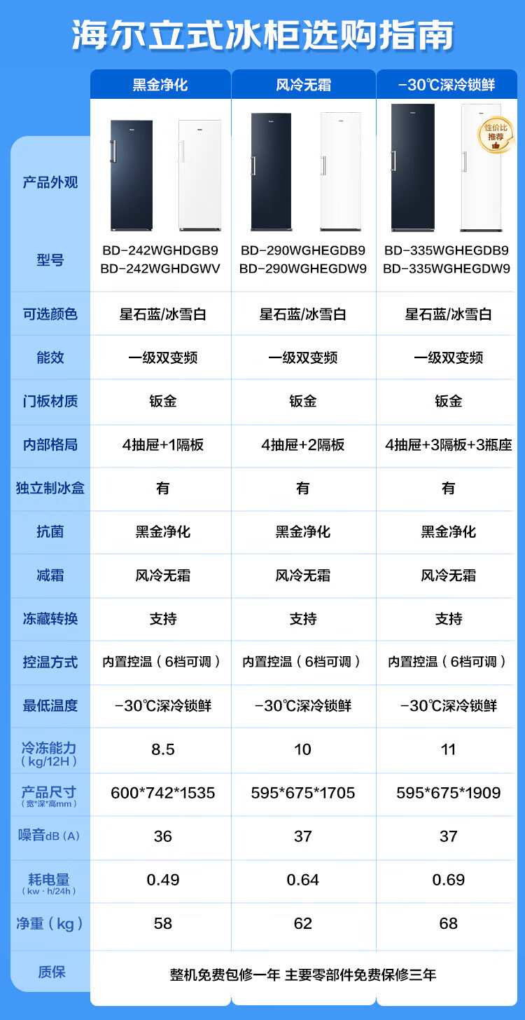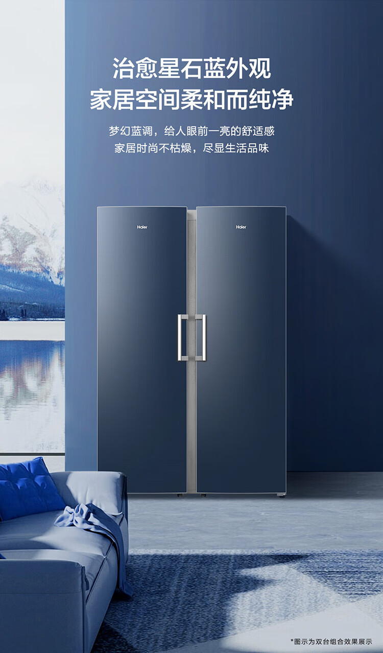 Haier vertical freezer 290/335 liters air-cooled frost-free household freezer double refrigerated freezer household commercial breast milk small refrigerator freezer 335 liters + star stone blue air-cooled frost-free + dual frequency conversion