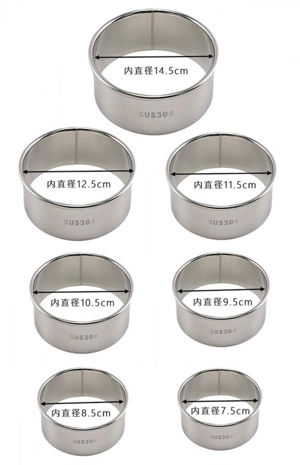Tongnian 304 stainless steel dumpling skin cutting mold household steamed bun skin press rice cake abrasive cake dough round cutting mold 304 skin press three-piece set 12.5+11.5+10.