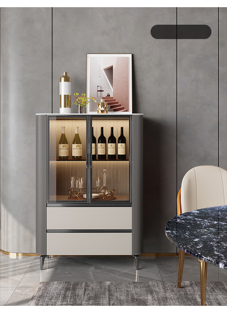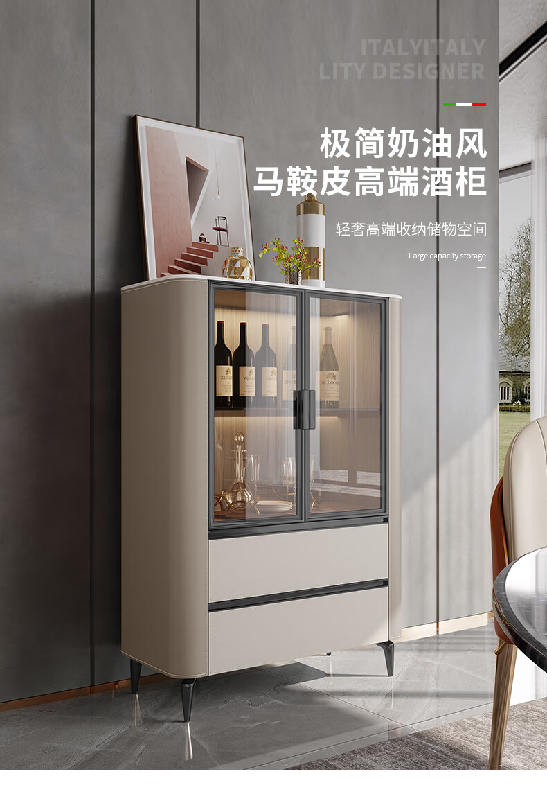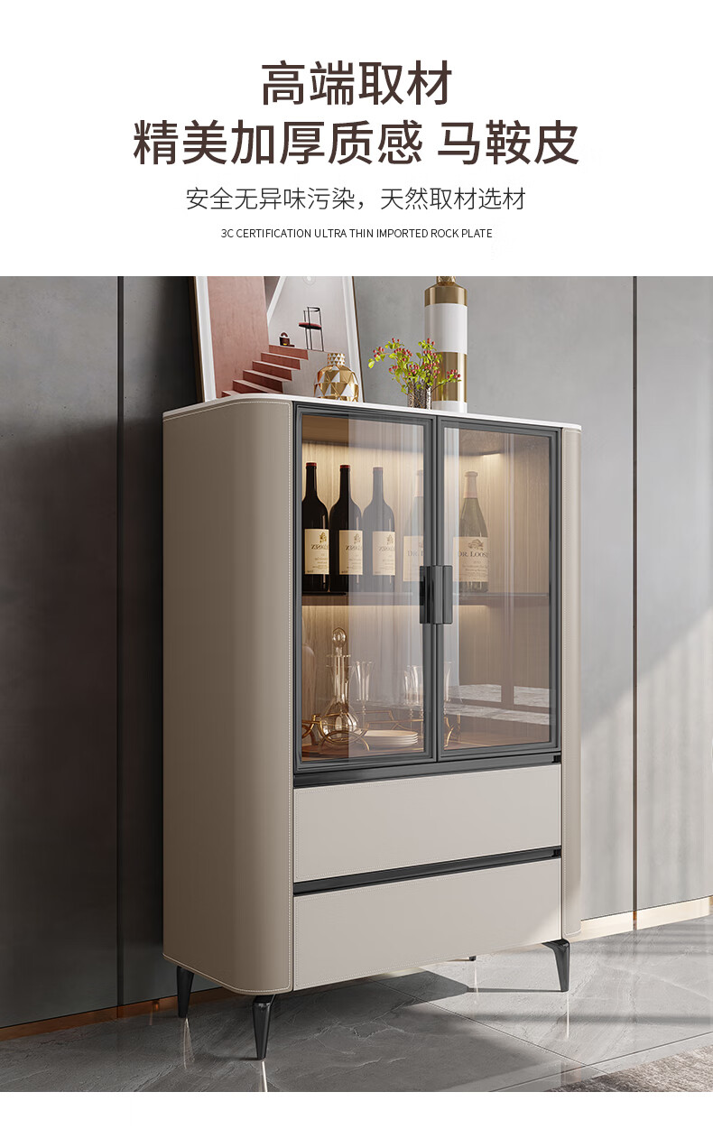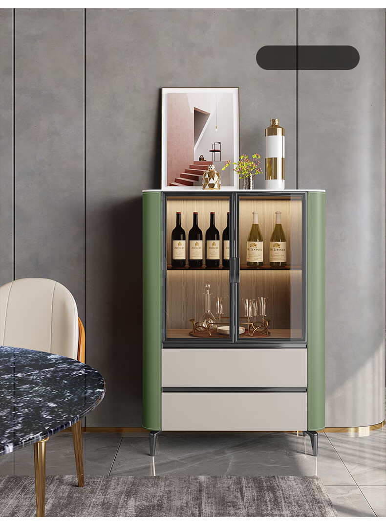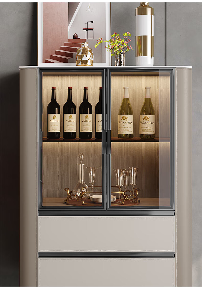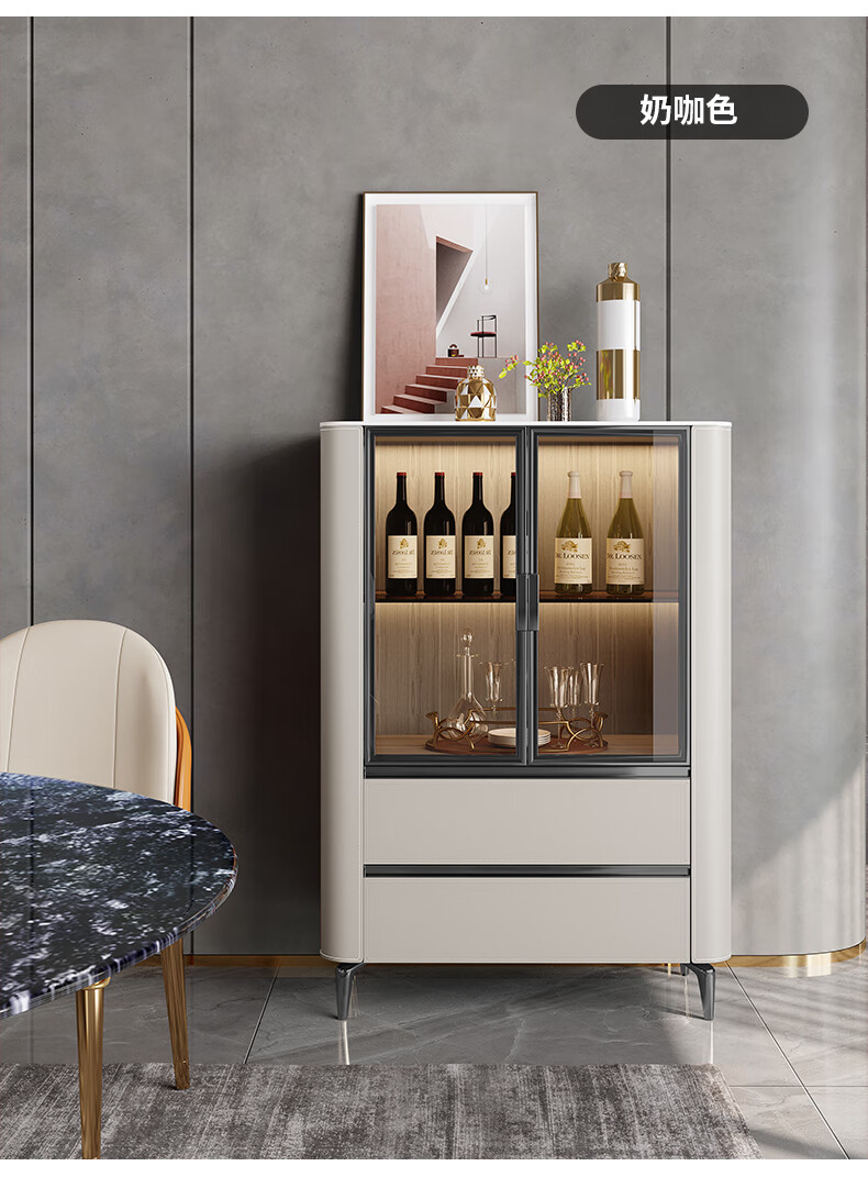 Weiyijiang Italian light luxury wine cabinet living room multi-functional storage cabinet tea cabinet modern small apartment storage cabinet glass display cabinet khaki wine cabinet
