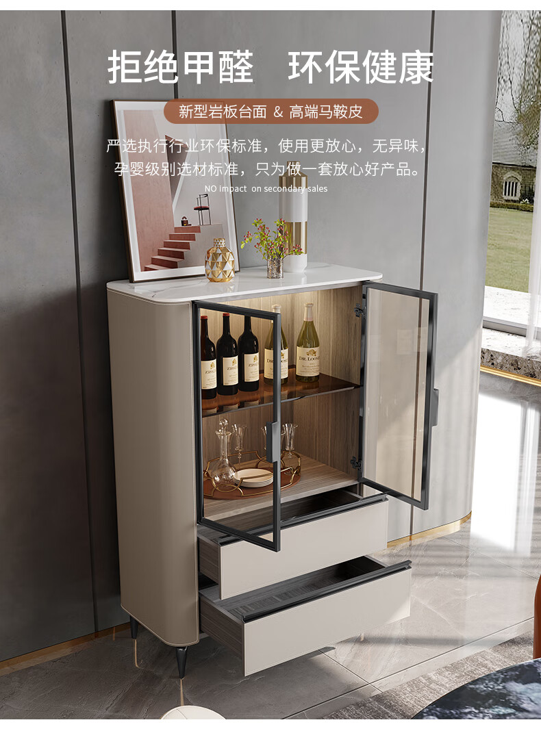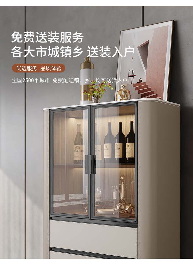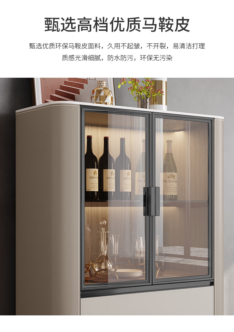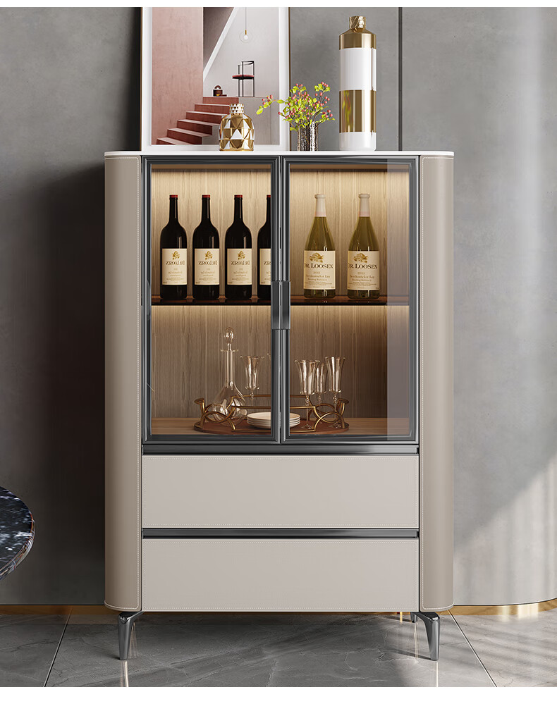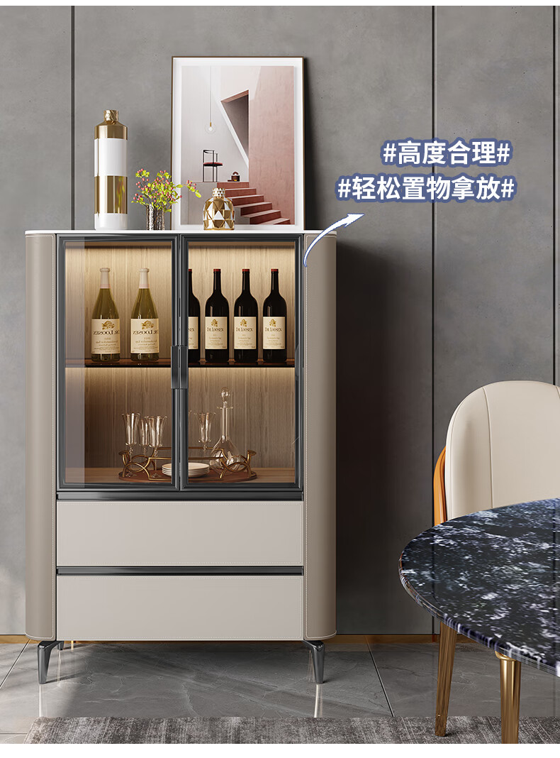 Weiyijiang Italian light luxury wine cabinet living room multi-functional storage cabinet tea cabinet modern small apartment storage cabinet glass display cabinet khaki wine cabinet