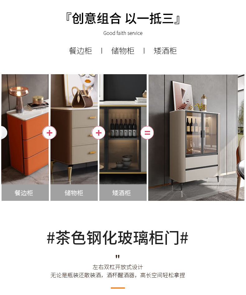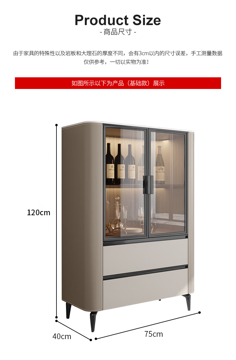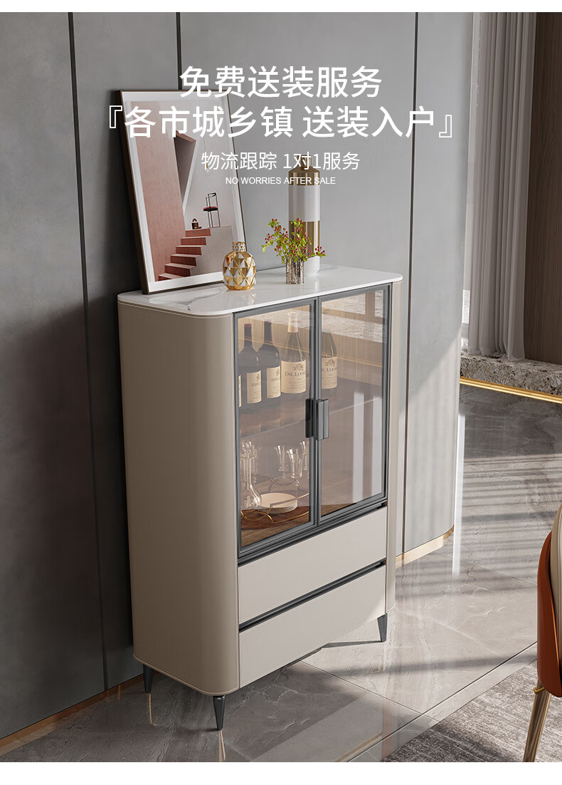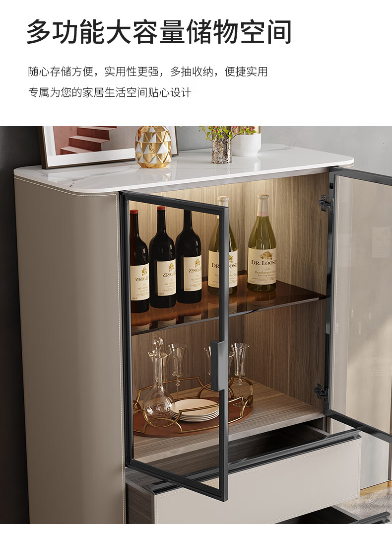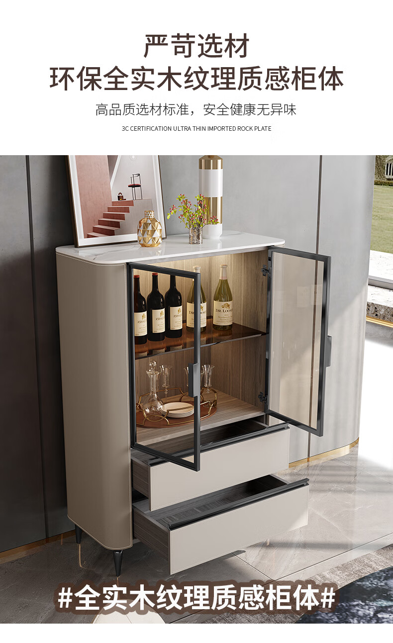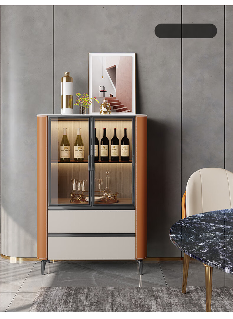 Weiyijiang Italian light luxury wine cabinet living room multi-functional storage cabinet tea cabinet modern small apartment storage cabinet glass display cabinet khaki wine cabinet