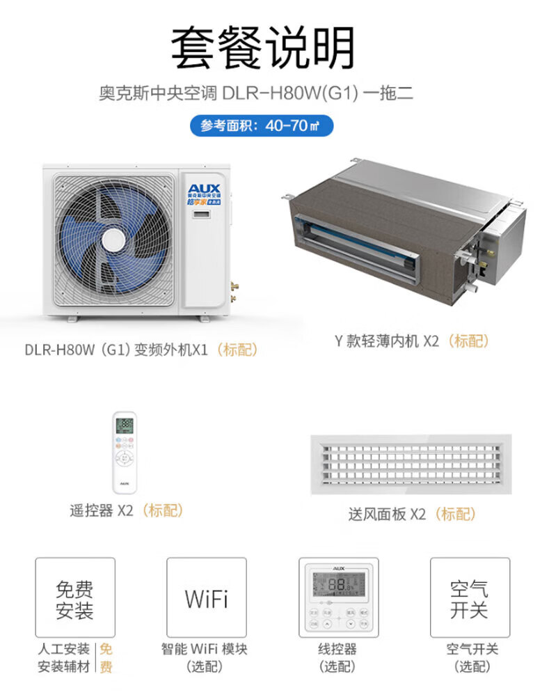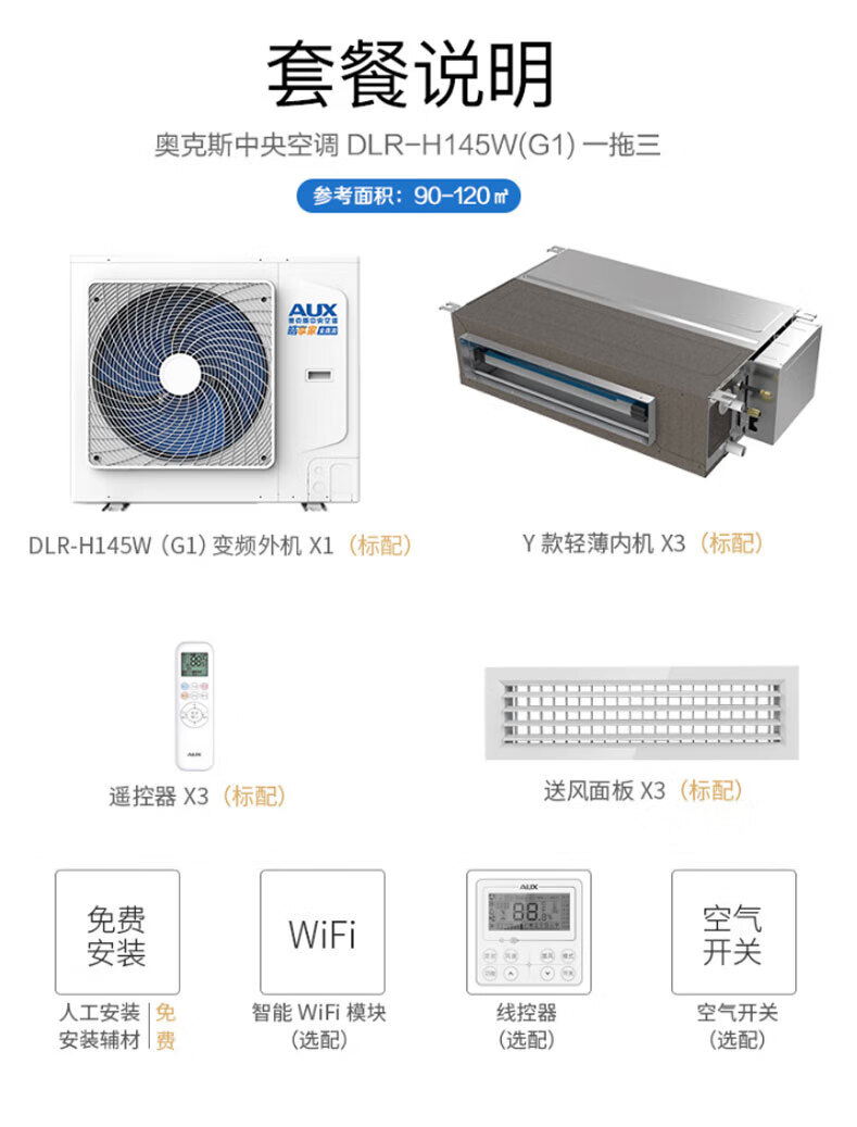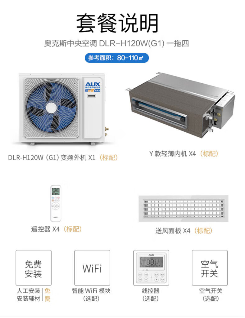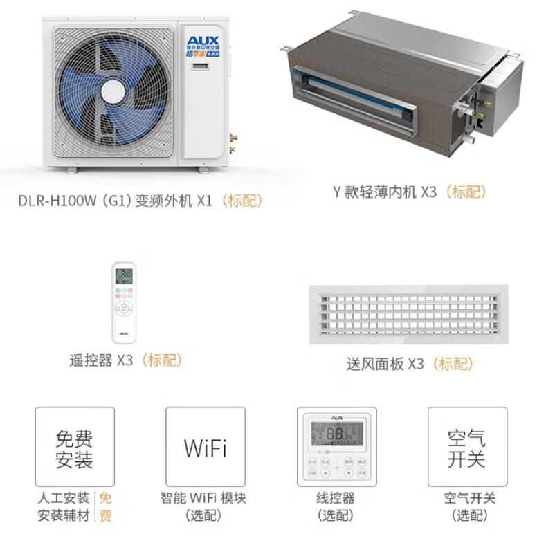 AUX central air-conditioning duct unit 4P5P6 HP one to four/three one to five one to six multi-online frequency conversion first level energy efficiency embedded home appliance subsidy 6 HP first level energy efficiency 145W (G1) one to four