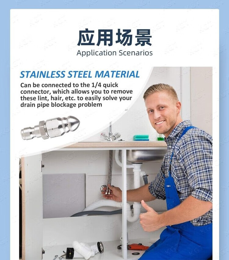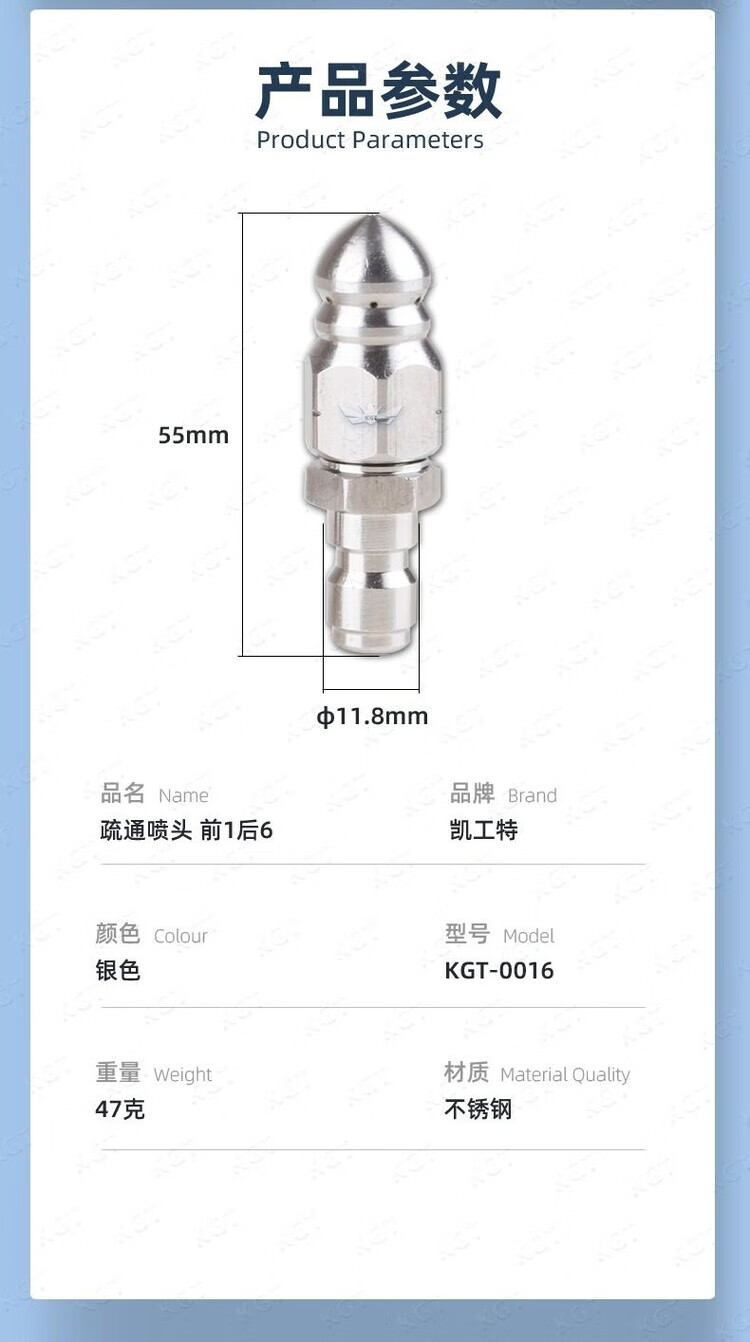 Water rat sewer dredging artifact high-pressure nozzle stainless steel 1/4 quick-plug front one rear six nozzles pipe cleaning head stainless steel water rat high-pressure nozzle dredge one pack front one rear six nozzles
