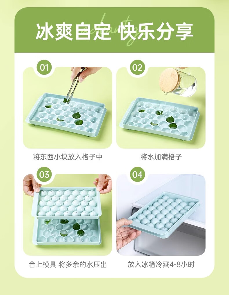 5 yuan, 5 pieces, homemade ice cube mold, food grade spherical ice tray, frozen ice cube artifact, creative refrigerator ice box, 33 ball ice box, 2 pack, random color