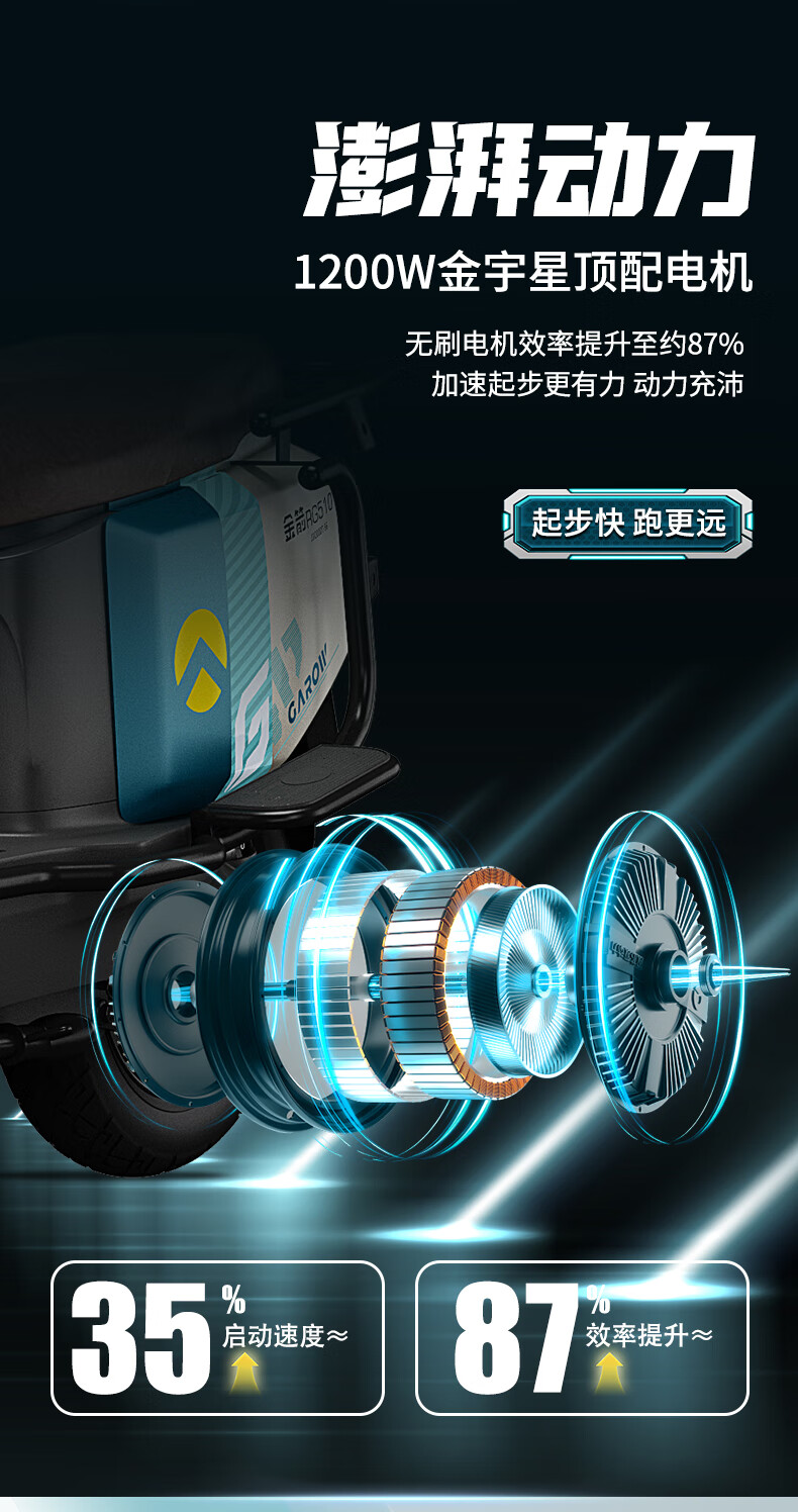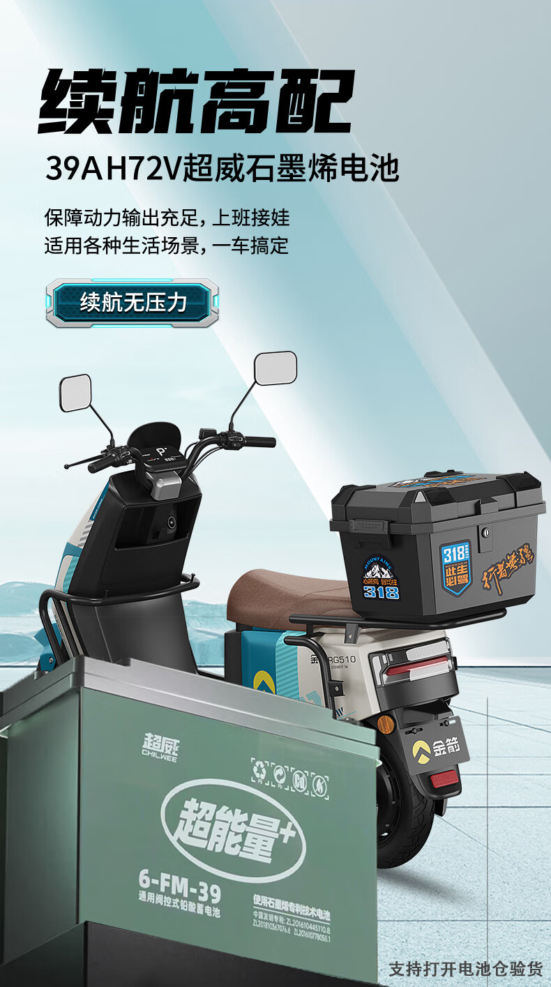 Golden Arrow Electric Motorcycle King 510 Flagship Edition 72V39A Long Range Electric Motorcycle Genuine Graphene Battery High Power Takeaway Electric Motorcycle Adult Commuting Two-Wheeled Battery Vehicle King 510 High-end Backrest Version Xingyue Gray 72V39Ah - Battery Life 150KM