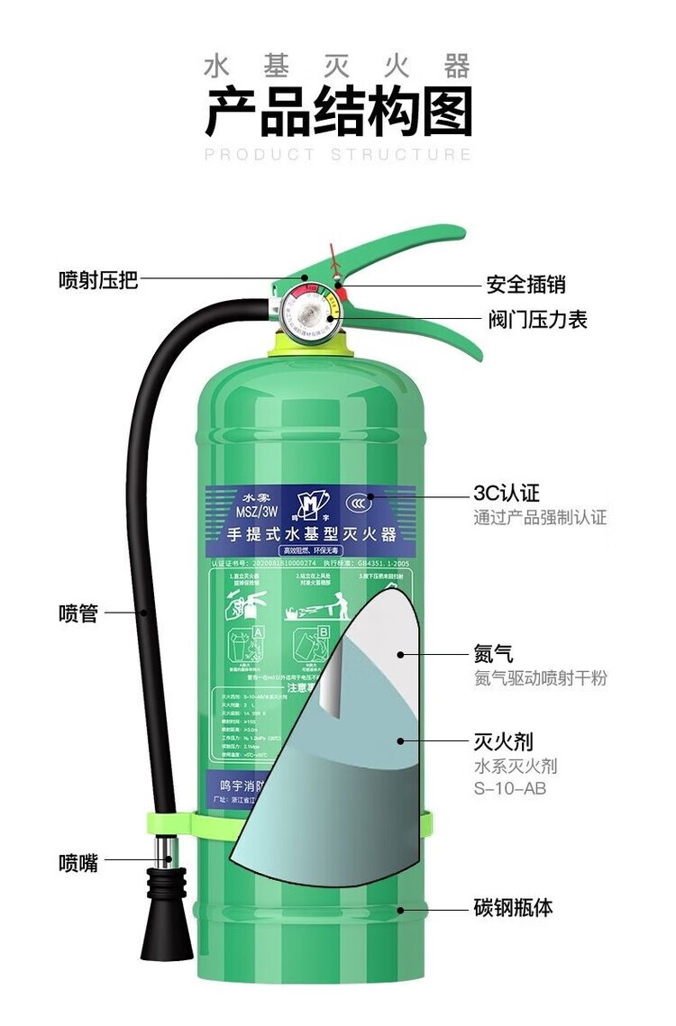 Fire extinguisher 4 kg water-based 1 liter 2 liters 3 liters 6 liters 9L water mist foam fire-fighting materials factory store home car use 3L water-based (extinguishing oil fire and electric fire)