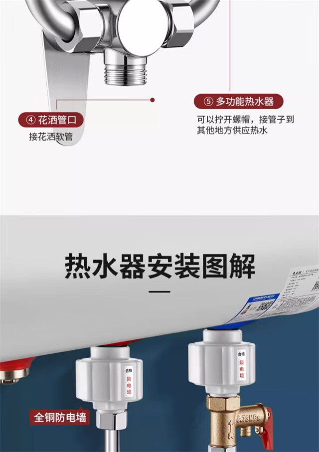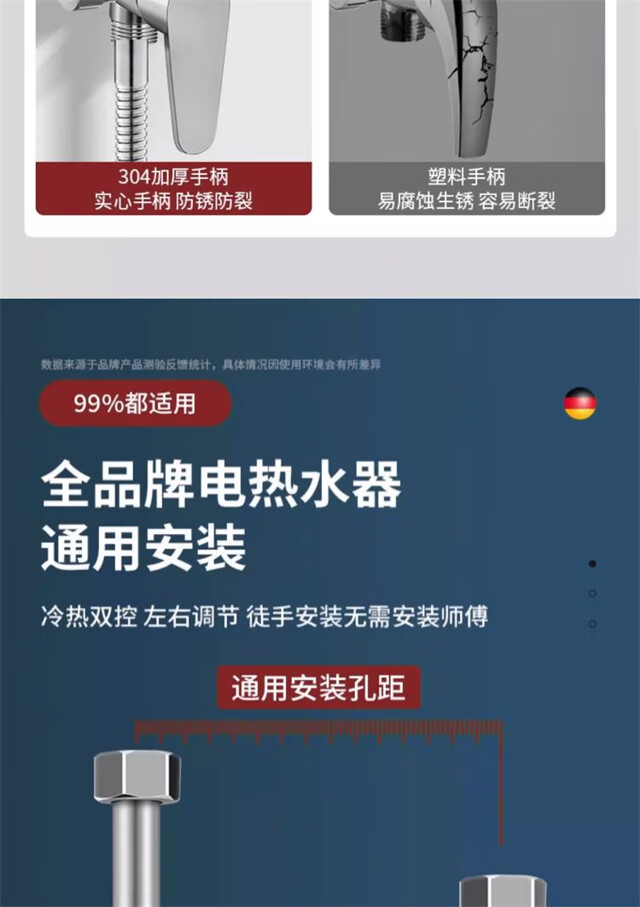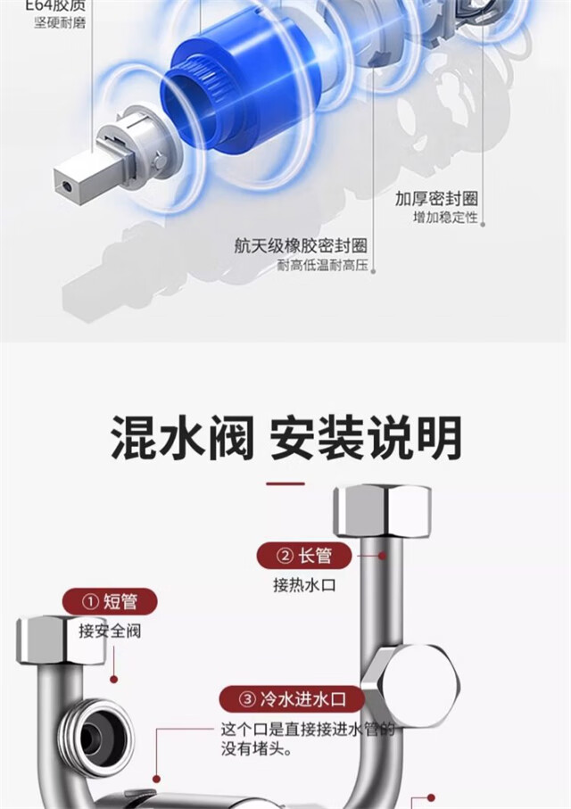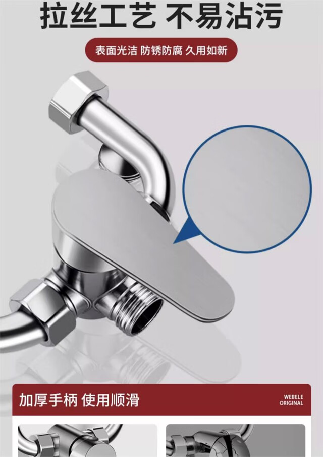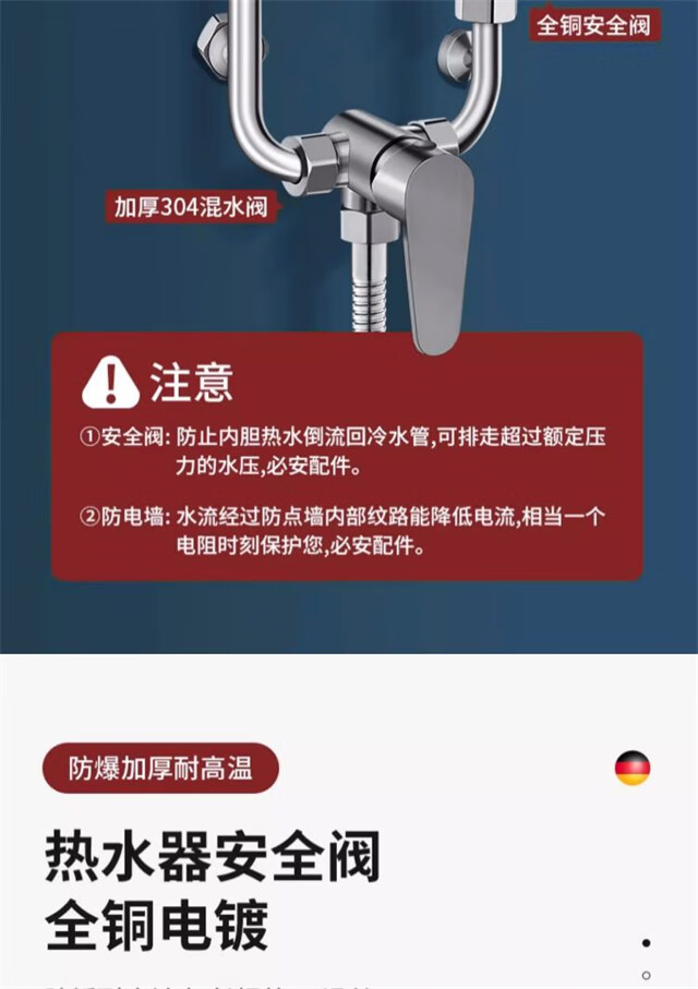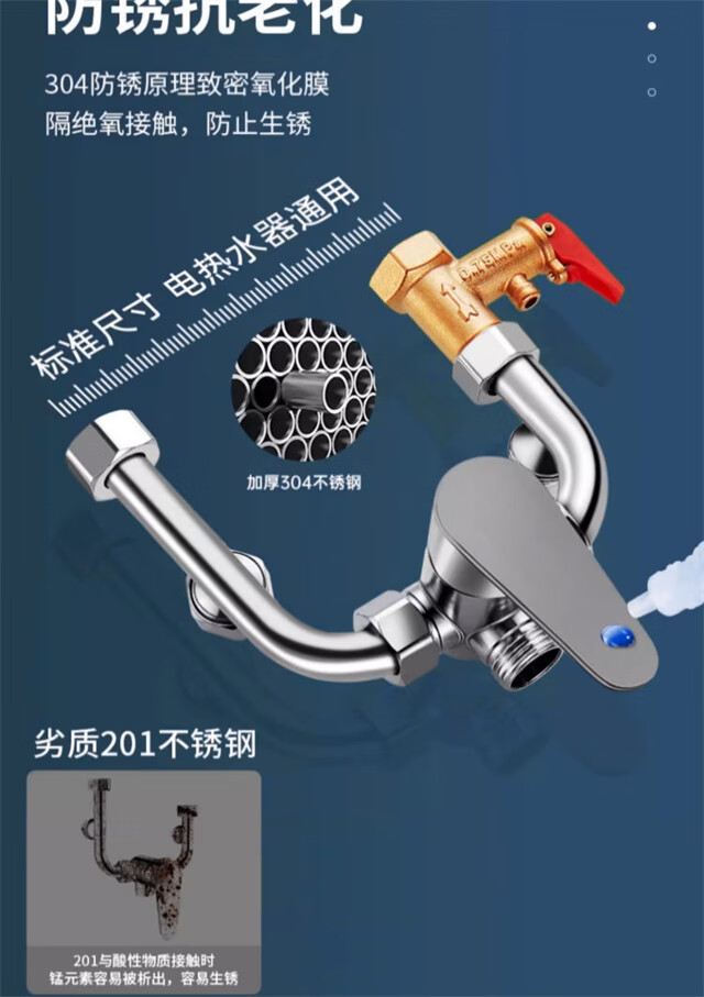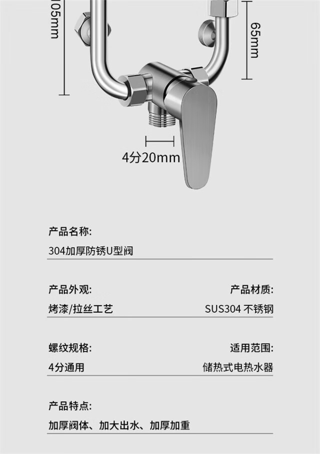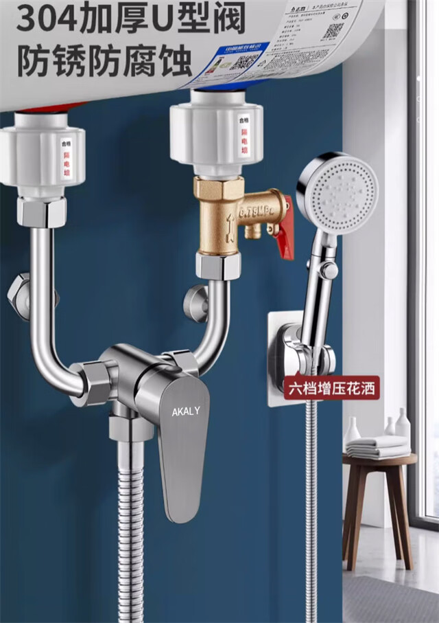 AKALY304 brushed stainless steel electric water heater mixing valve hot and cold mixing U-shaped valve exposed shower switch accessories household single water heater mixing valve free safety valve