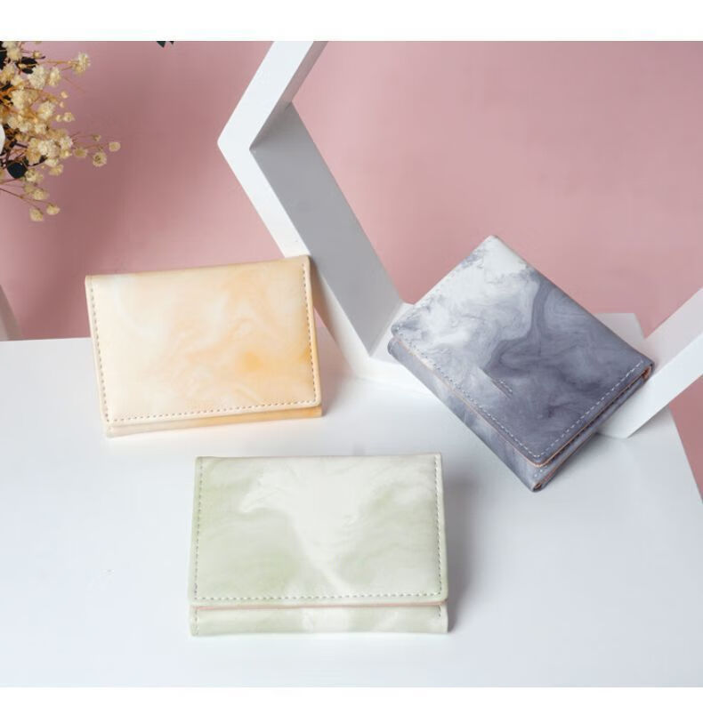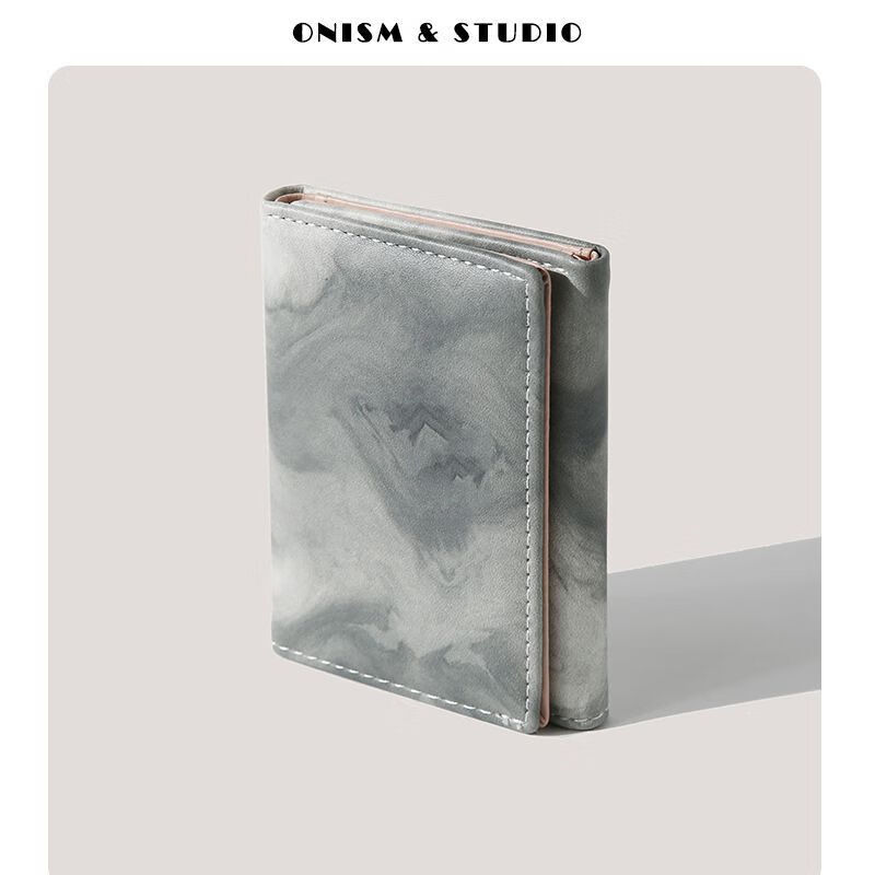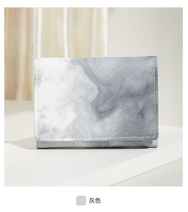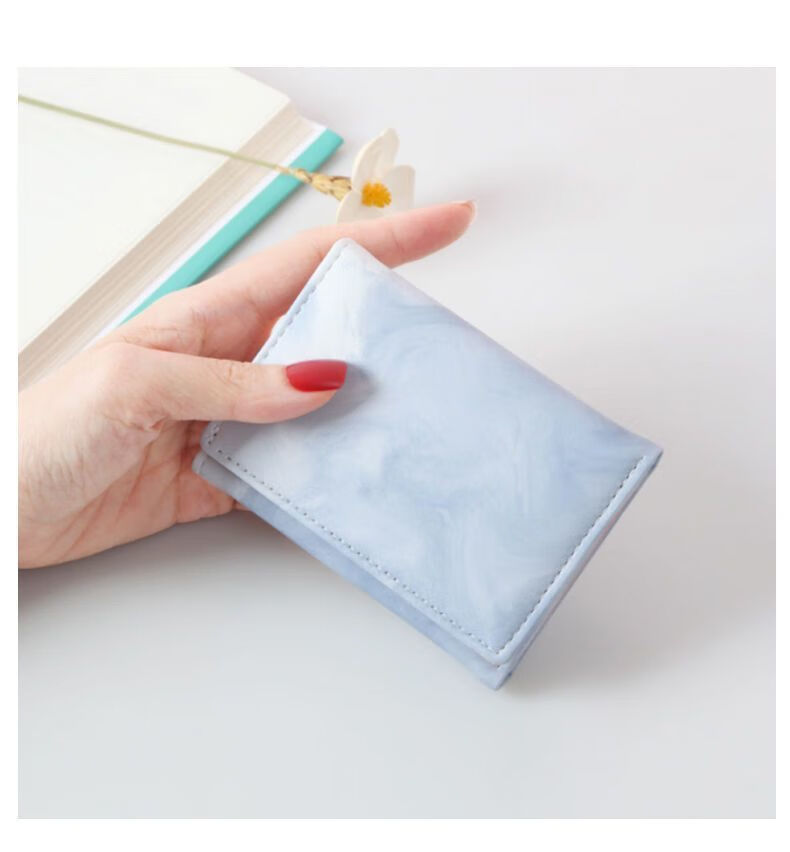 Henglan Wallet Women's Niche Design Short Coin Purse Student Cute Wallet Clip for Women Sky Gray Tri-fold Bag Anti-Theft Brush/Shielding RFID Security