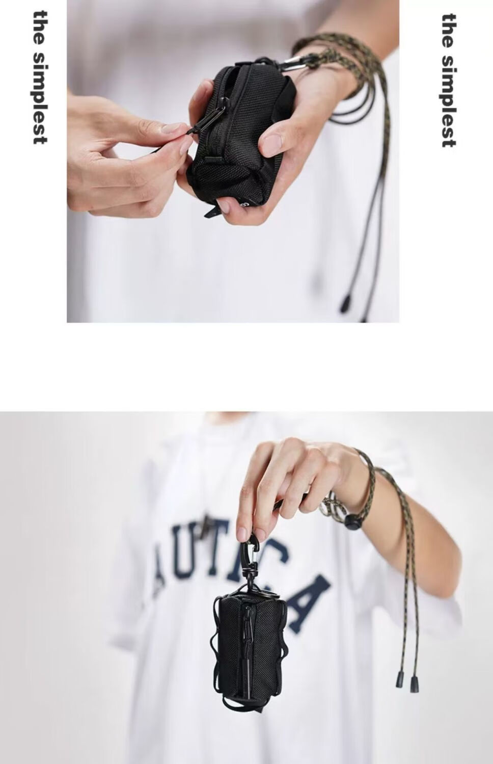 Henglan ballistic nylon functional pendant bag mini barrel bag trendy men and women halter neck car key black
