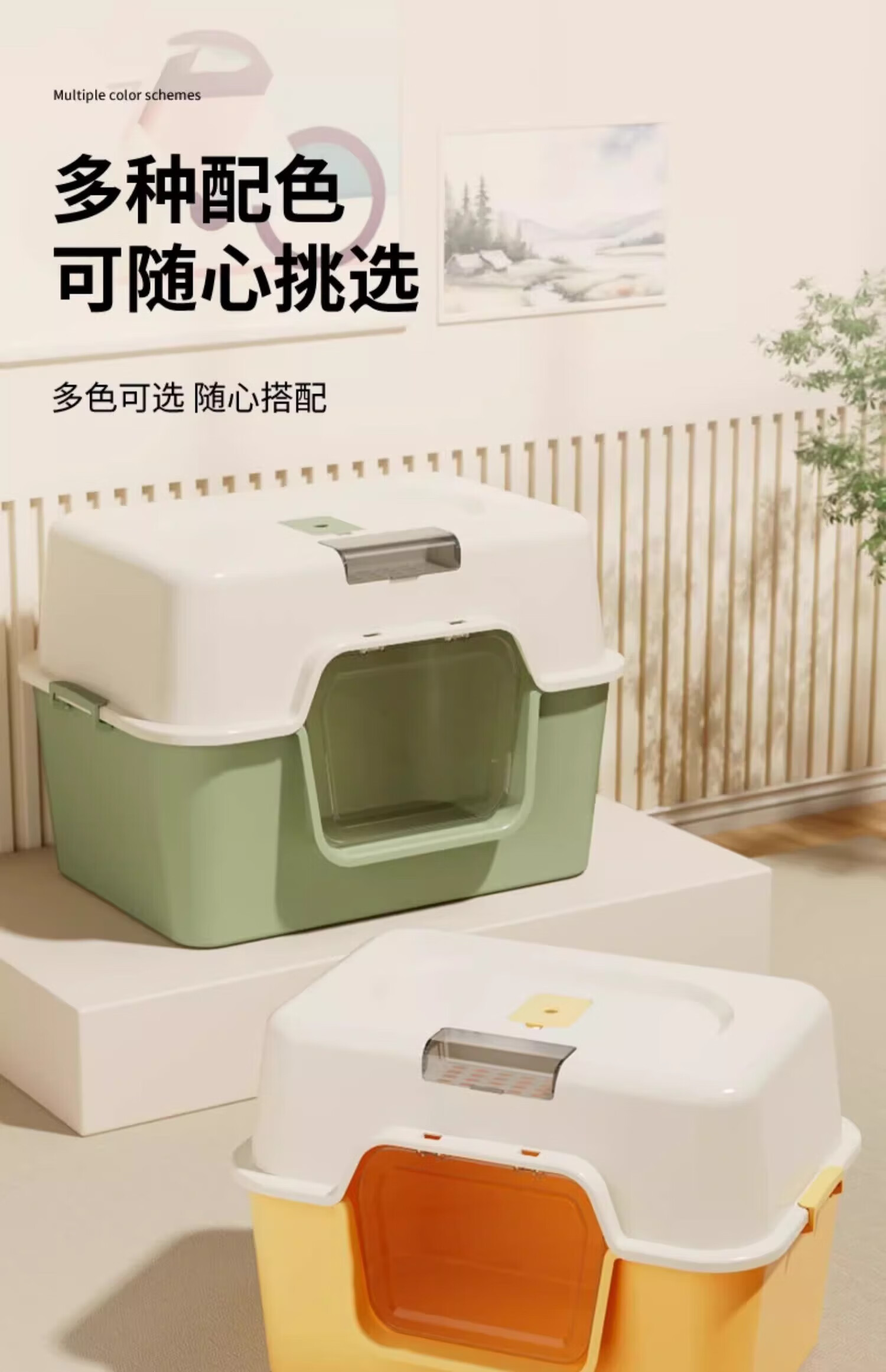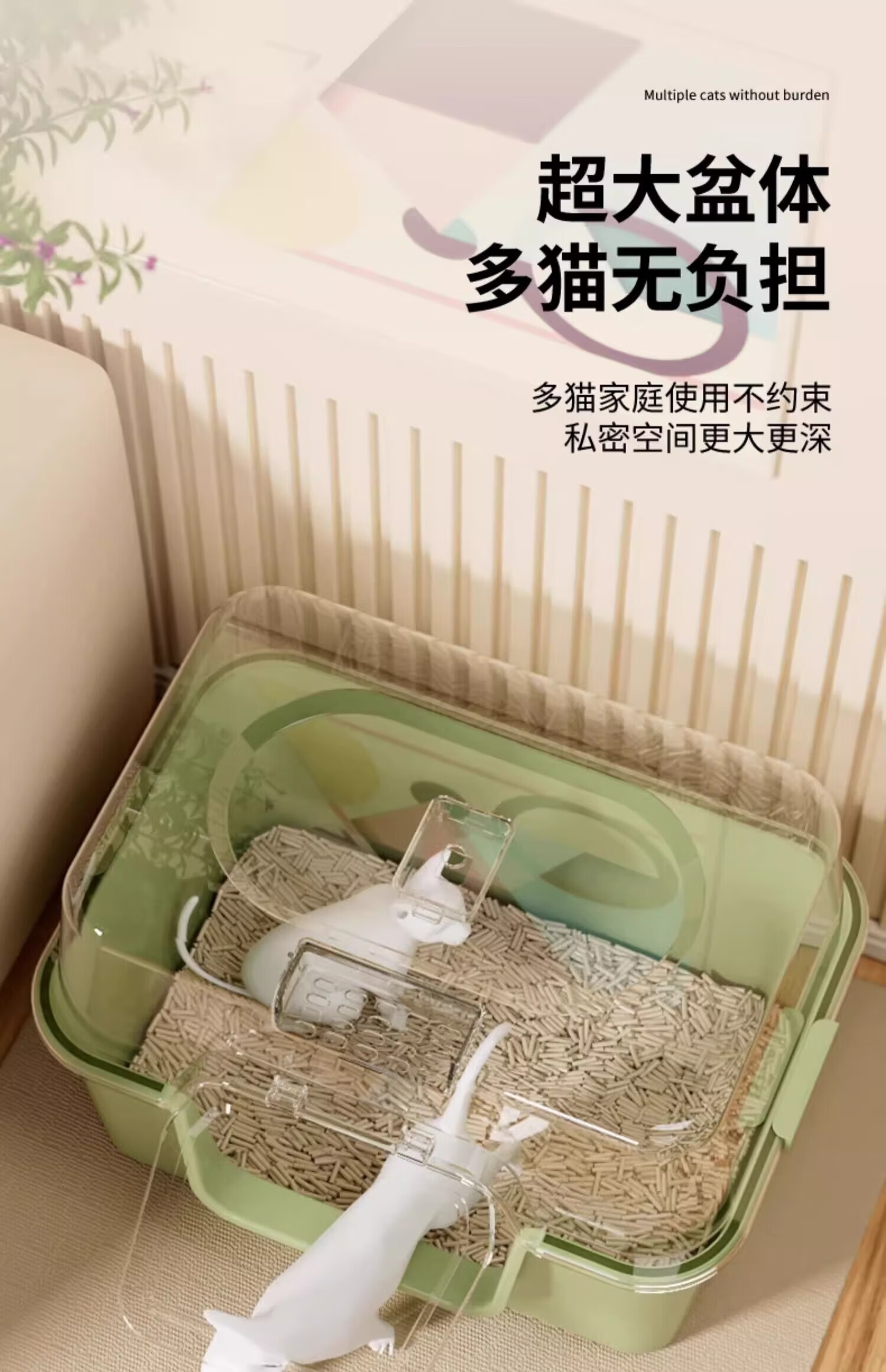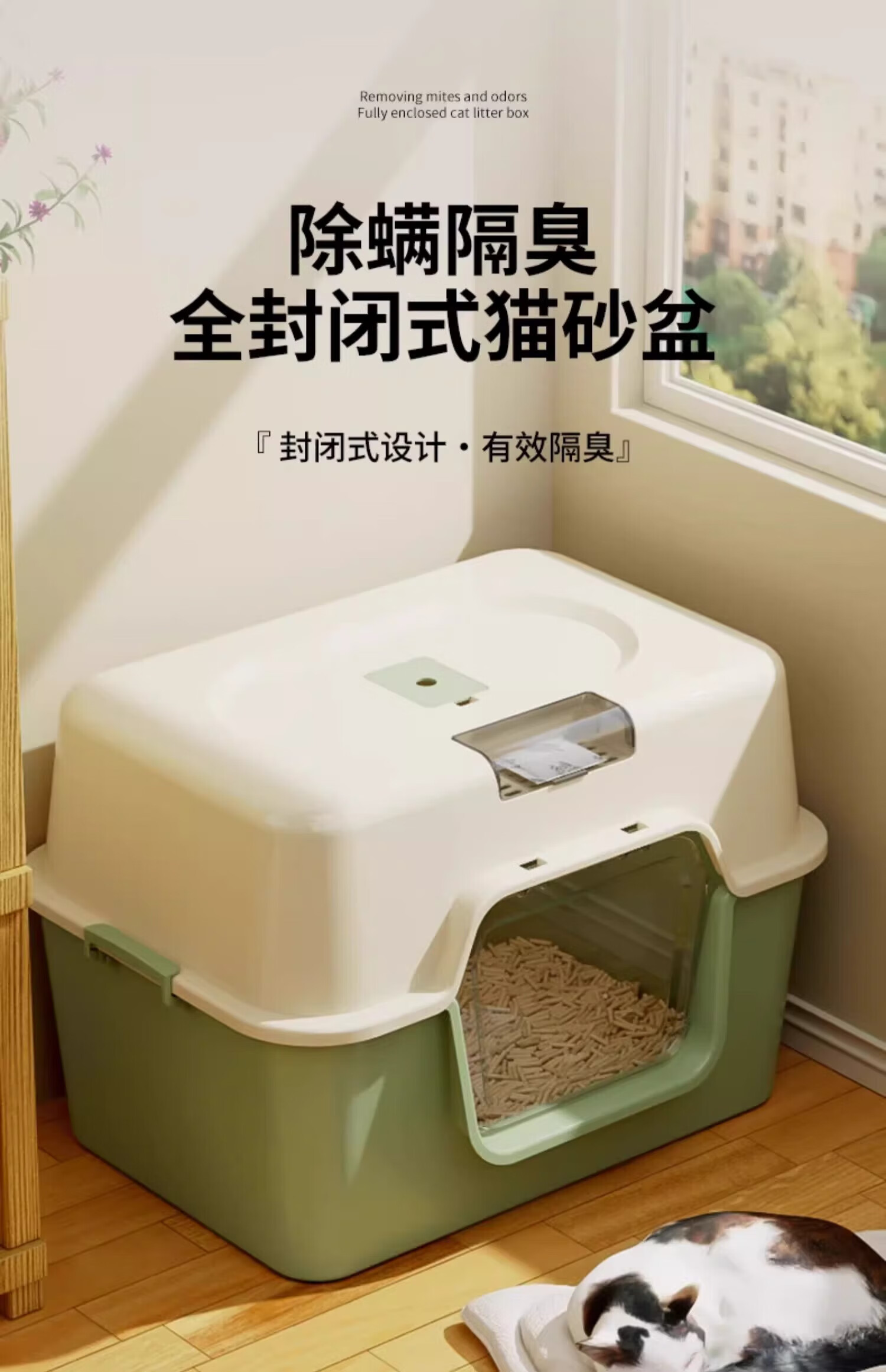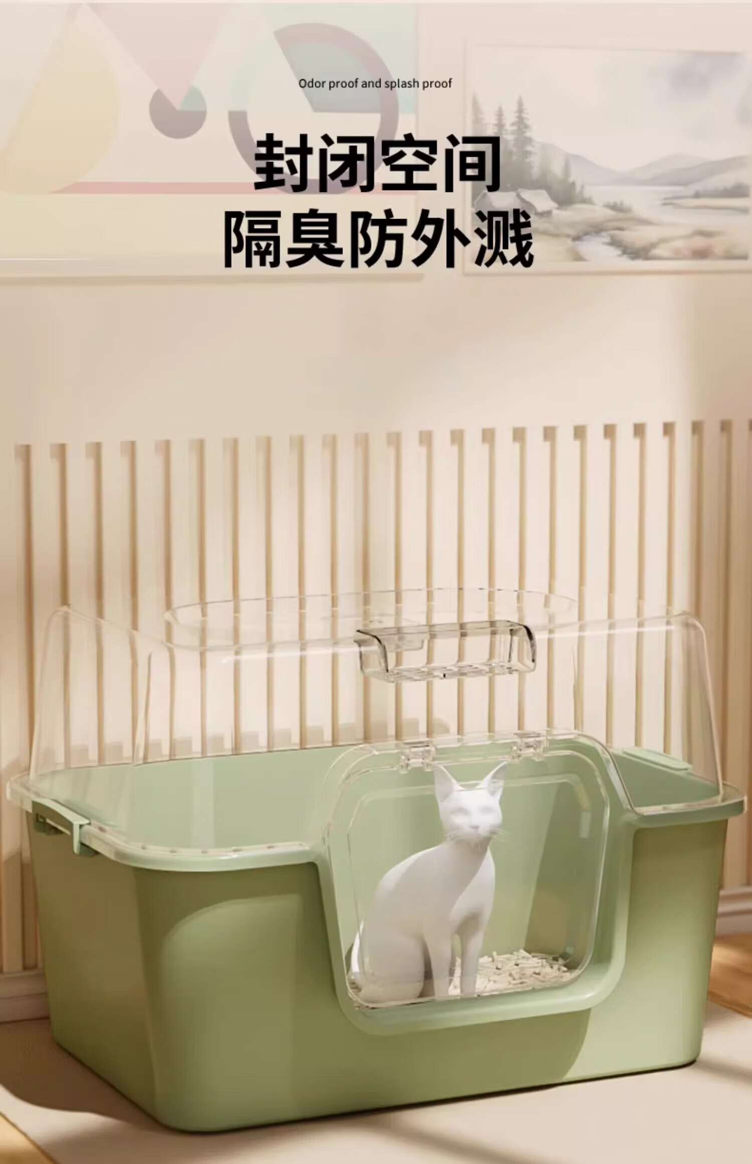 Meow Xianer cat litter box large fully enclosed cat toilet anti-splash cat litter box cat supplies mite removal fully enclosed cat litter box green + deodorizing bag
