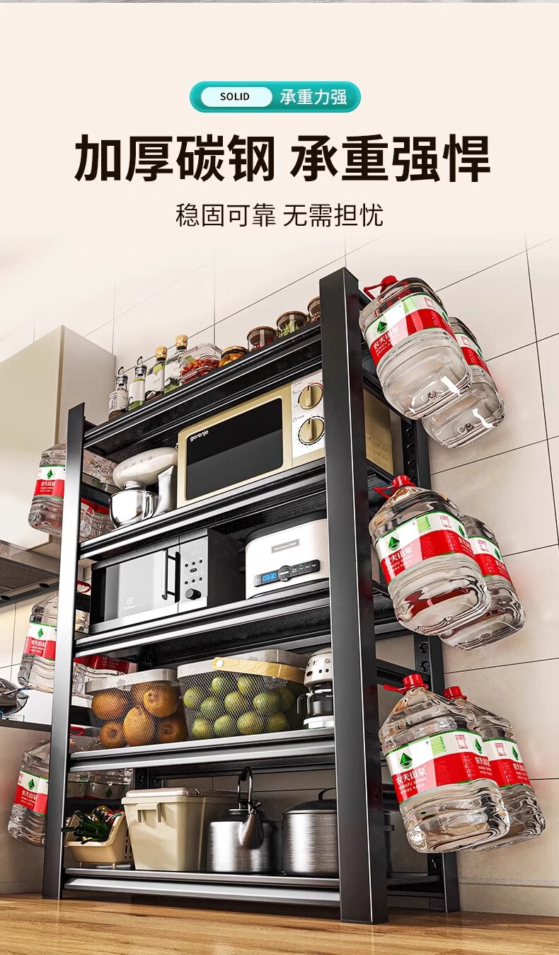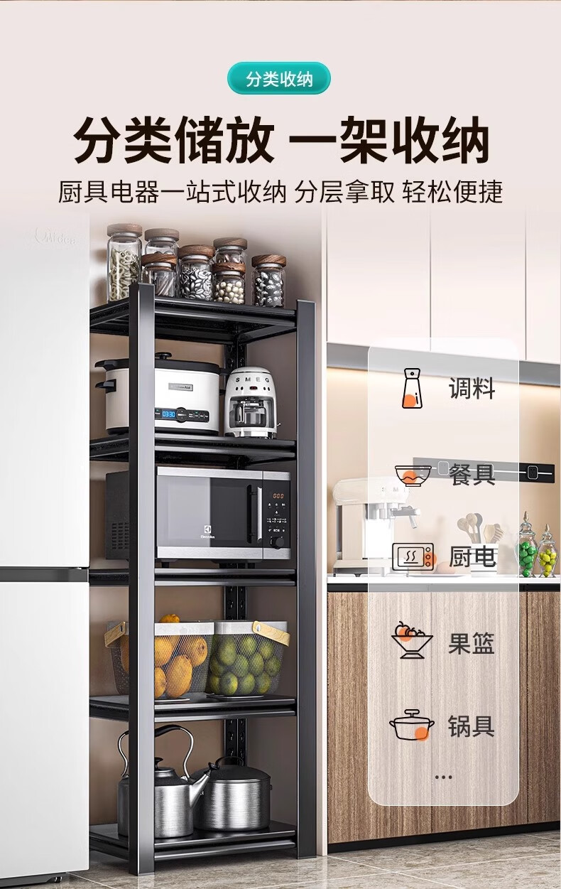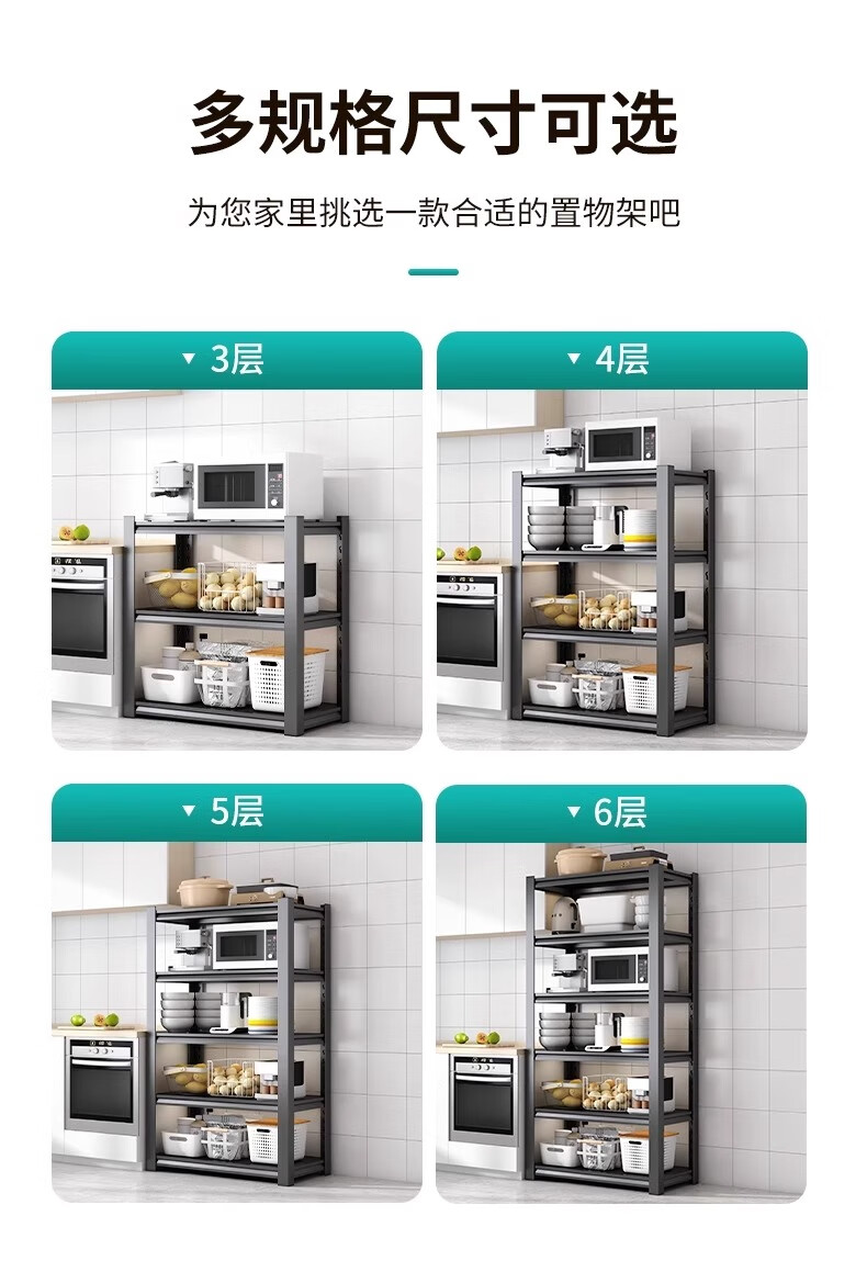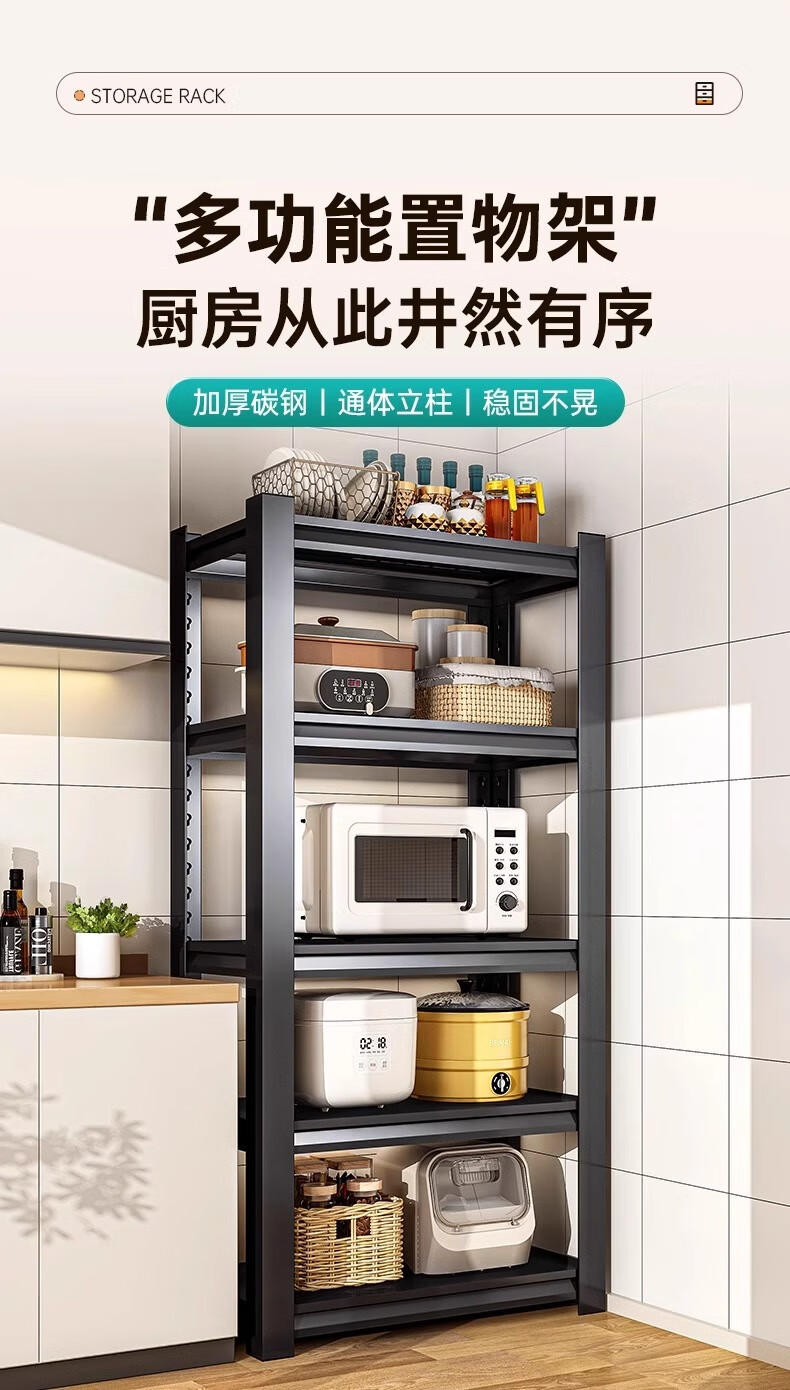 Jiangwei kitchen rack shelf floor-standing desktop bathroom multi-function microwave seasoning washing machine storage cabinet versatile matte black - three layers high 80cm long 40cm wide 30cm moisture-proof, rust-proof and easy to clean