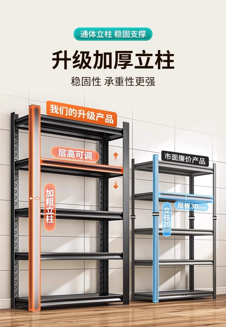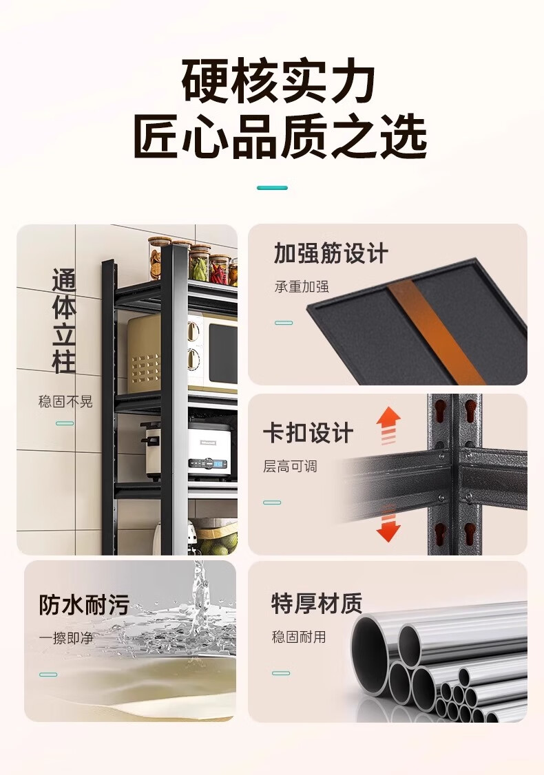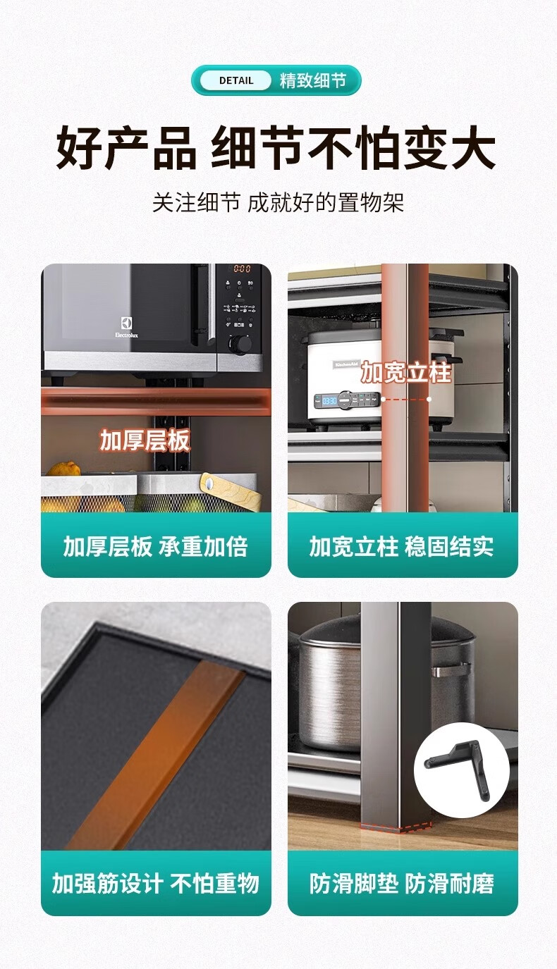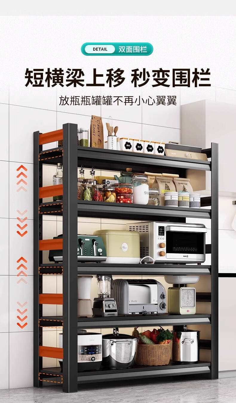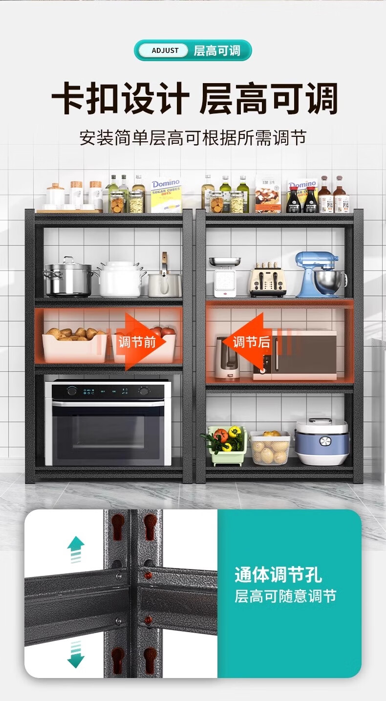 Jiangwei kitchen rack shelf floor-standing desktop bathroom multi-function microwave seasoning washing machine storage cabinet versatile matte black - three layers high 80cm long 40cm wide 30cm moisture-proof, rust-proof and easy to clean