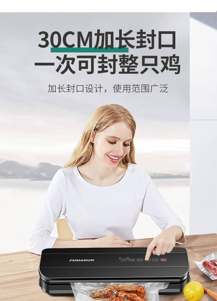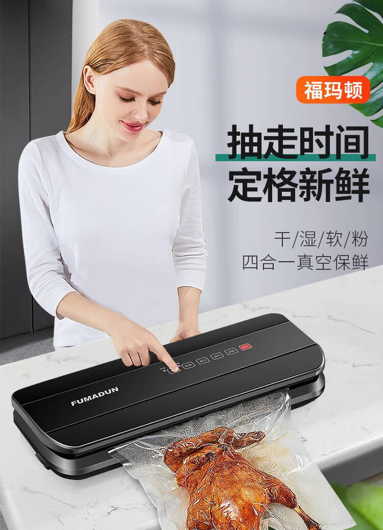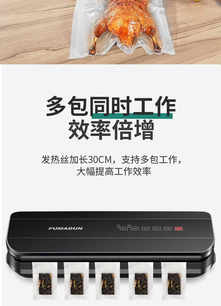 Ni Zhier Format vacuum sealing machine food preservation machine plastic bag small double pump vacuum machine packaging machine household and commercial upgraded double pump double motor (dry/wet/powder/soft) white