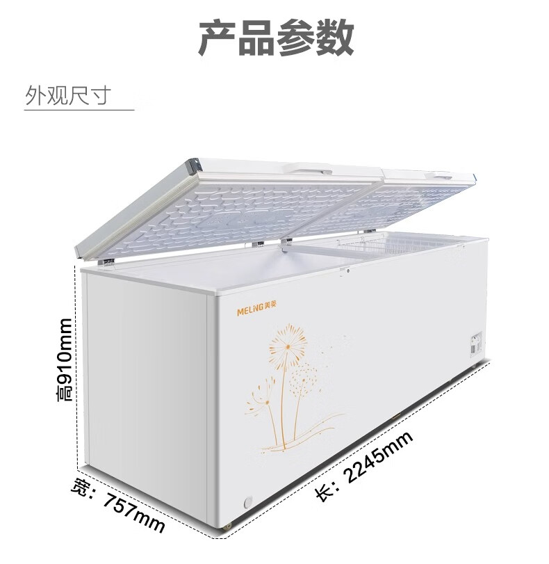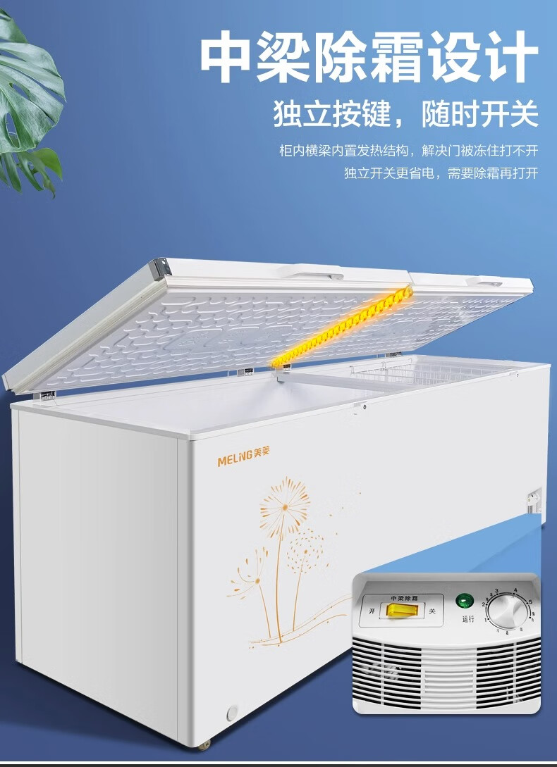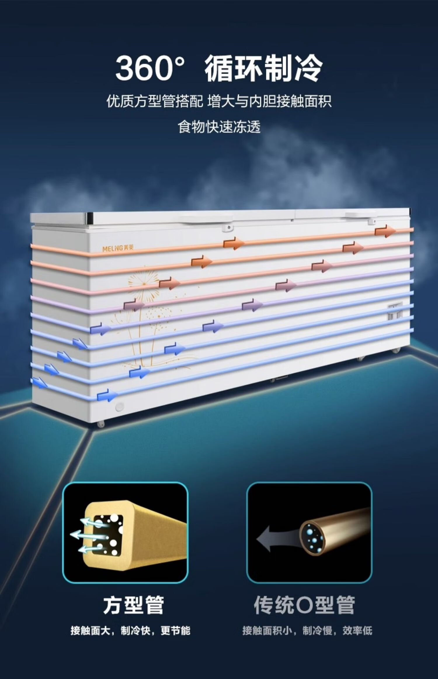 MeiLing first-class commercial large-capacity horizontal freezer refrigeration and freezing single temperature 2025 high-looking freezer shopping mall supermarket 418 liters -40 deep freezing quick freezing electronically controlled steel