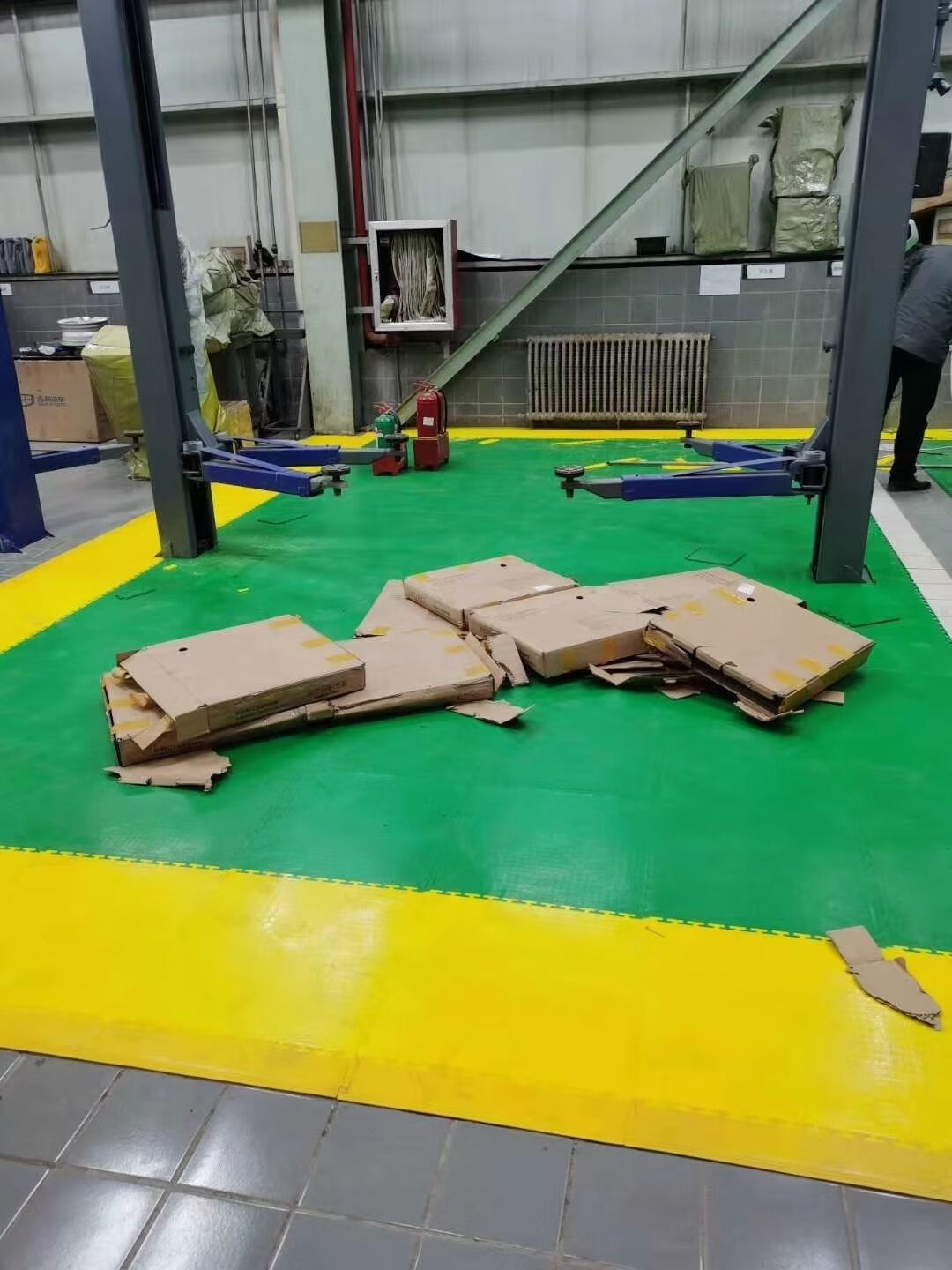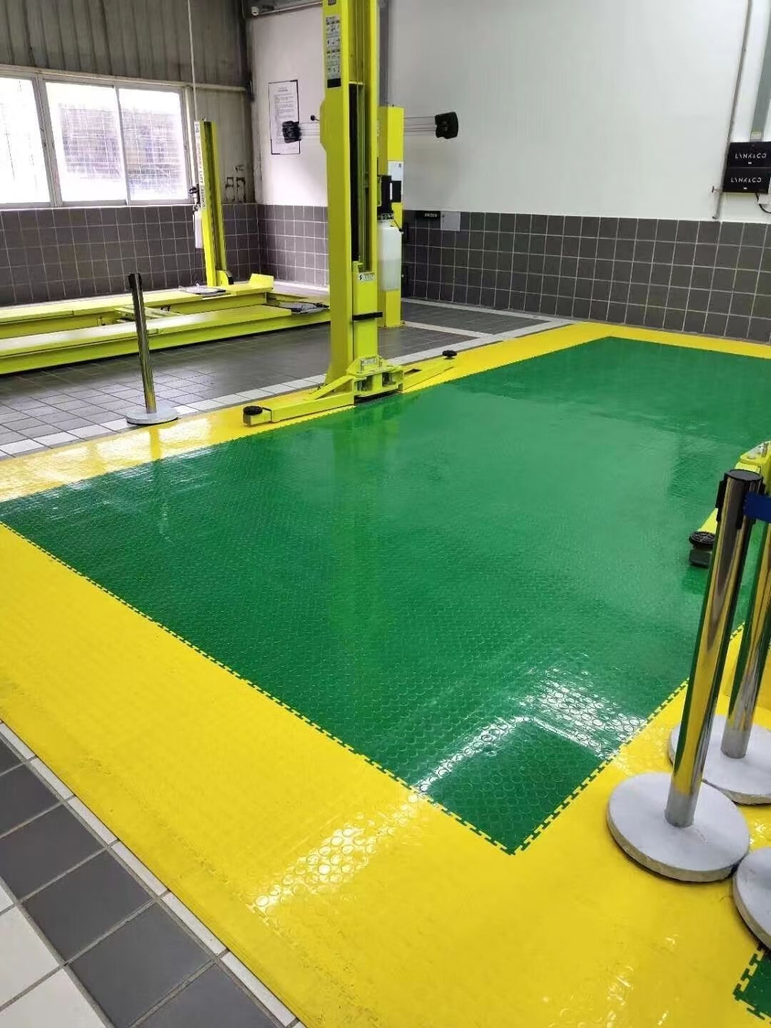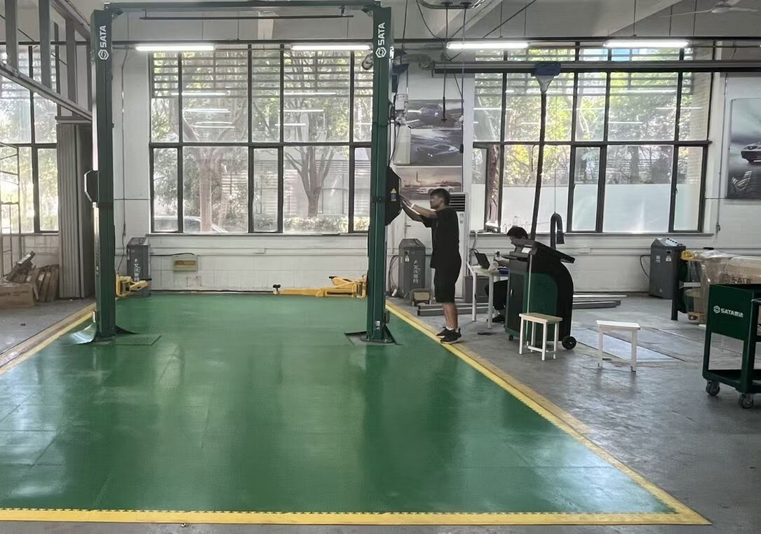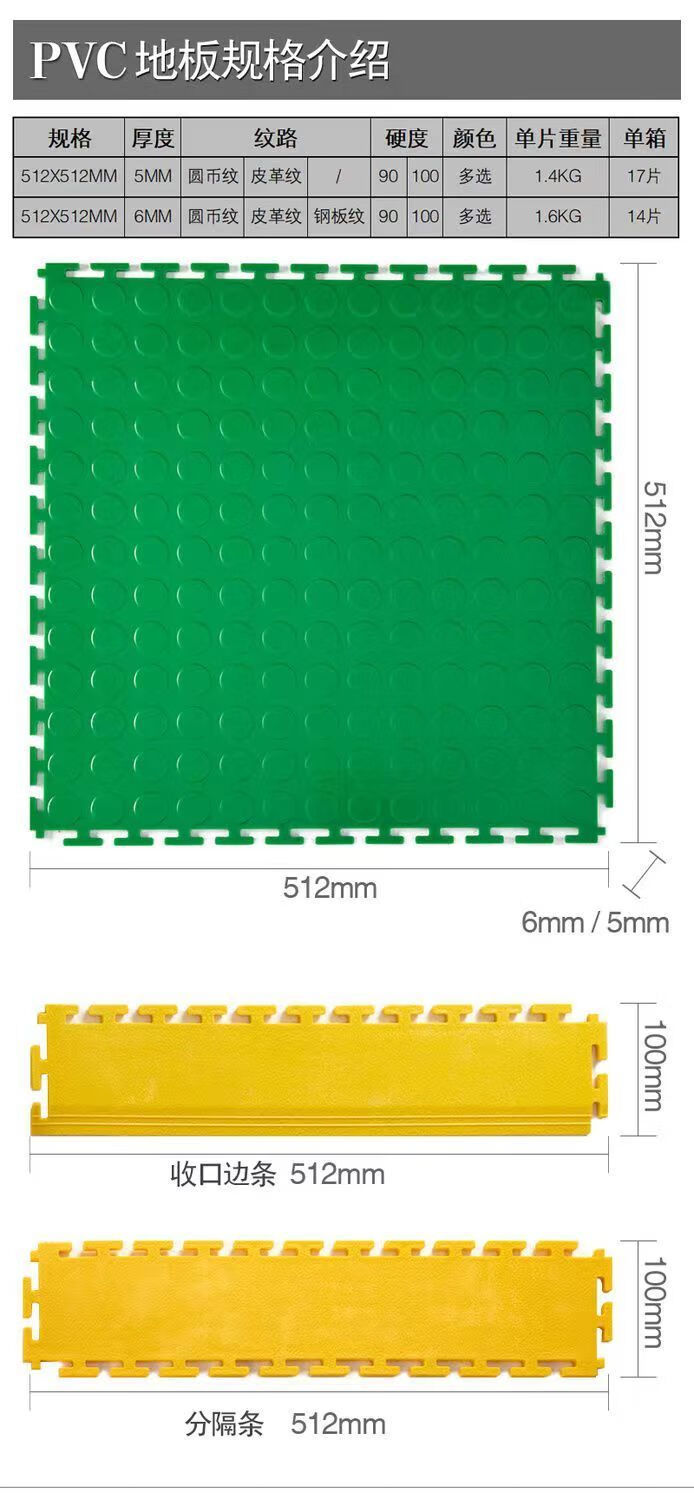 PVC industrial floor mats, automobile repair shop plastic splicing cover thickening, repair shop floor mats, new energy insulation workshop, 450*450*5.0mm thick round coin pattern