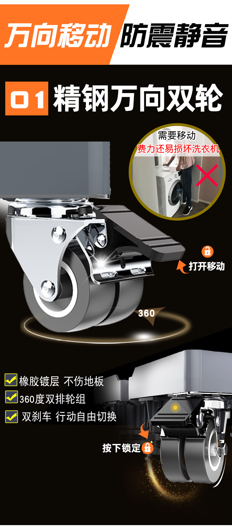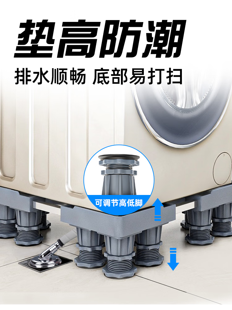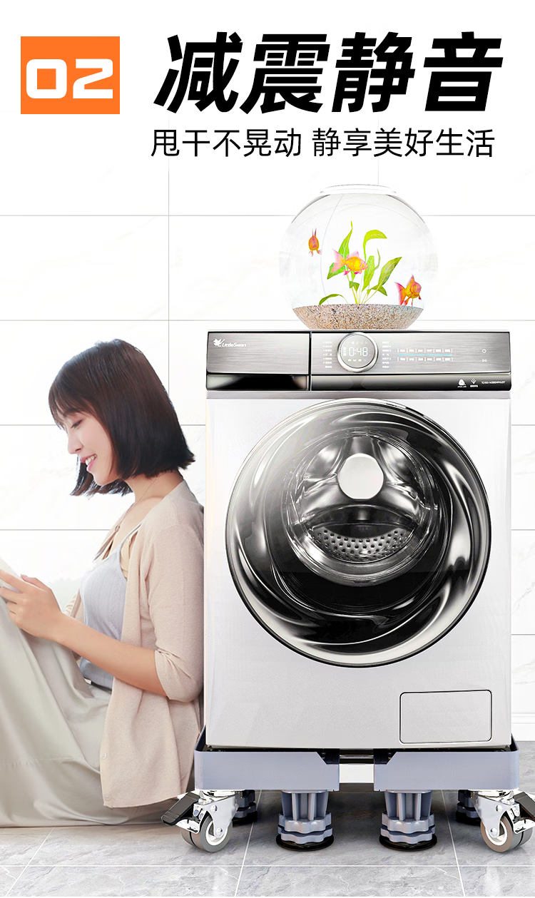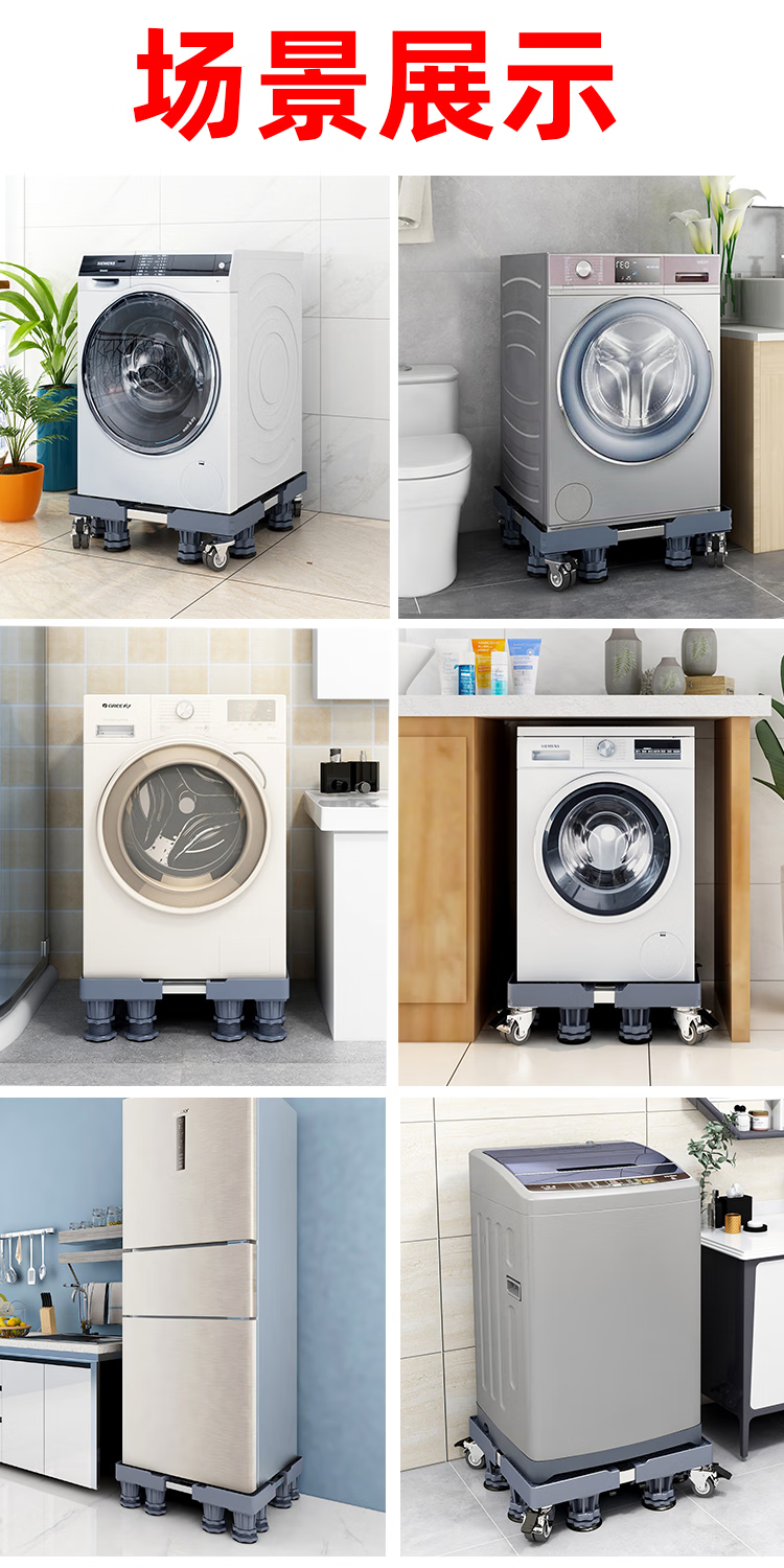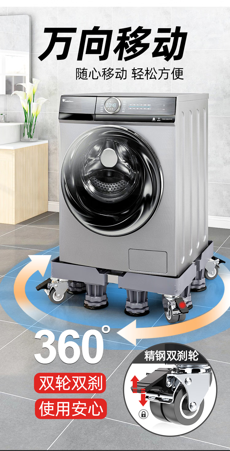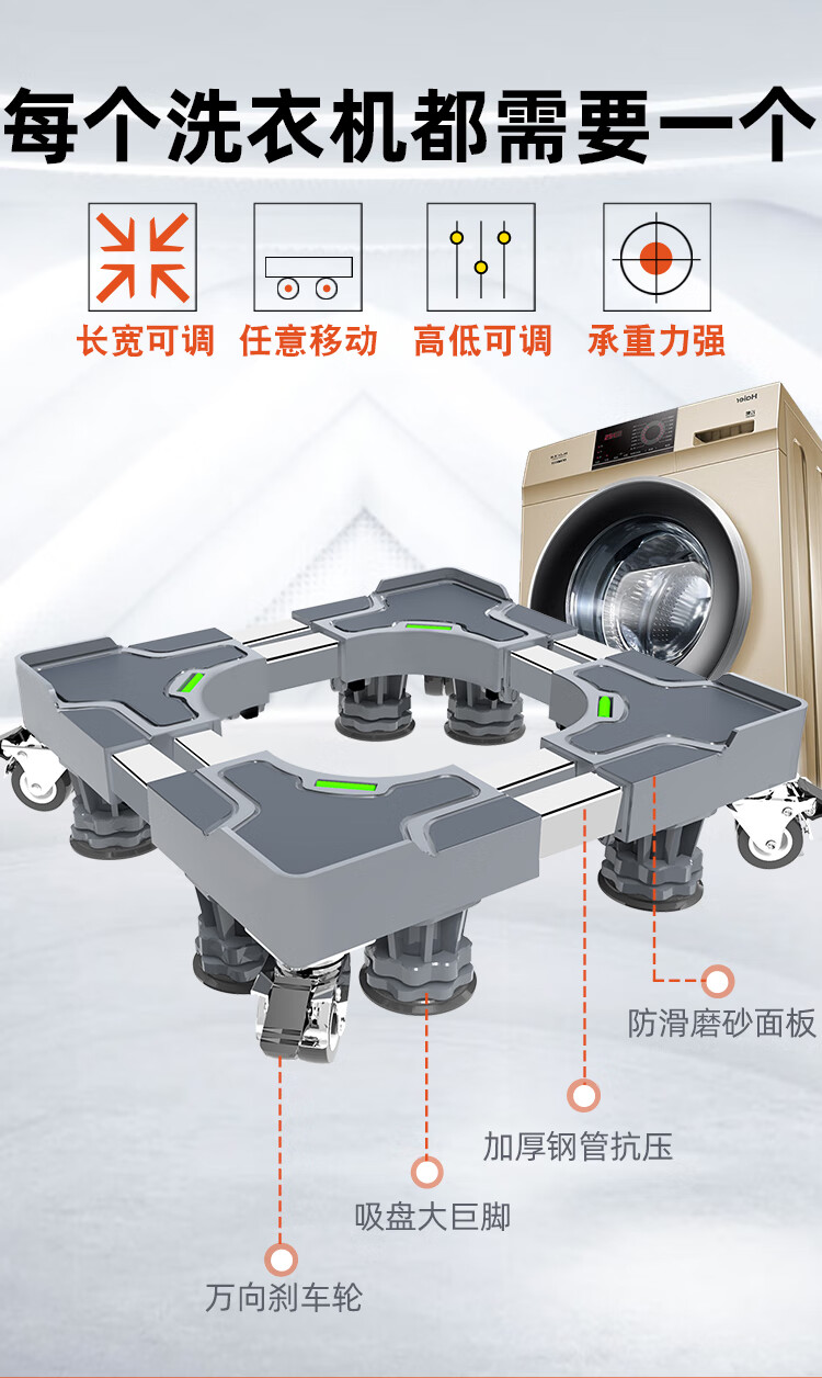 Little Swan Washing Machine Base Special Fully Automatic Mobile Universal Wheel Universal Raised Drum Foot Pad Storage Bracket Luxurious Double Tube Mobile Gray 8-Pillar 4-Wheel + Double Anti-shock Lock + Level