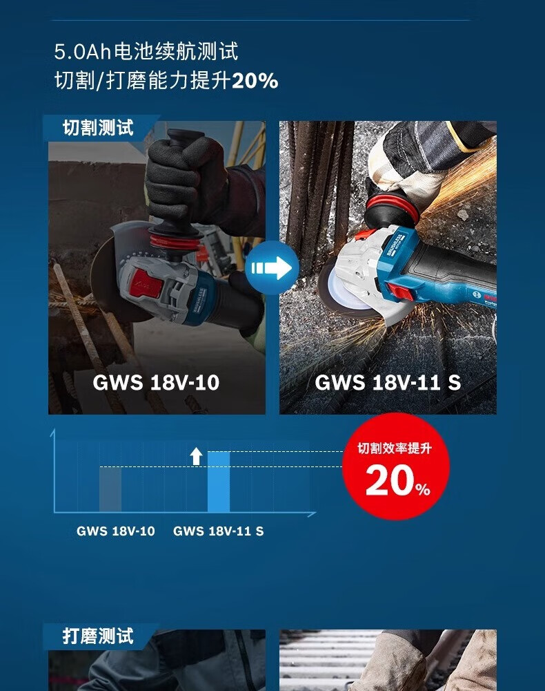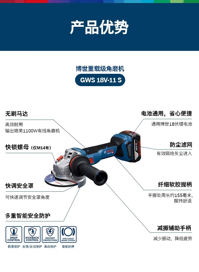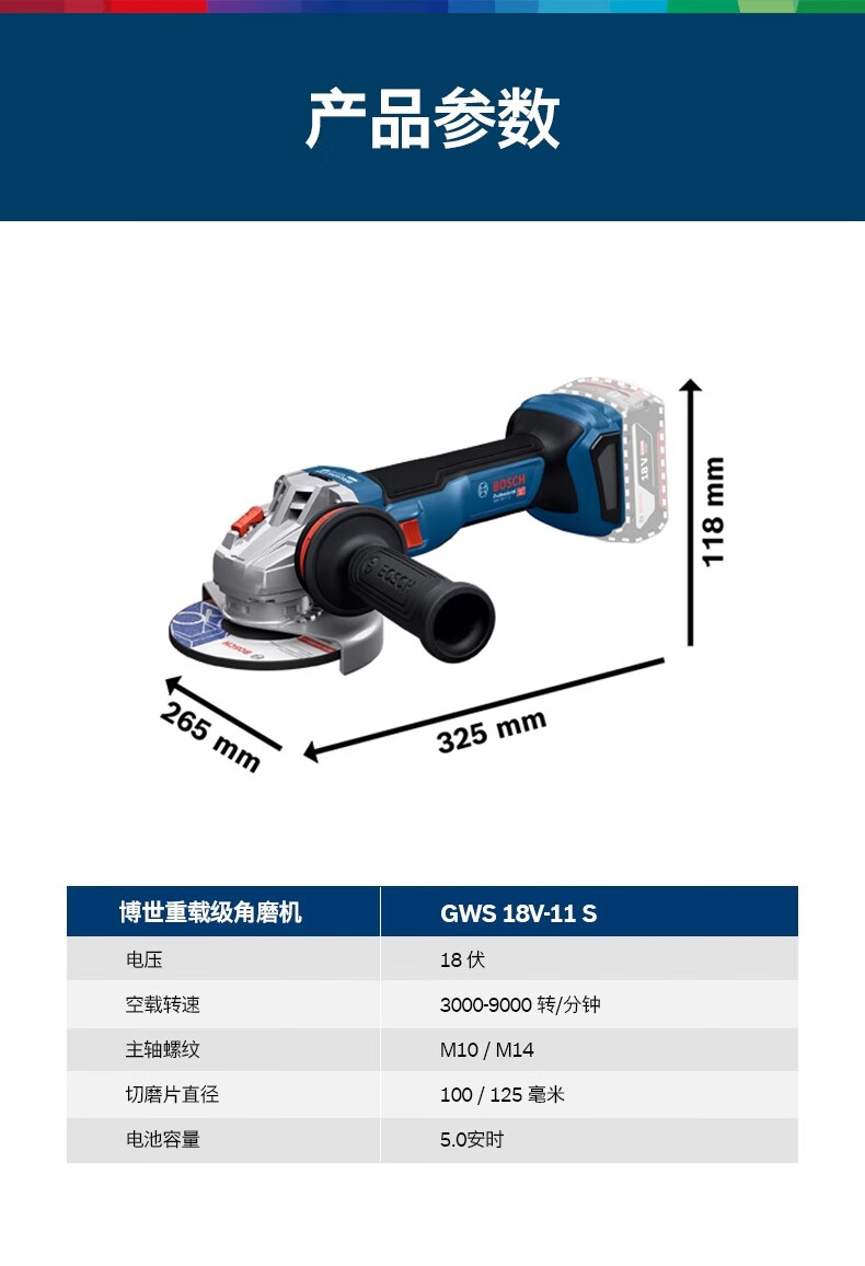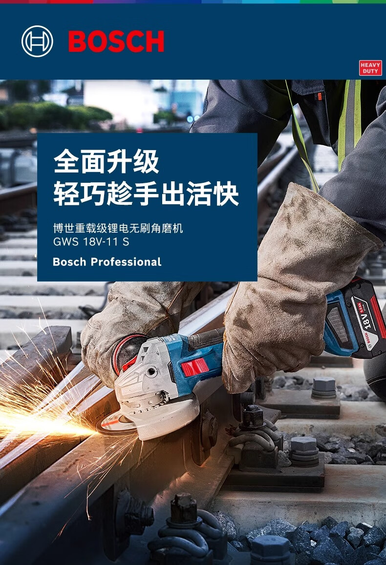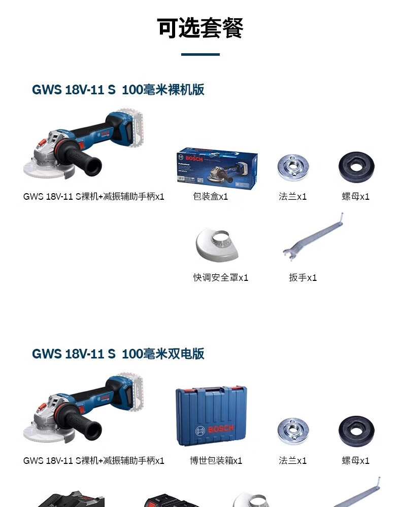 Bosch (BOSCH) 18V lithium battery brushless GWS18V-11S rechargeable multi-function speed-adjustable angle grinder 100MM grinding and polishing machine GWS18V-11S single head 100mm