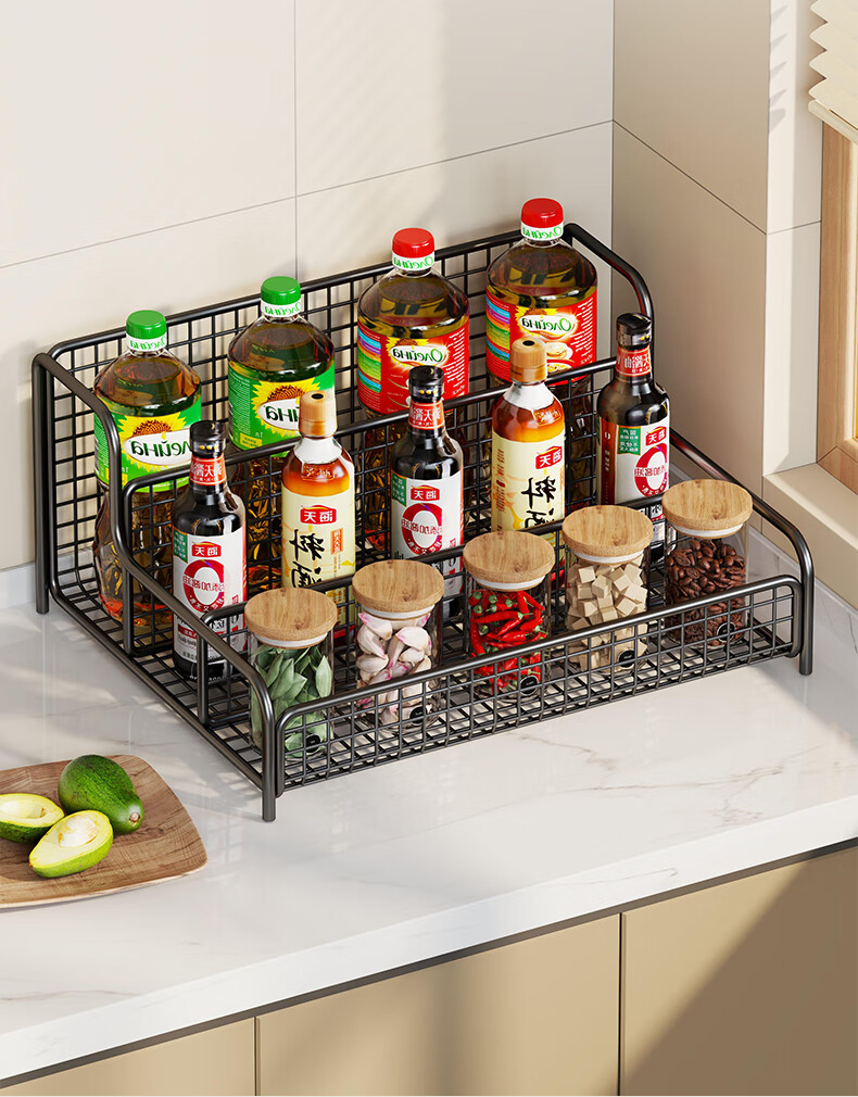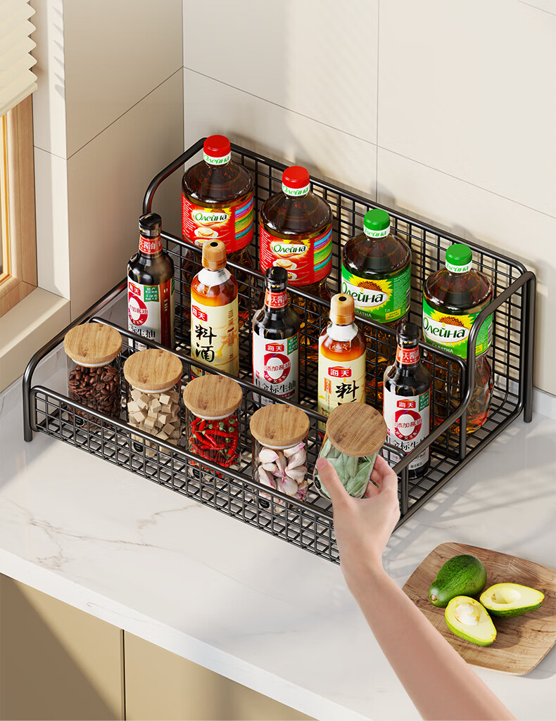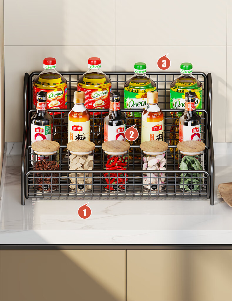 All for the kitchen spice rack countertop multifunctional household spice rack salt seasoning box jar multi-layer storage shelf elegant black two-layer large size shipped in one
