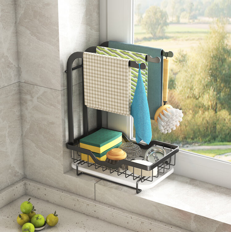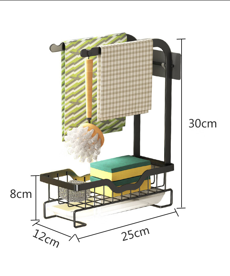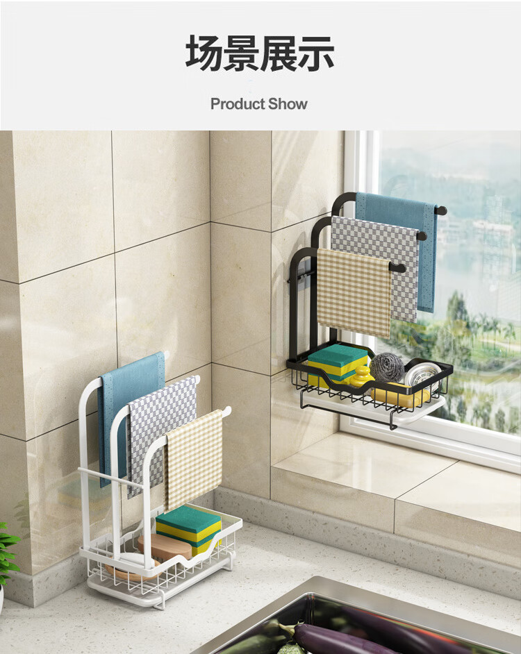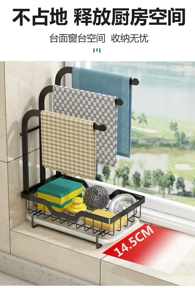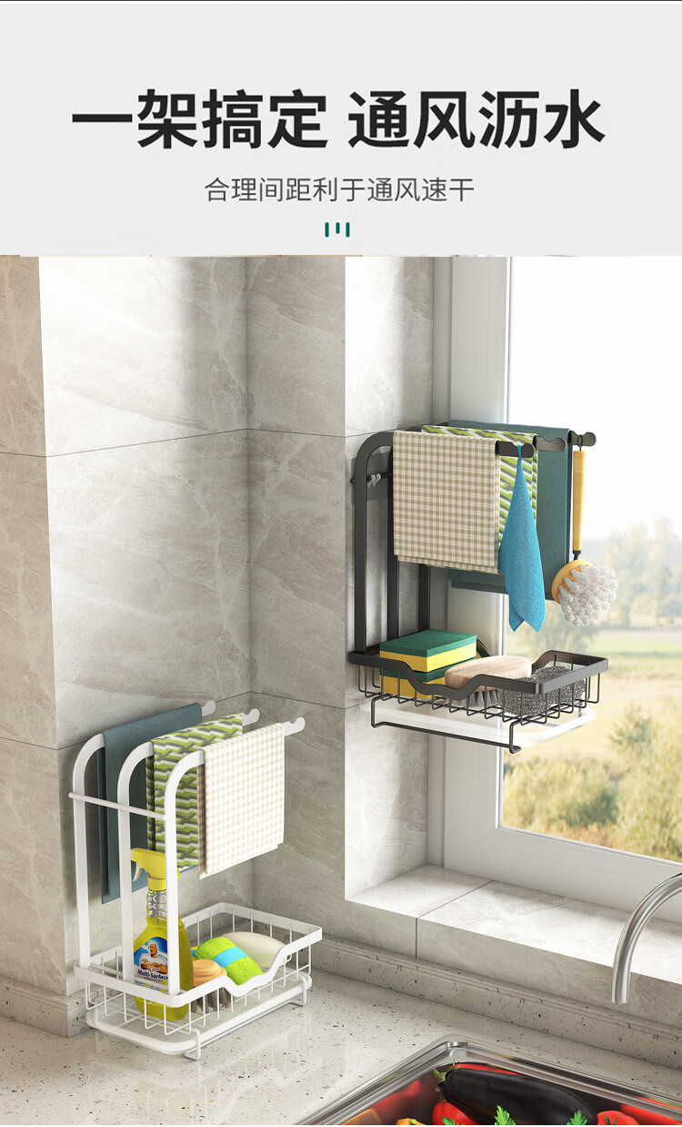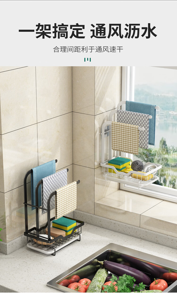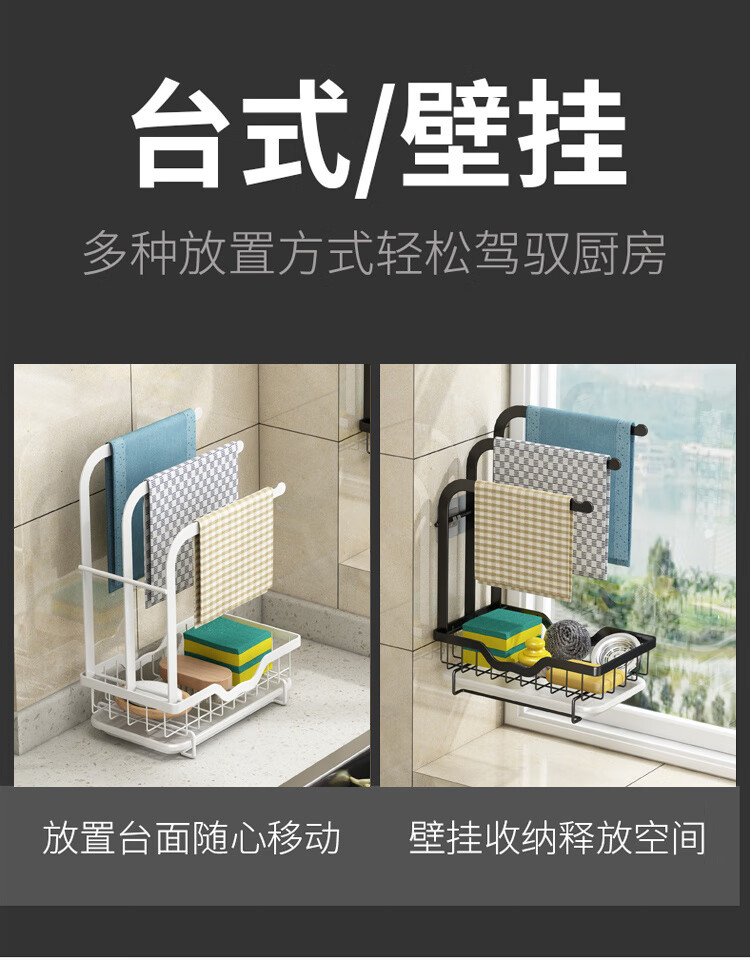 FANCYCHIC new high and low pole rag rack kitchen storage rack no punching table wall hanging sponge three pole white countertop model width 15