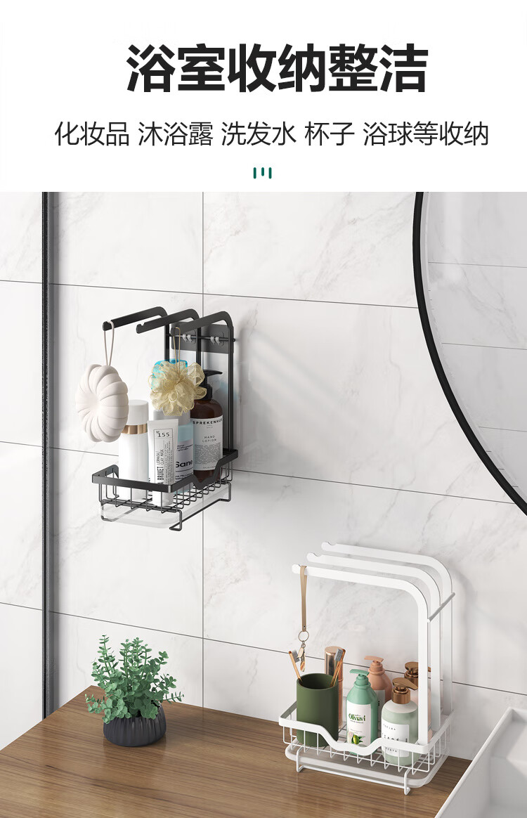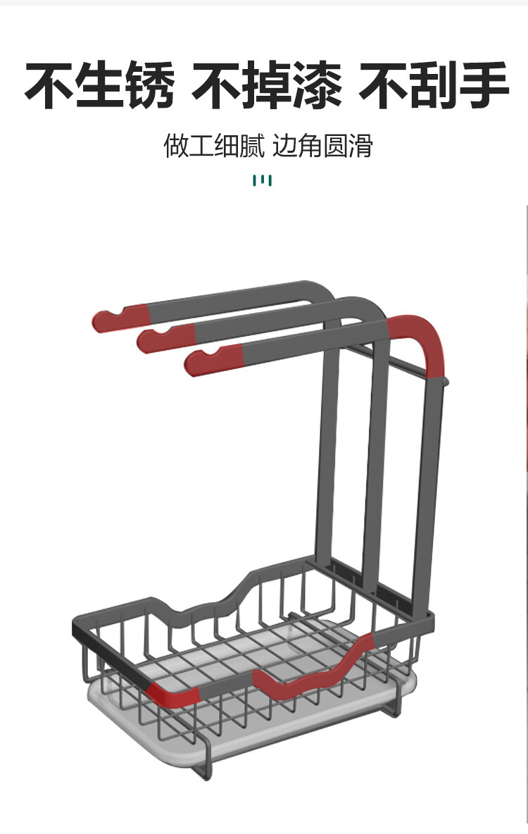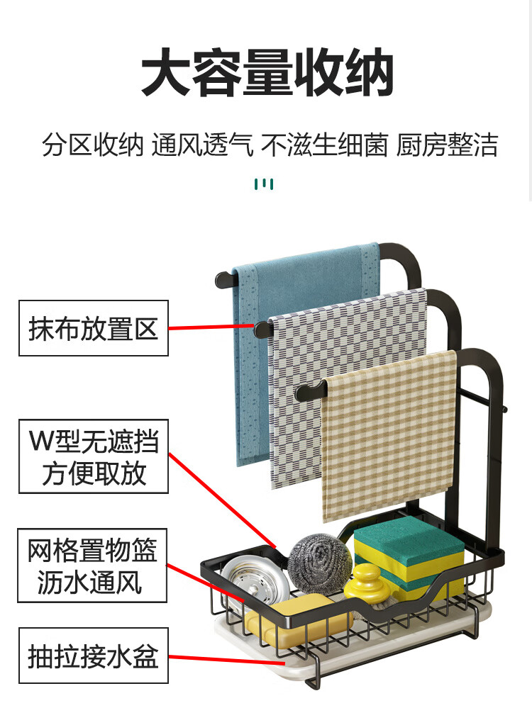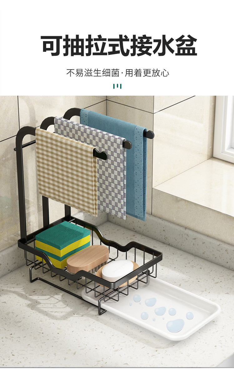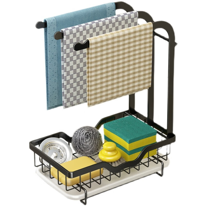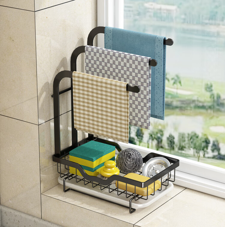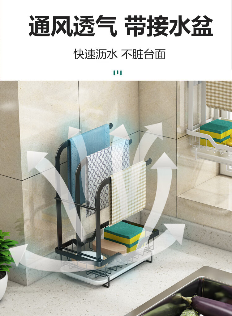 FANCYCHIC new high and low pole rag rack kitchen storage rack no punching table wall hanging sponge three pole white countertop model width 15