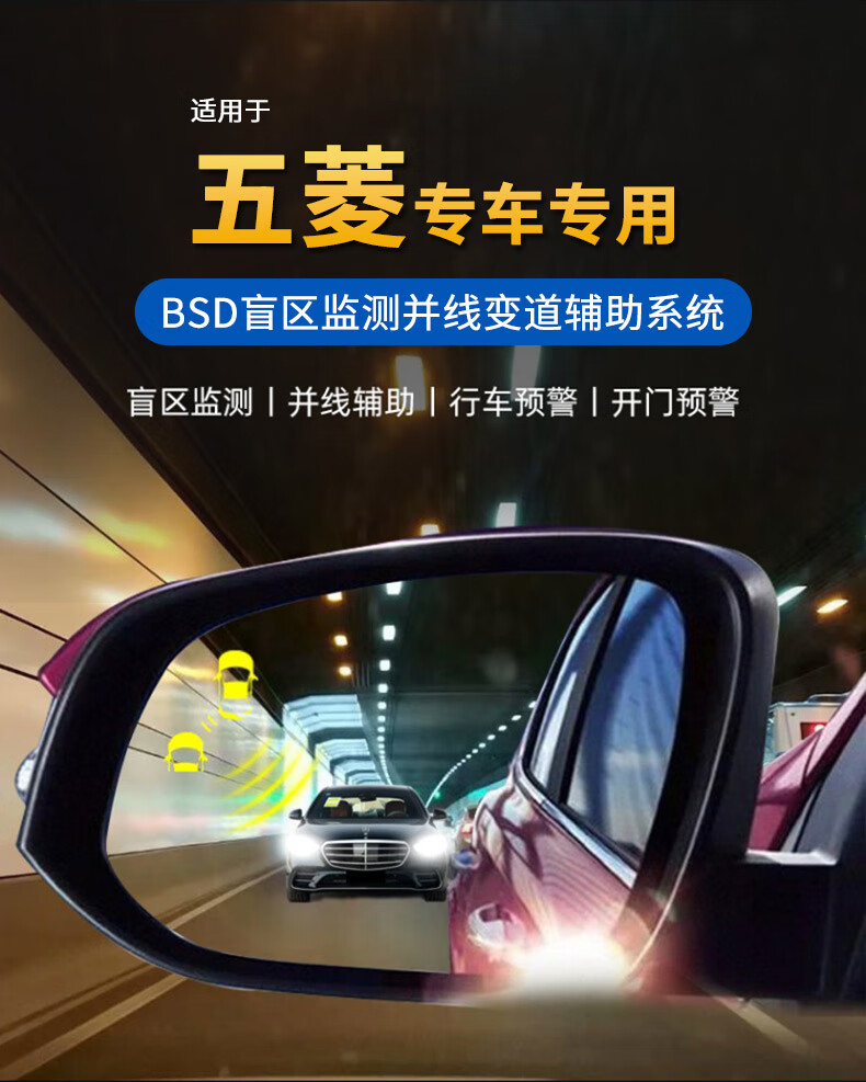 Wuling Xingguang Binguo PLUS Xingchenxingyuan BSD blind spot monitoring and lane change assist system is suitable for special vehicles. Installation included. 77G dual radar. White mirror + door opening warning.