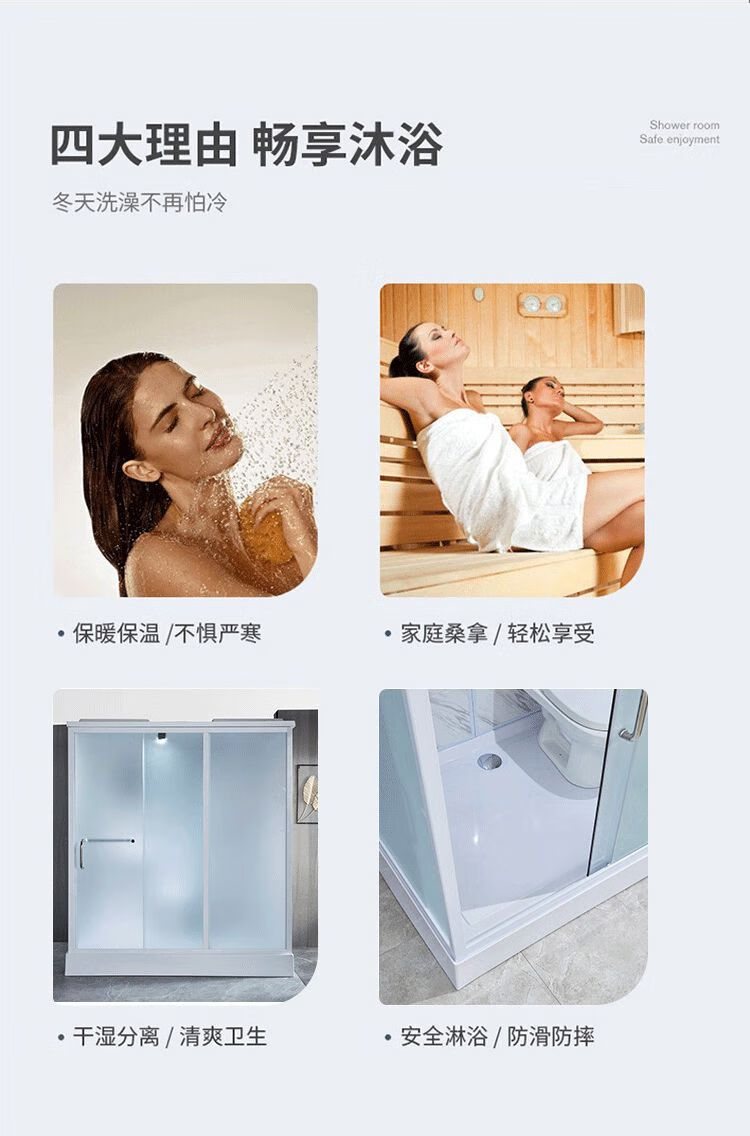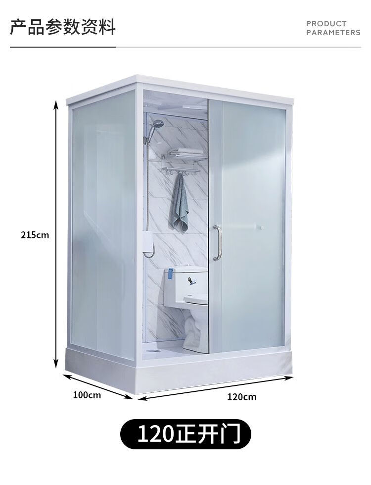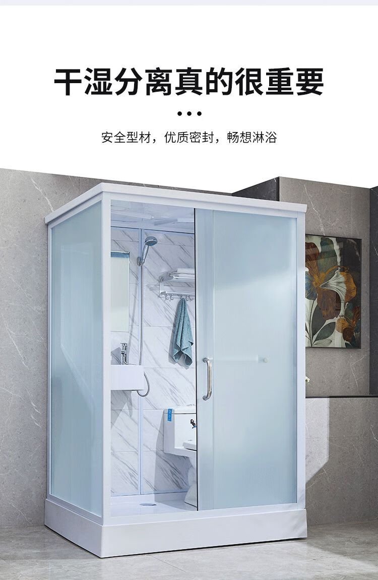 Integrated bathroom shower room with base assembled one-piece finished mobile door bathroom shower room rural area 1.7*1.2 meters including toilet (SMC bottom) without steam