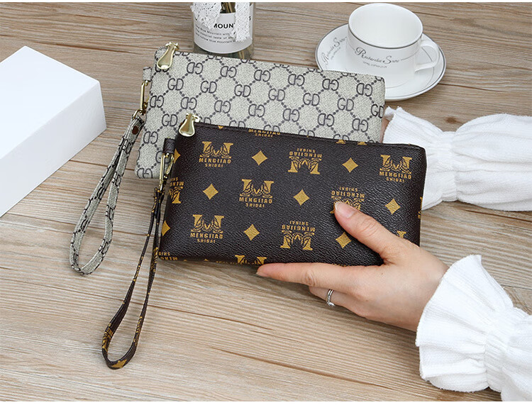 Yunluo Qixi Fashion Clutch Women's Wallet Long Coin Purse Multifunctional Mobile Phone Bag Large Capacity Clutch Bag DD Khaki
