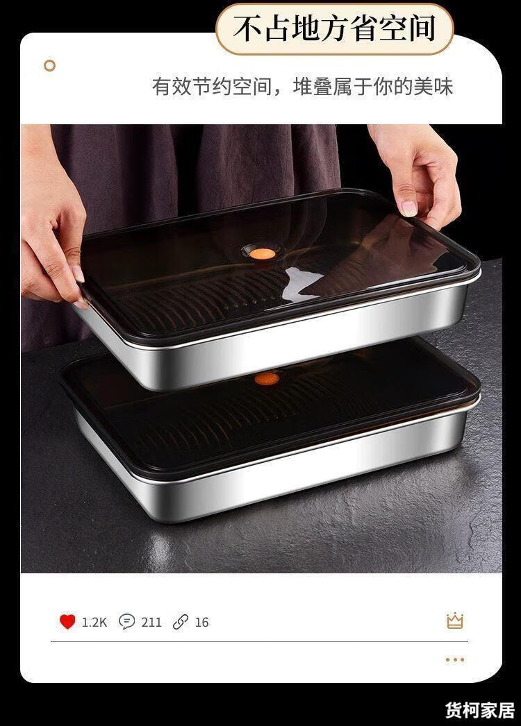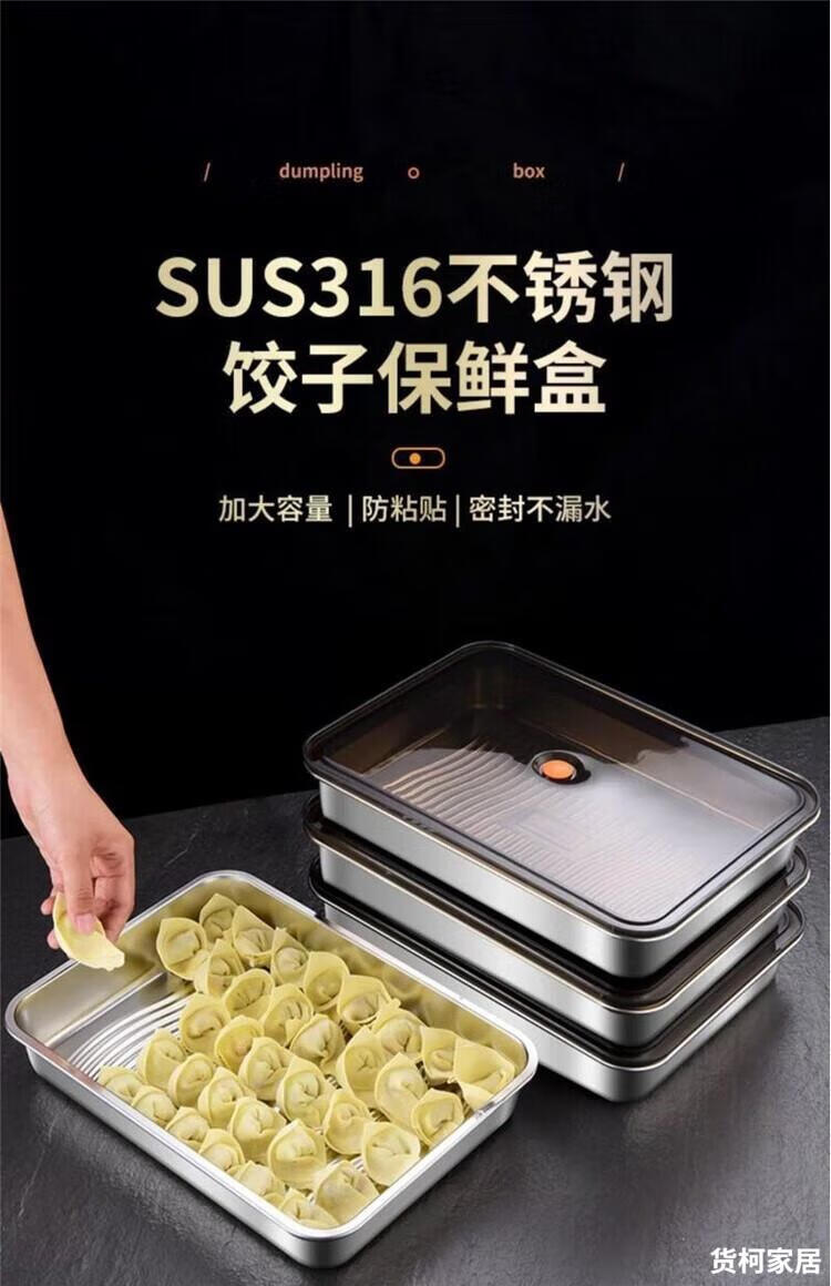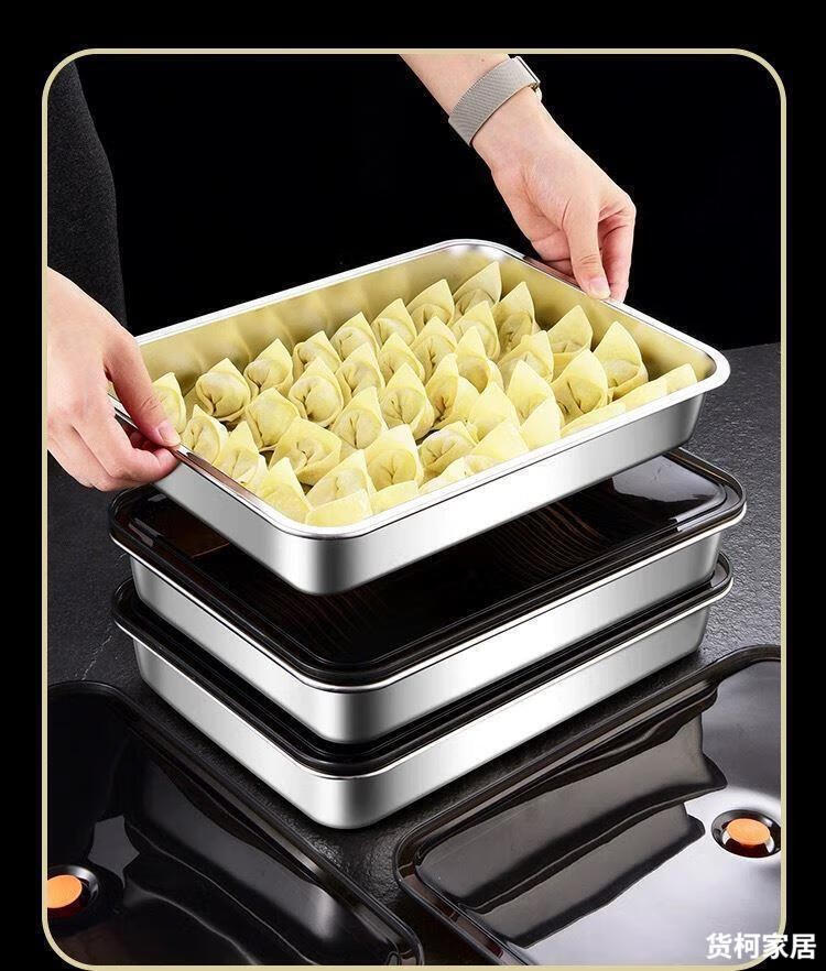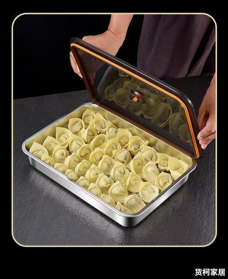 Raft core dumpling box freezing box dumpling storage box refrigerator special stainless steel dumpling plate wonton quick freezing box 316L antibacterial steel dumpling storage box default large capacity 33cm*23cm*5.5 with ventilation holes