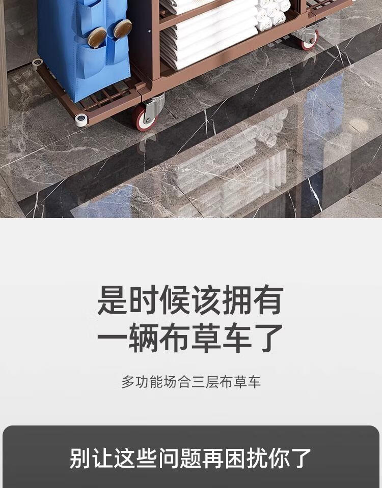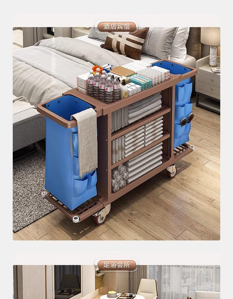 Wen Yijia guest room linen cart cleaning trolley multi-functional three-layer mobile wheeled hotel cleaning trolley single-sided trolley-brown (thickened PP material)