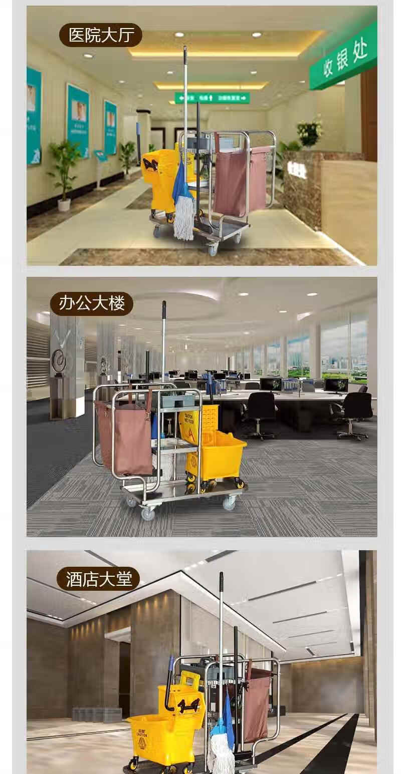 Wen Yijia stainless steel cleaning truck hotel room trolley linen cart property cleaning cleaning vehicle tool cart gray wheel brake wheel cleaning vehicle (with hook)