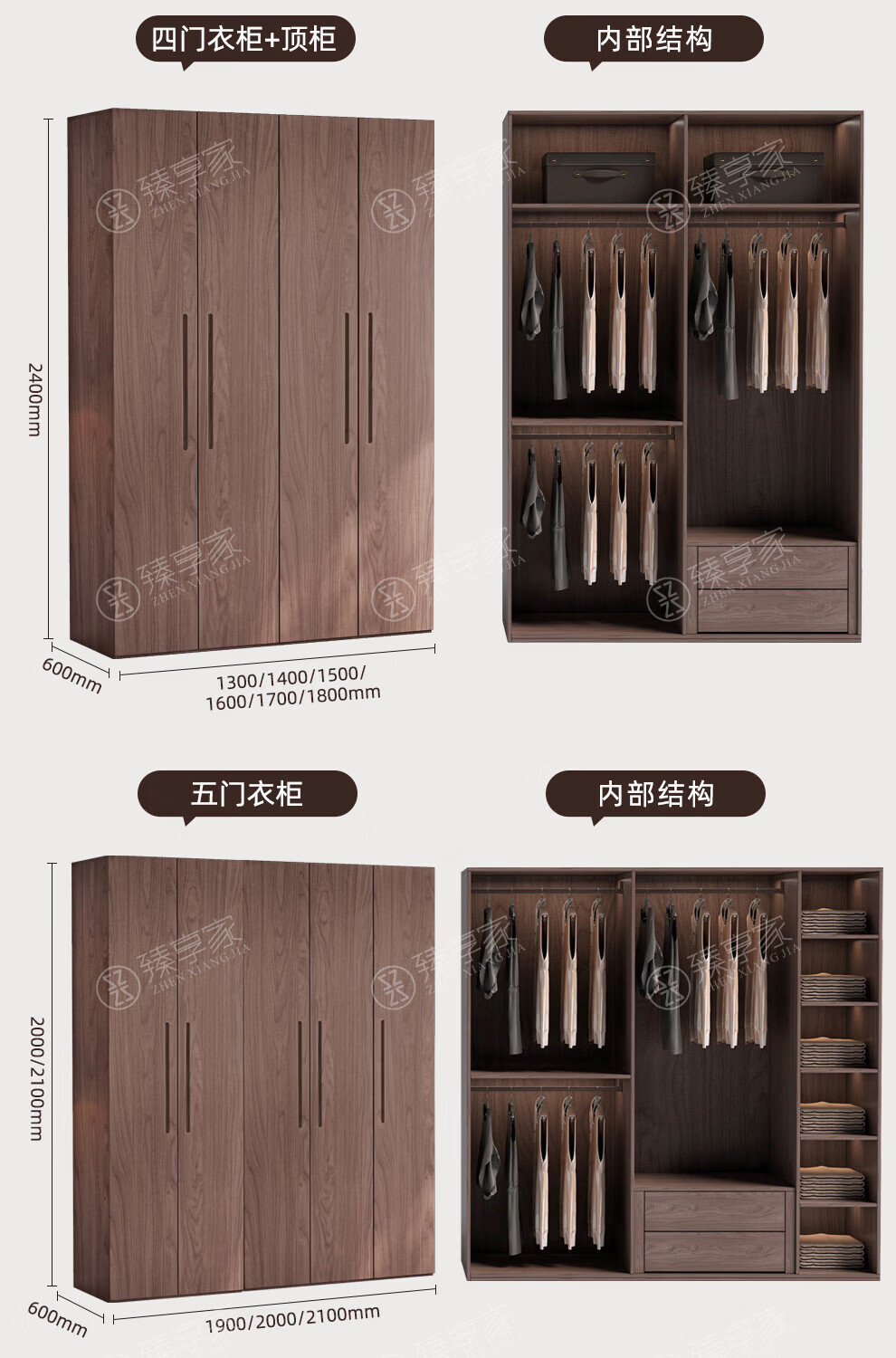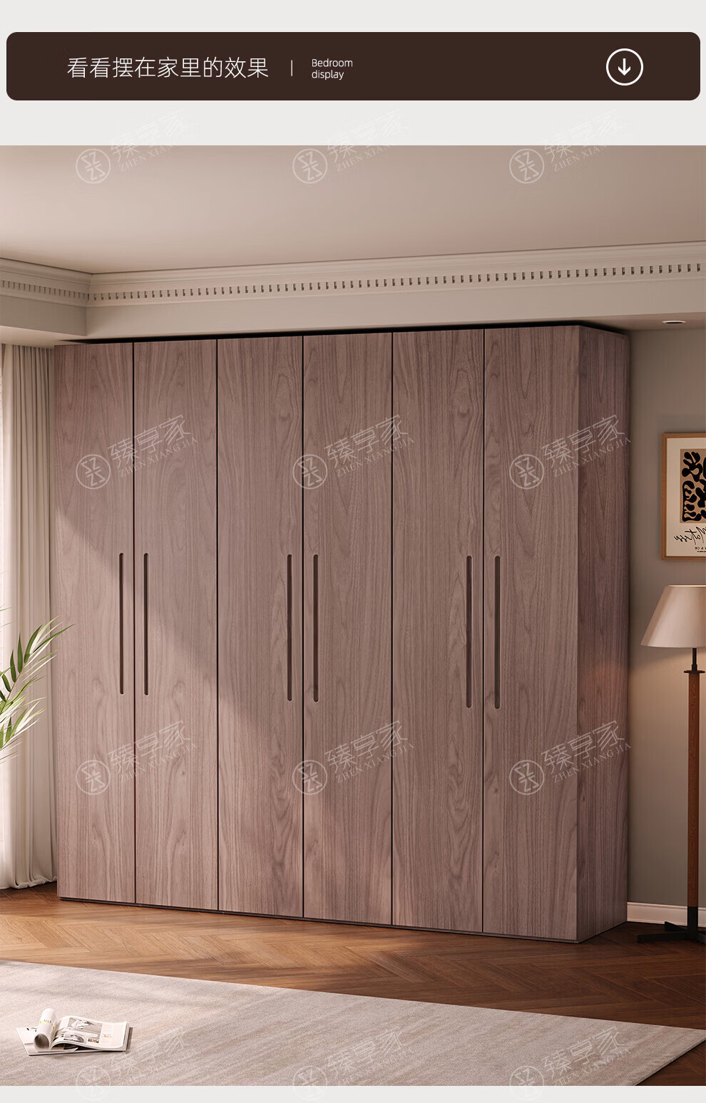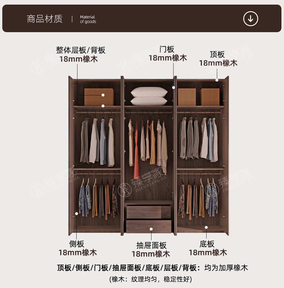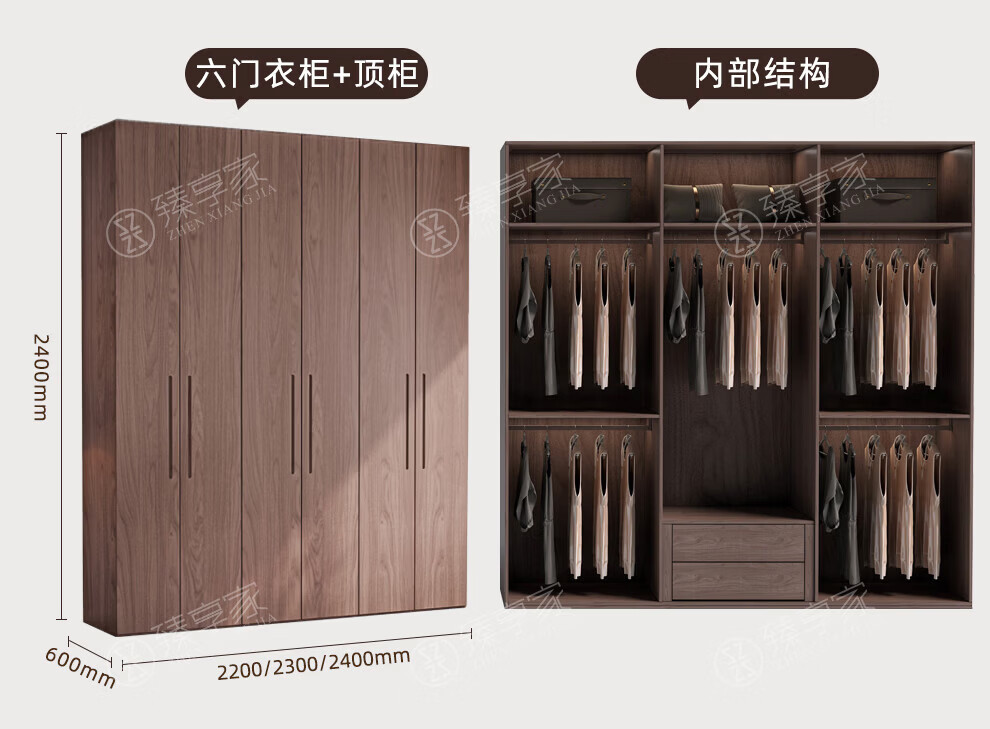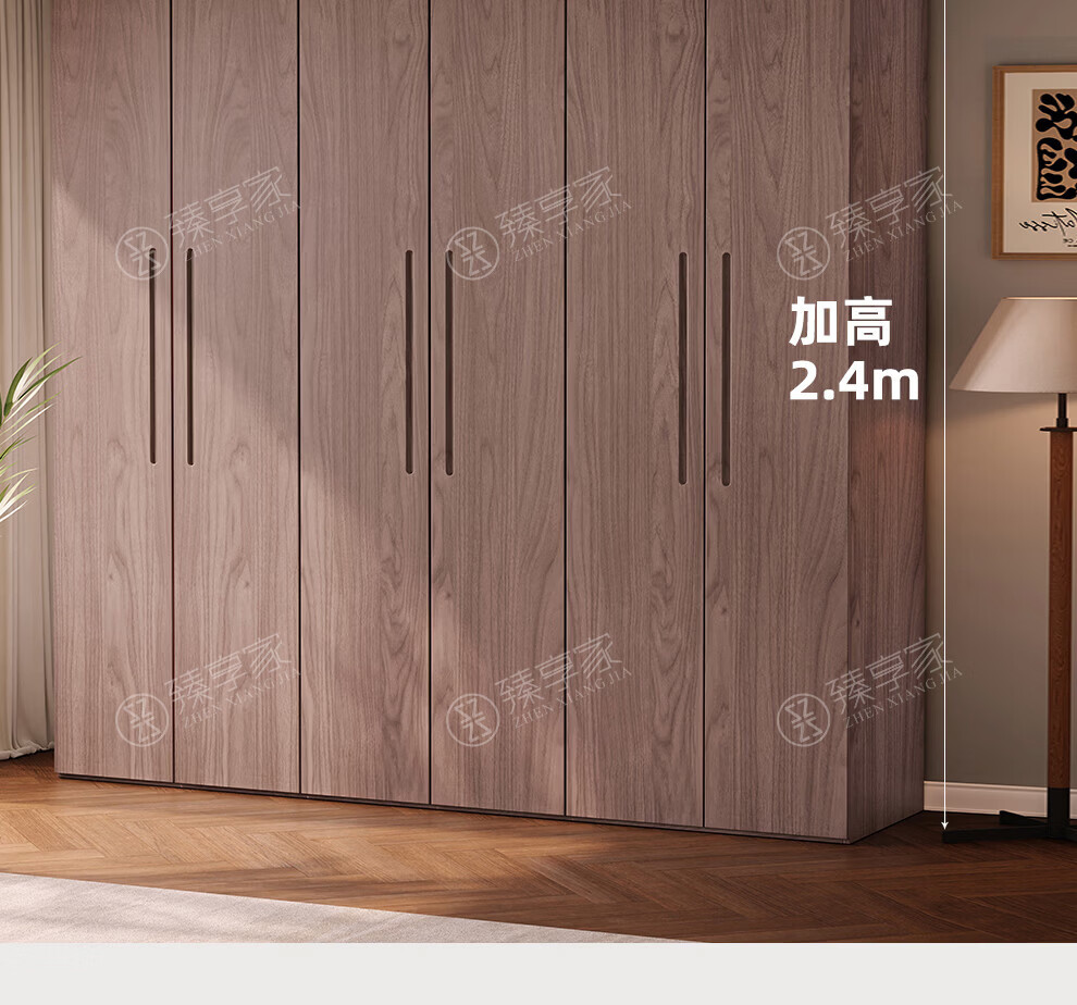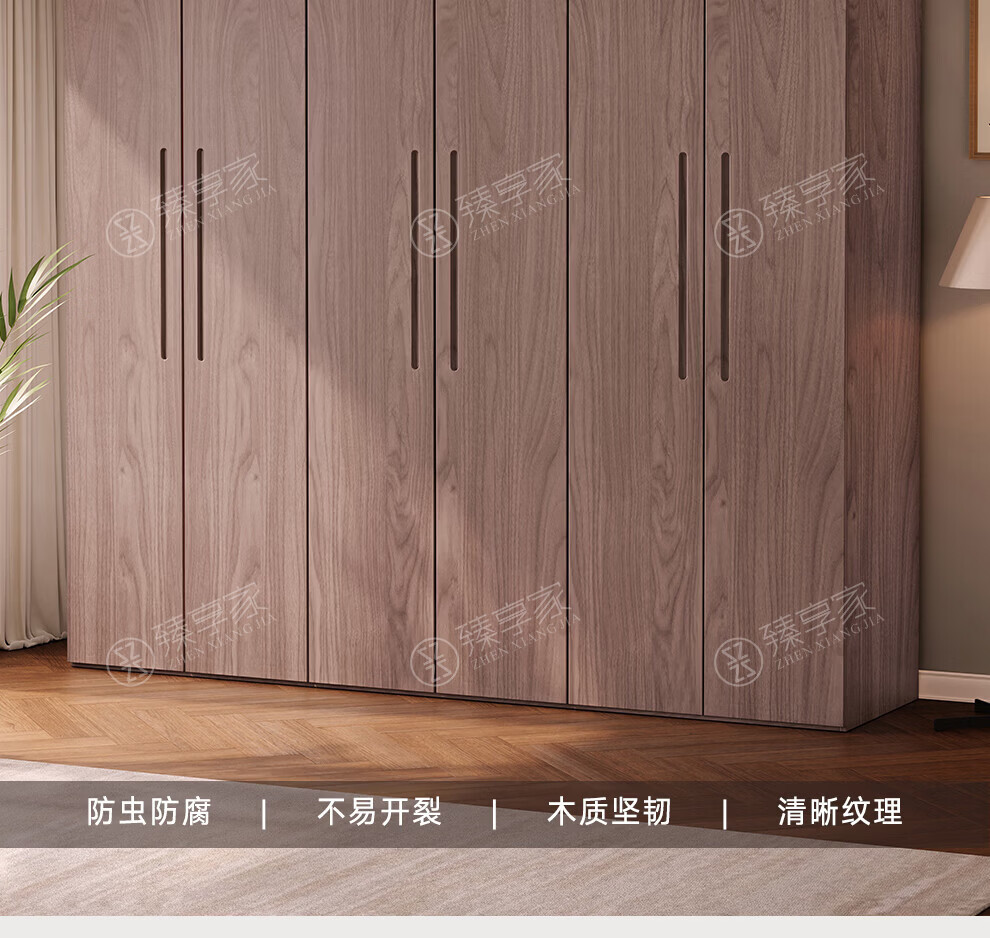 Zhenxiangjia all solid wood wardrobe custom wardrobe home bedroom wardrobe FAS grade oak one door to top wardrobe oak 1.6 meters four door wardrobe 2.4 meters high