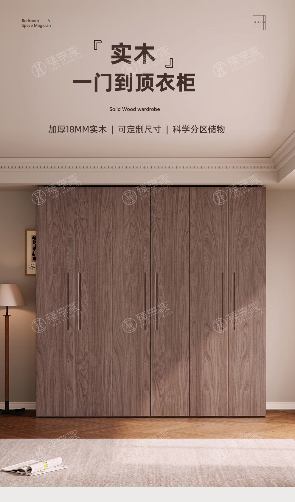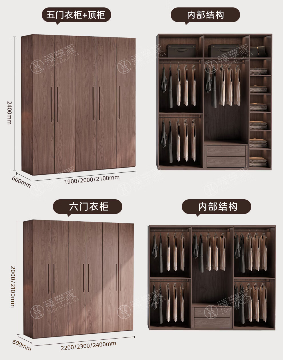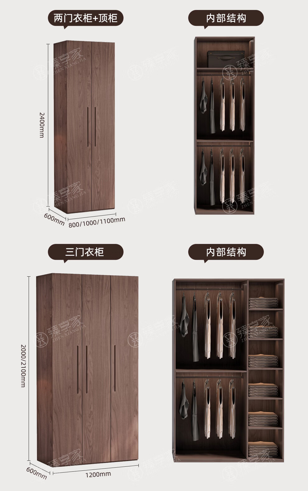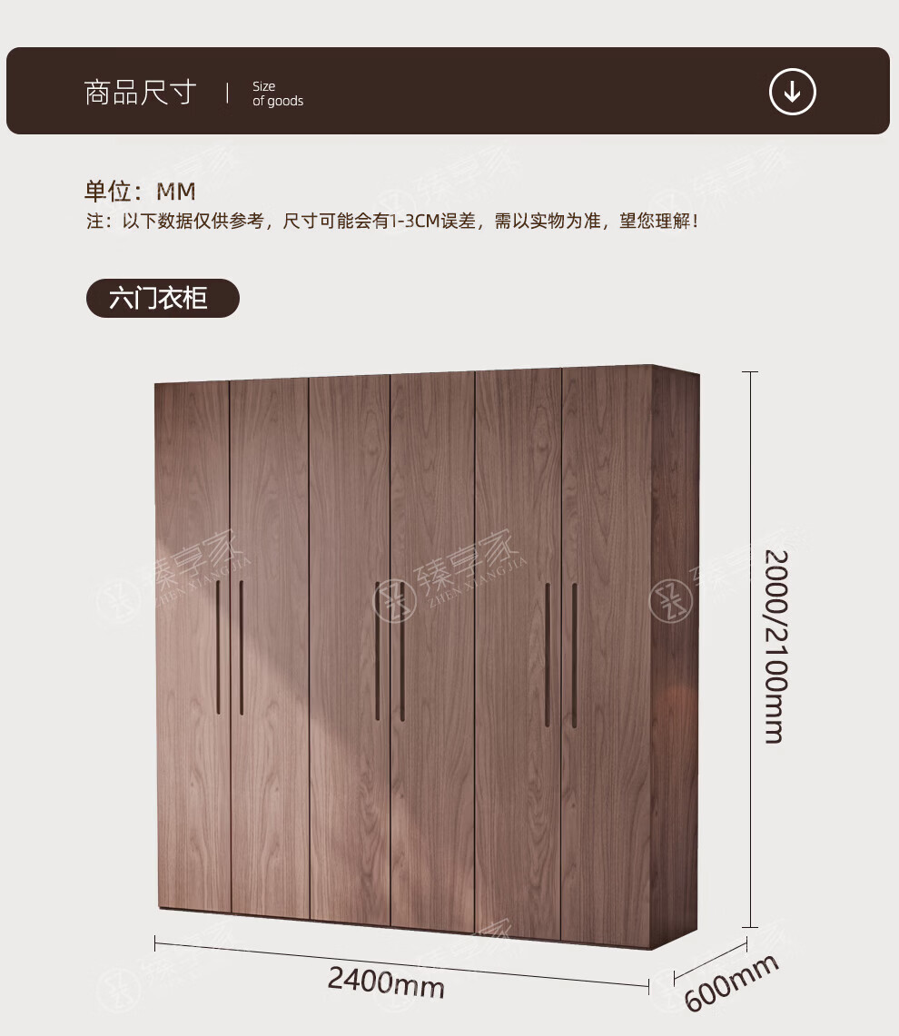 Zhenxiangjia all solid wood wardrobe custom wardrobe home bedroom wardrobe FAS grade oak one door to top wardrobe oak 1.6 meters four door wardrobe 2.4 meters high