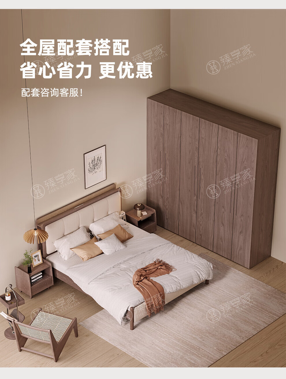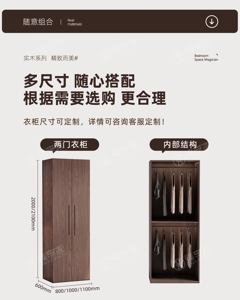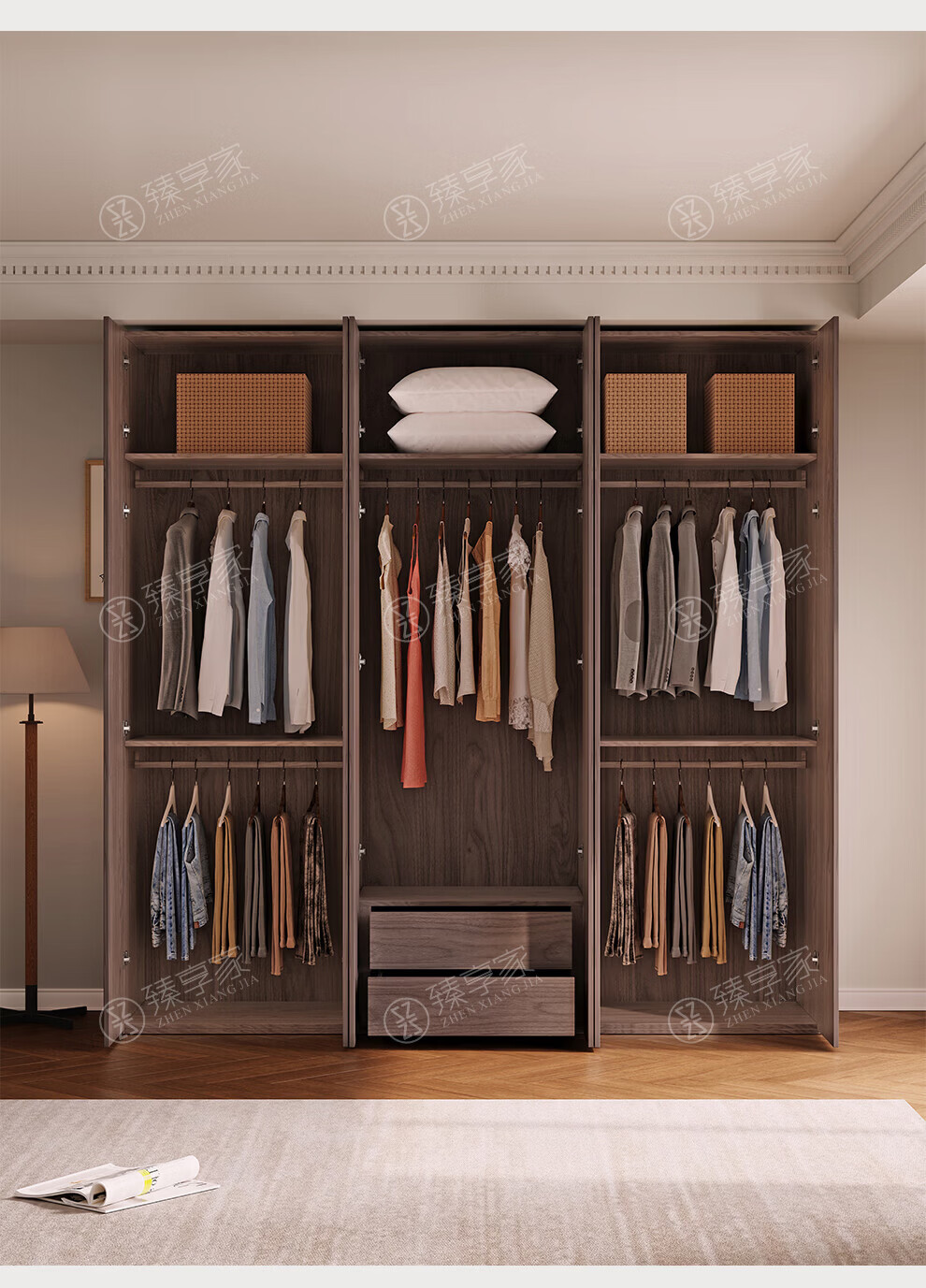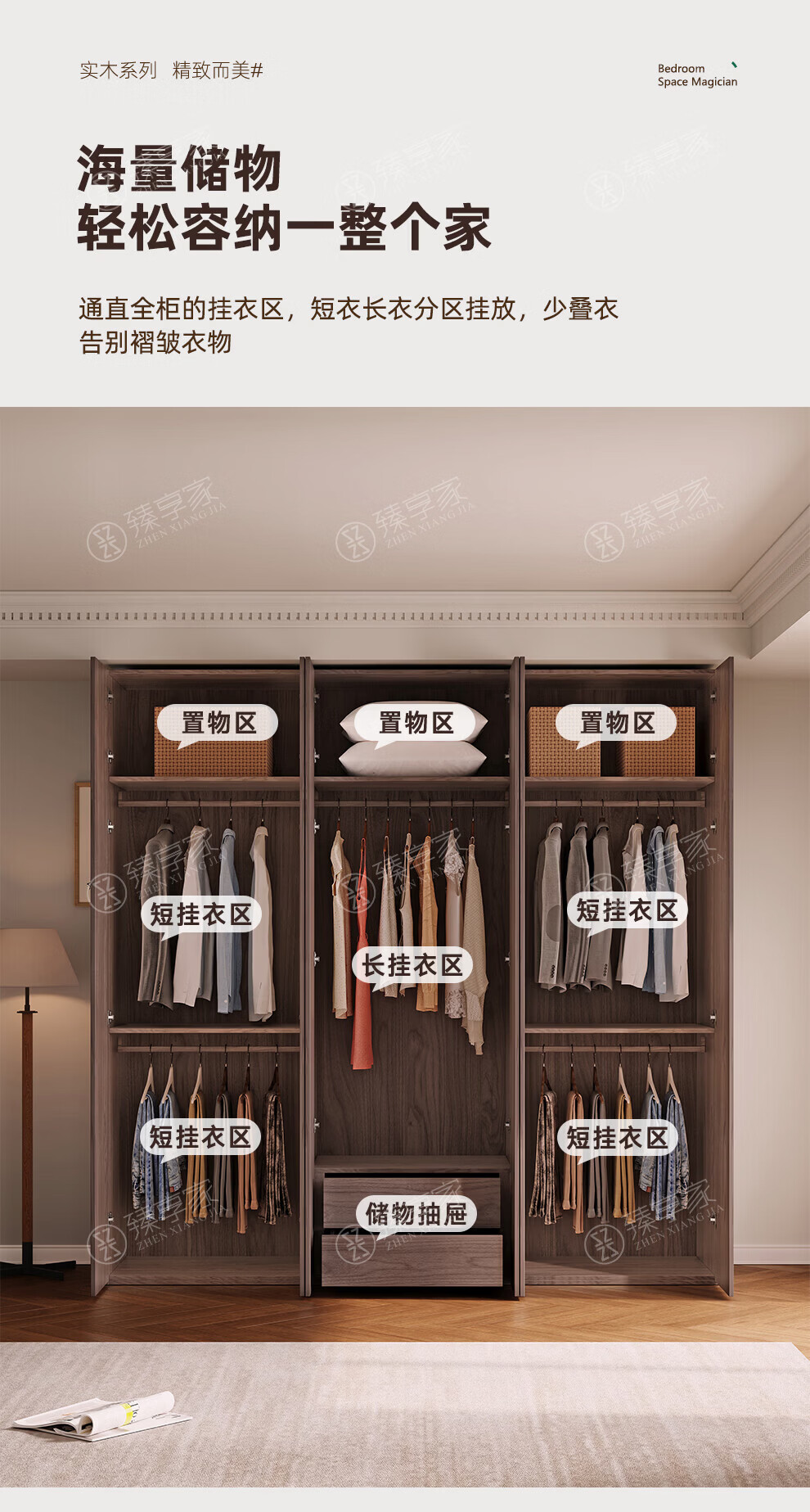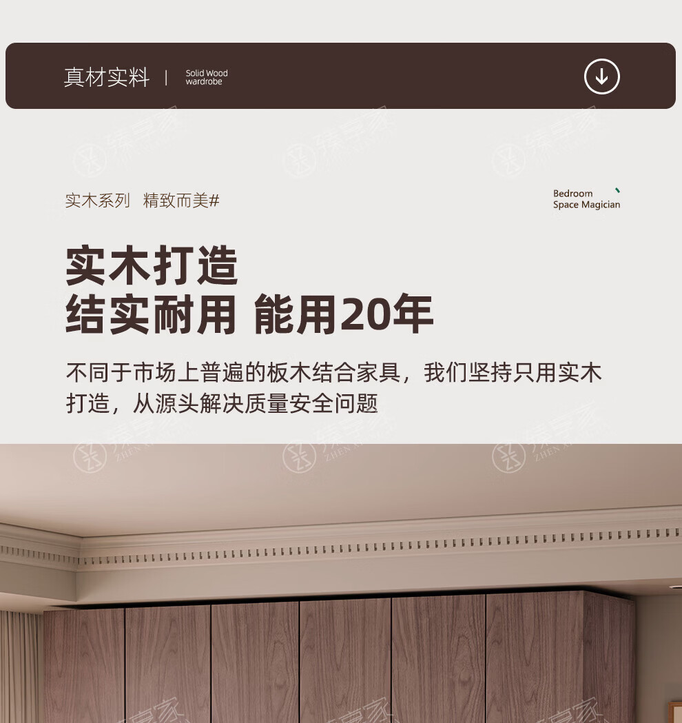 Zhenxiangjia all solid wood wardrobe custom wardrobe home bedroom wardrobe FAS grade oak one door to top wardrobe oak 1.6 meters four door wardrobe 2.4 meters high