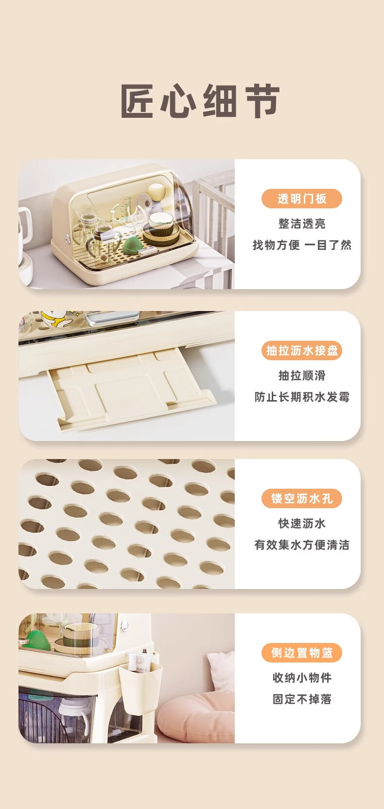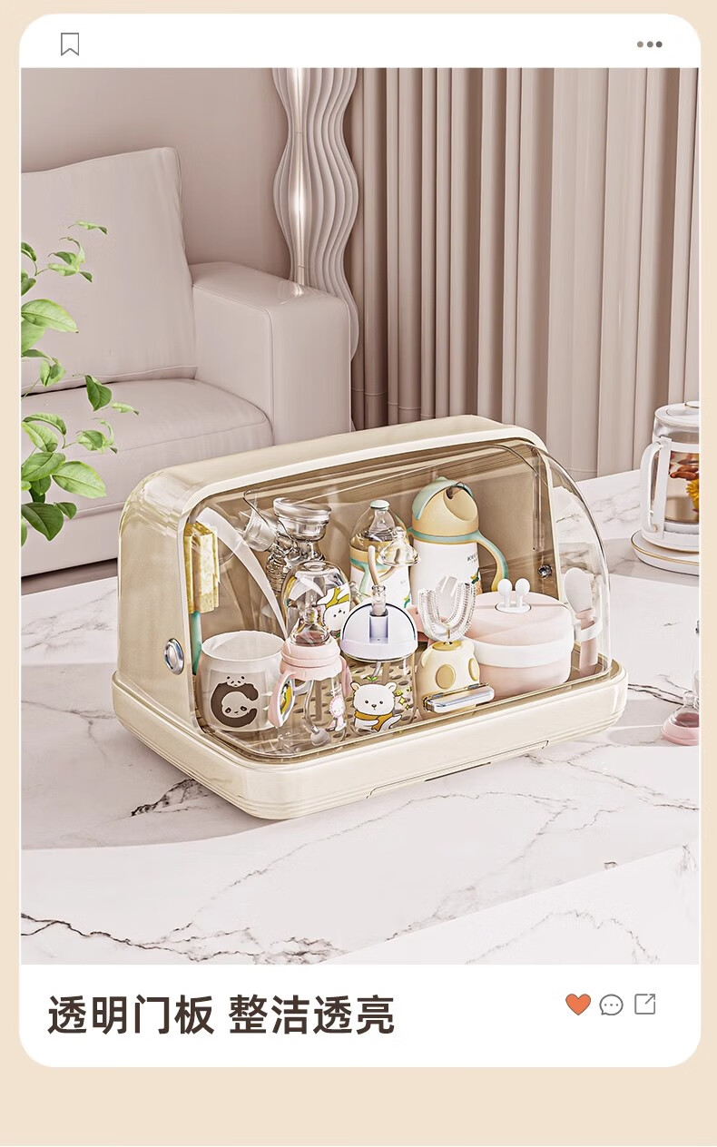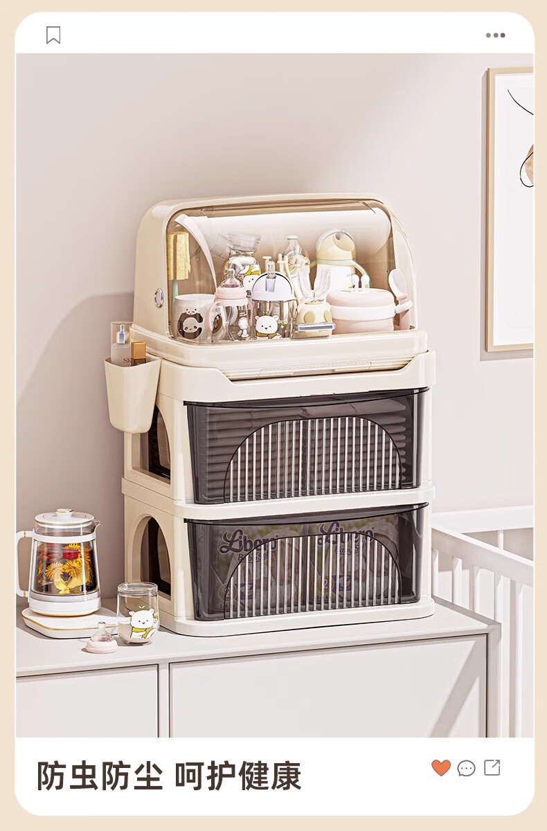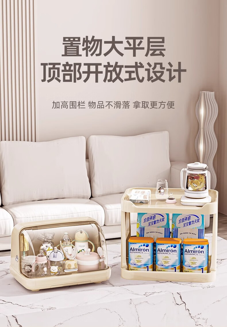 Nafenai Food Grade Material Baby Bottle Storage Box Drain Rack with Cover Dustproof Baby Food Complementary Tableware Storage Box Two Layers - Bottle Rack + Elevated Rack - Milk Coffee Color