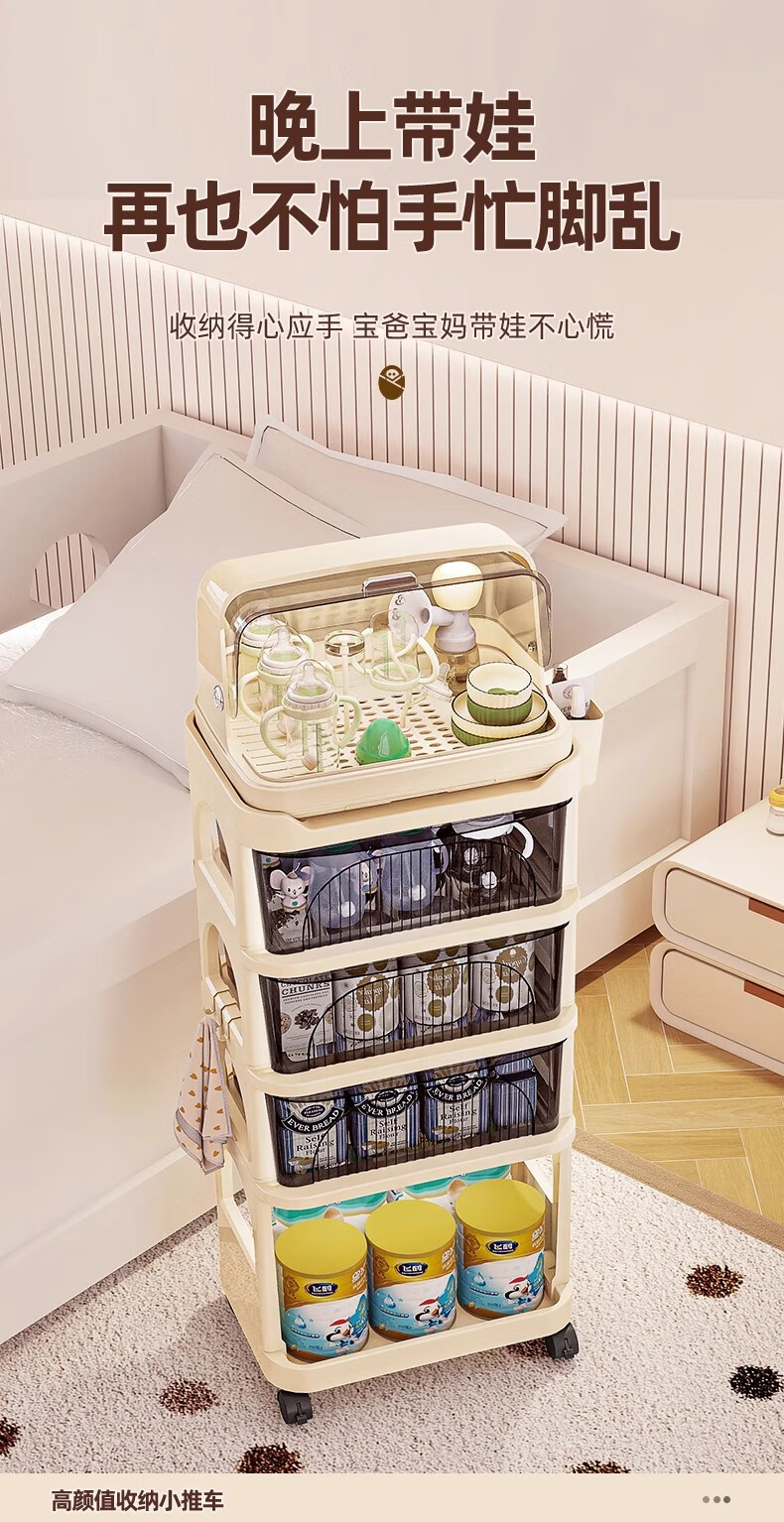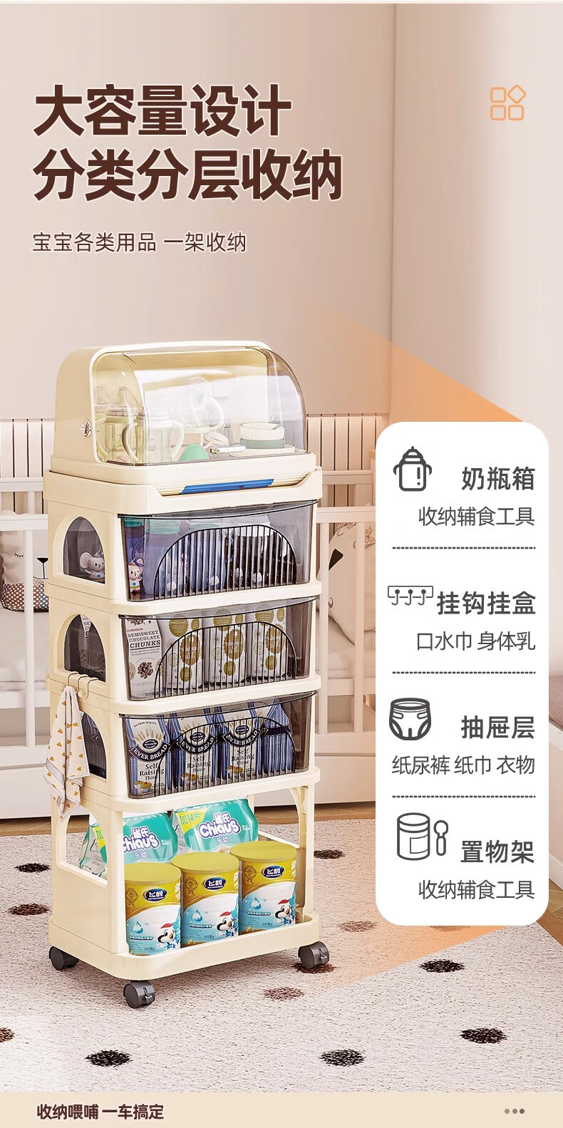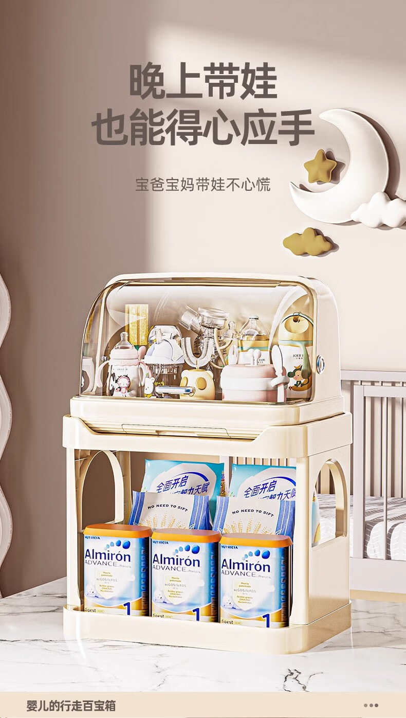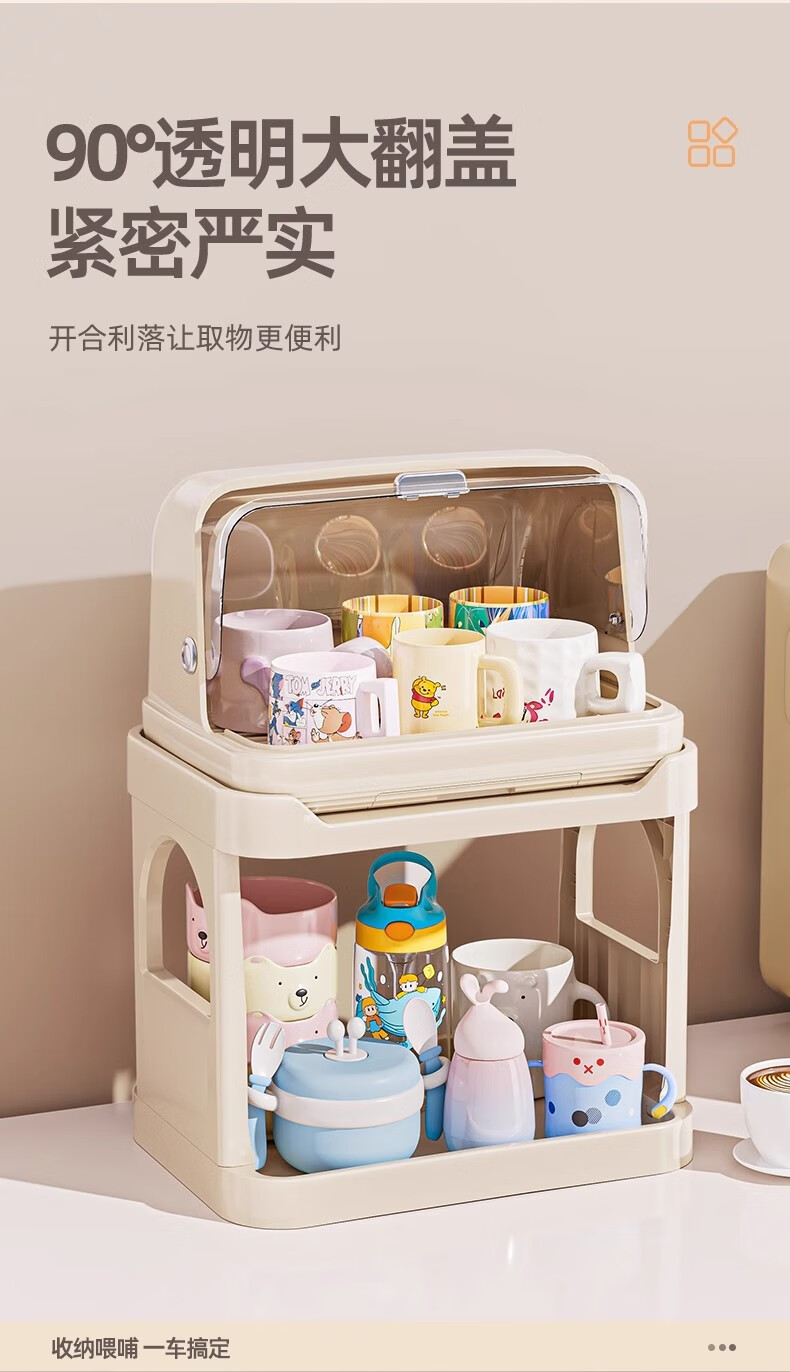 Nafenai Food Grade Material Baby Bottle Storage Box Drain Rack with Cover Dustproof Baby Food Complementary Tableware Storage Box Two Layers - Bottle Rack + Elevated Rack - Milk Coffee Color
