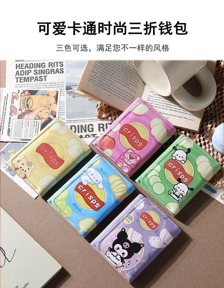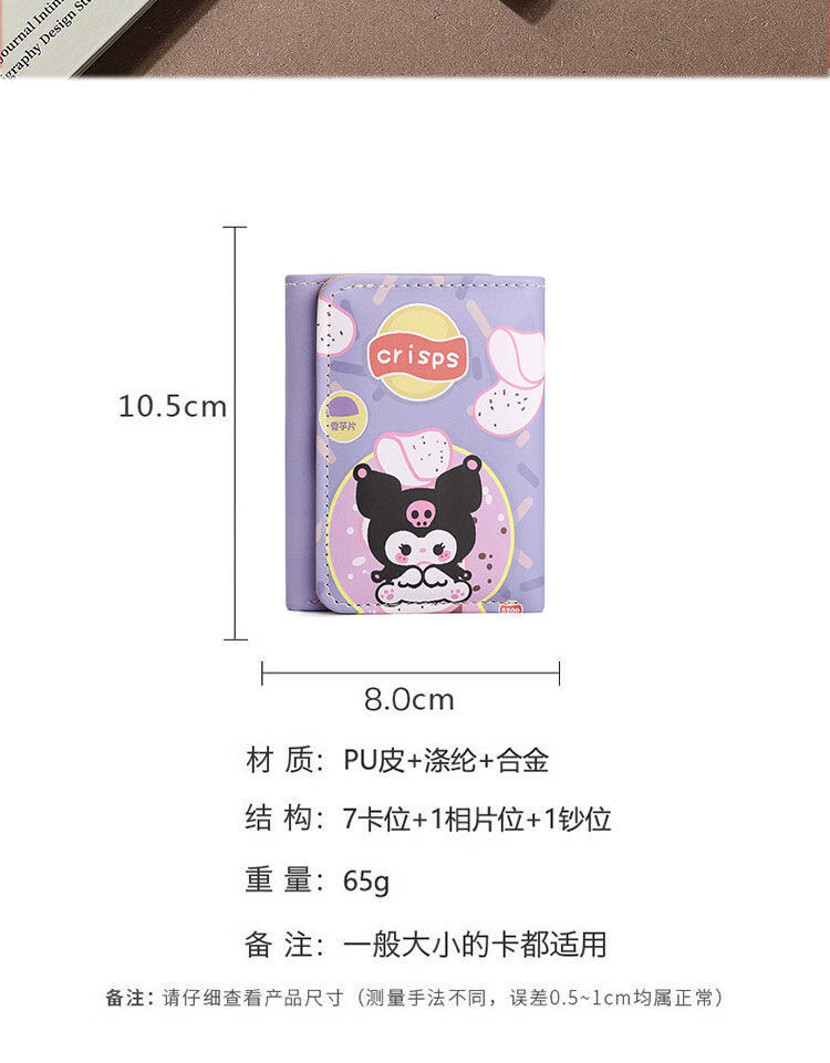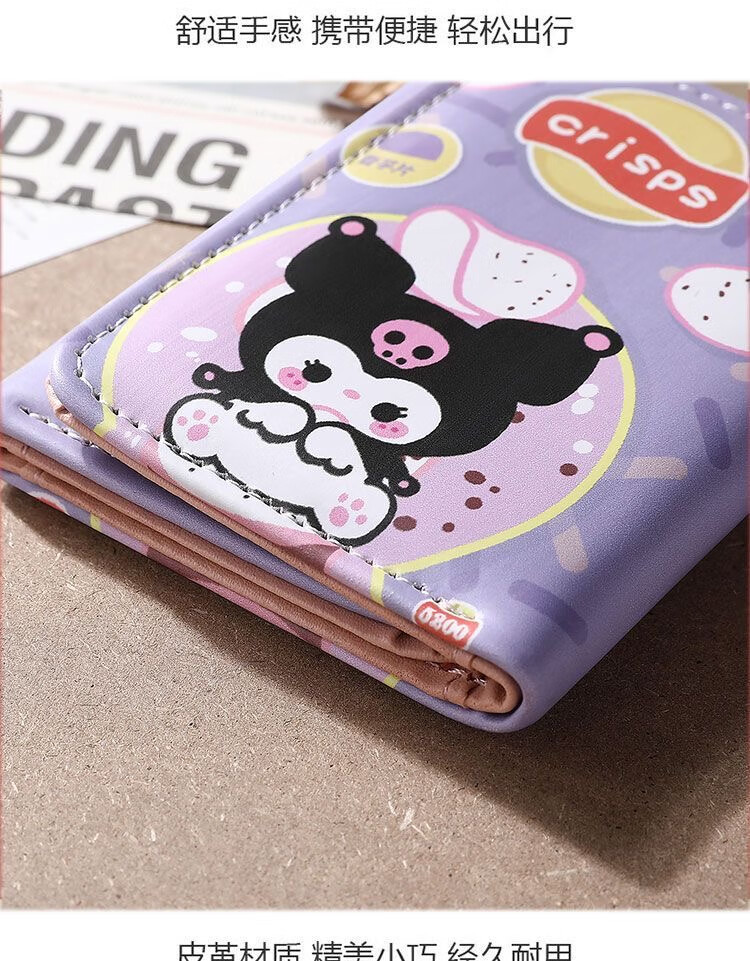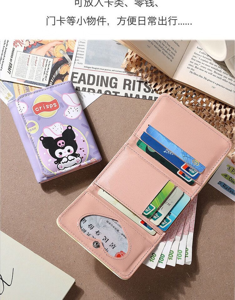 Chengyang Cartoon Cute Girls Short Wallet Pacha Dog Kuromi Cinnamon Dog Creative Three-fold Student Small Purse Children Kuromi-Small Purse