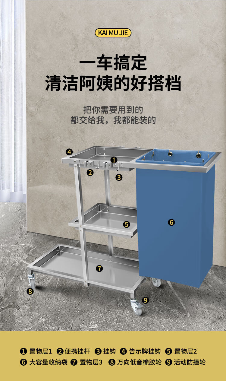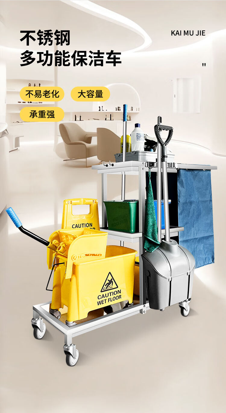 Wen Yijia stainless steel cleaning truck cleaning truck hotel property multi-functional linen truck cleaning hand push tool KC-01 yellow thickened stainless steel square tube