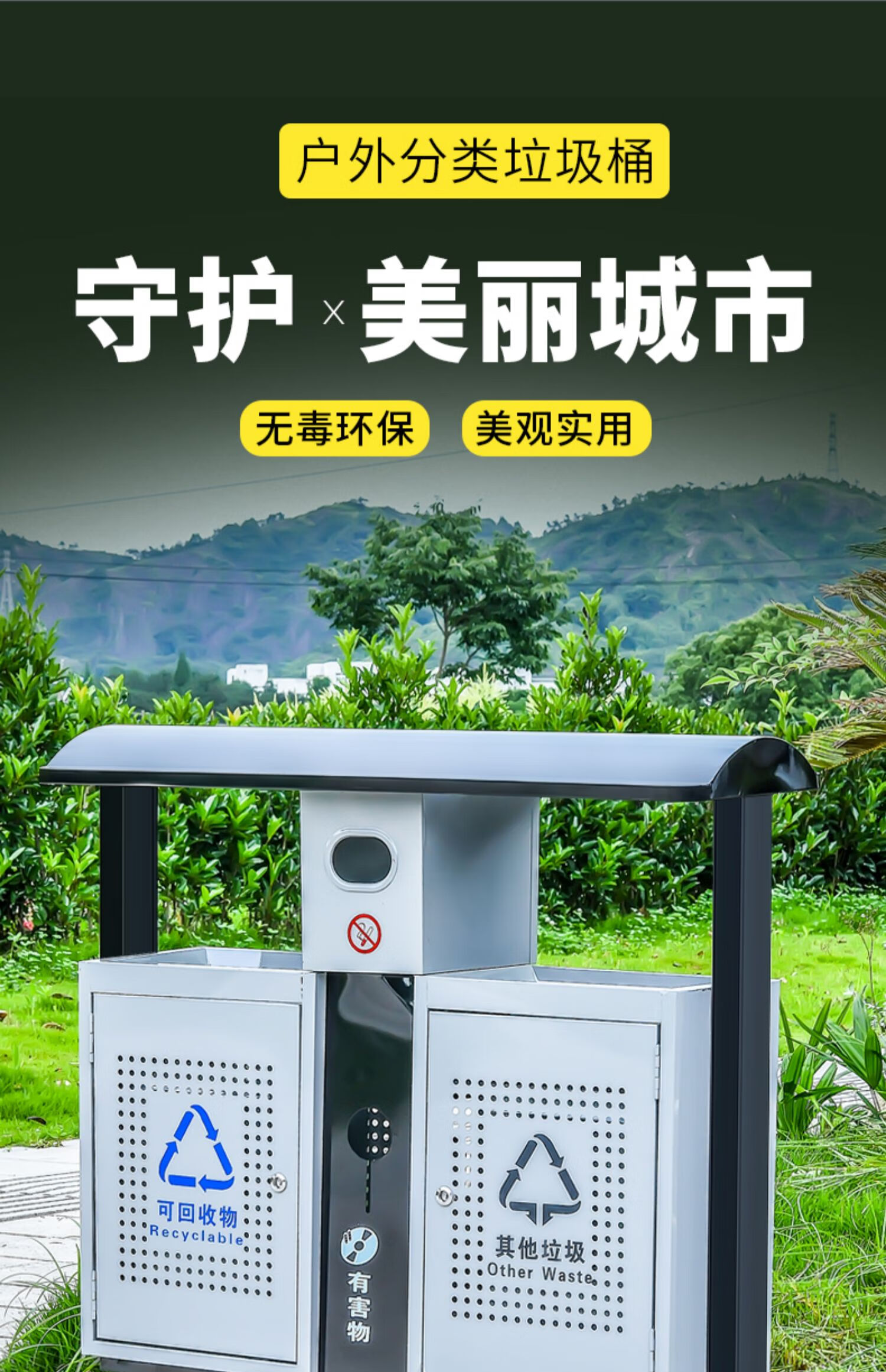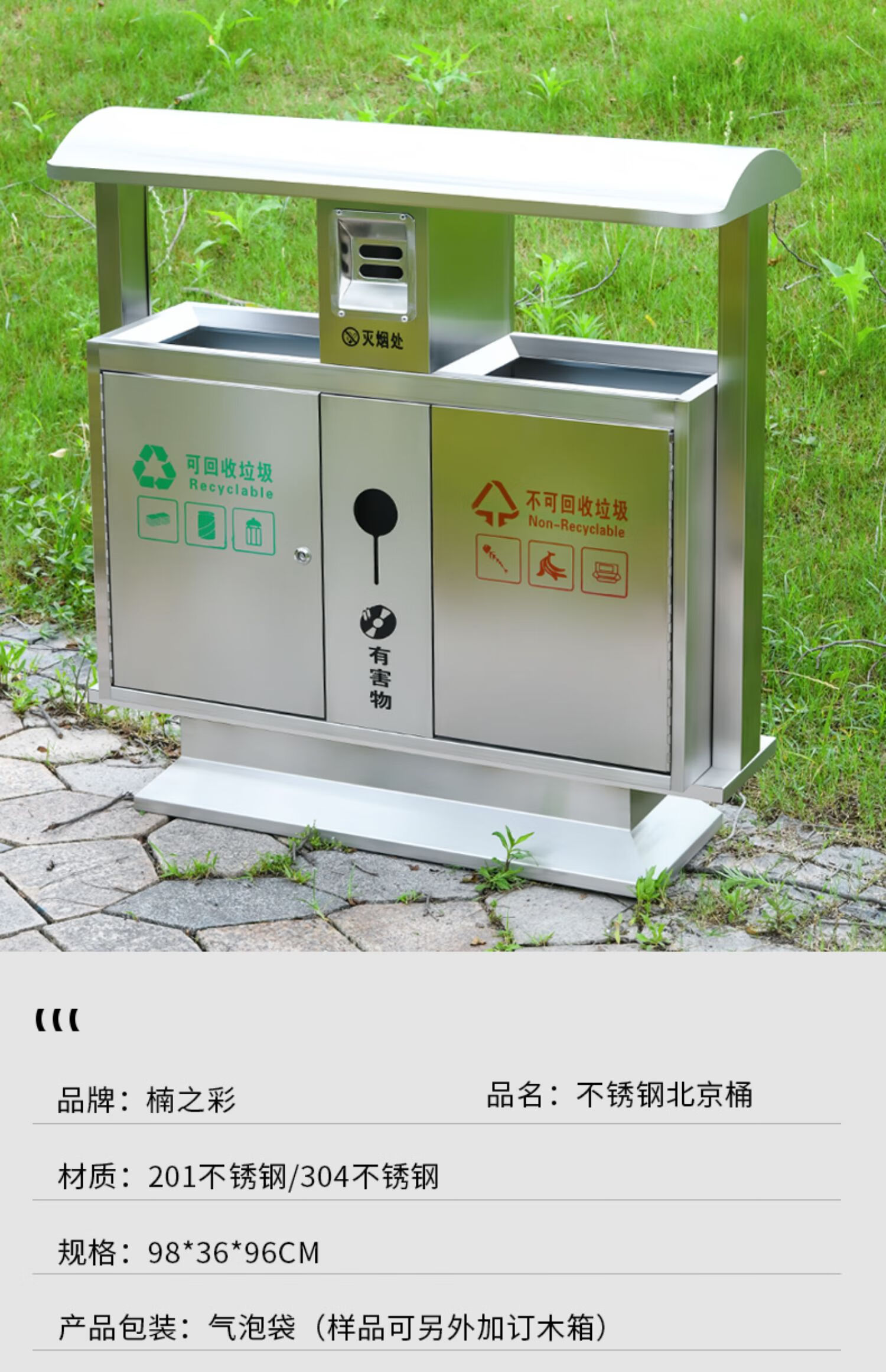 Outdoor trash can large sanitation peel box outdoor residential area scenic park stainless steel custom classified trash bin Beijing bucket