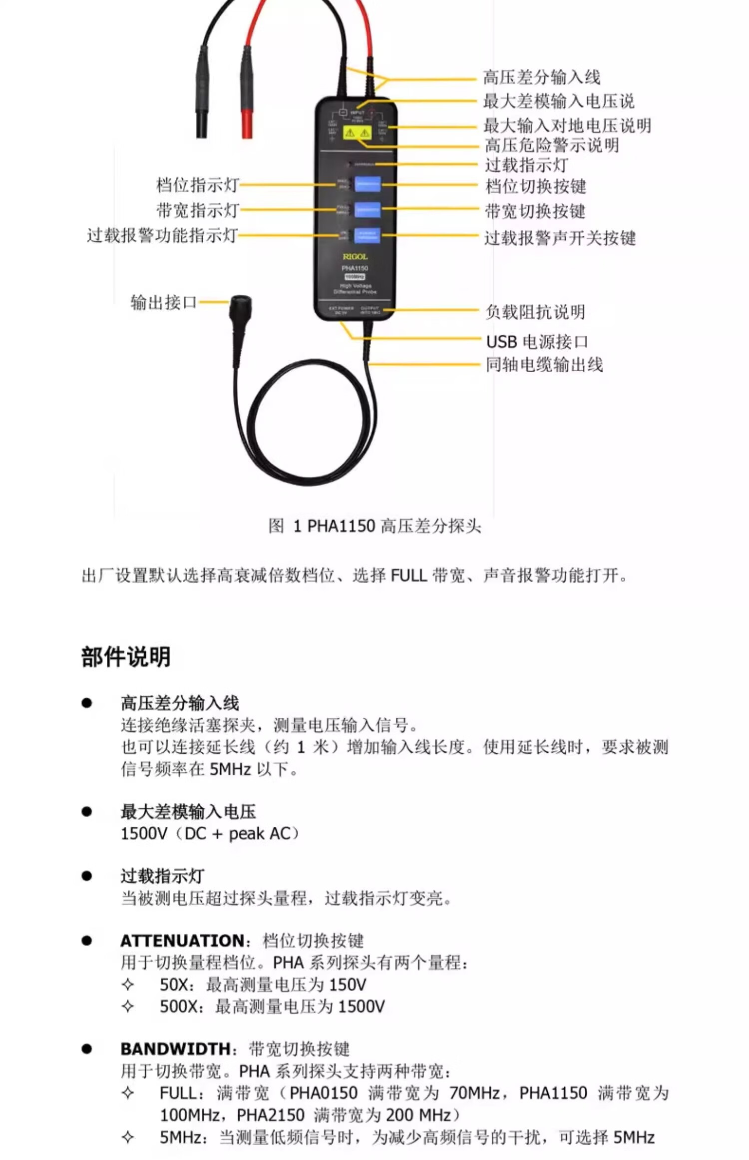 Kezitupuyuan oscilloscope high voltage differential probe isolation PHA0150/PHA1150/PHA2150 PHA0150 (70MHz/1500V)