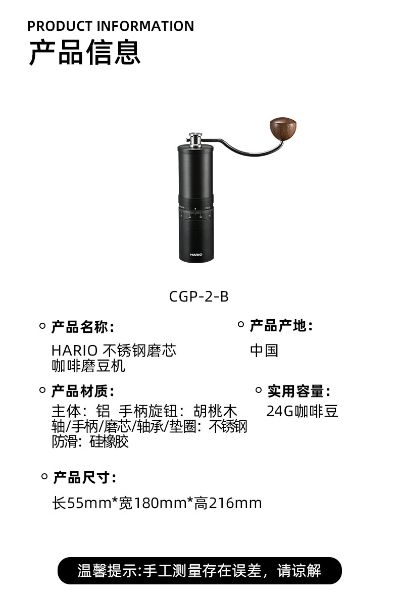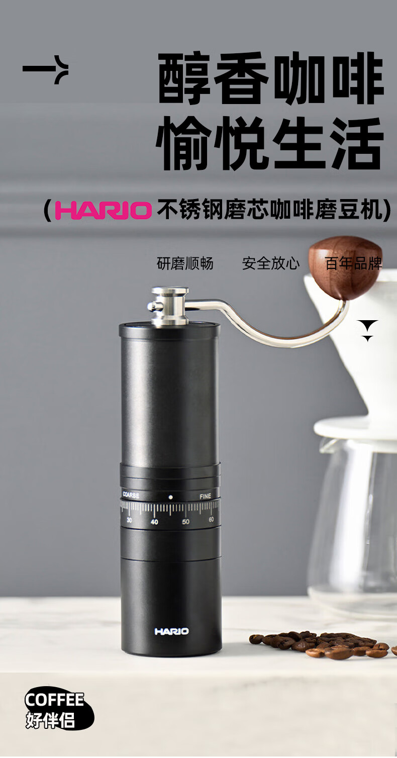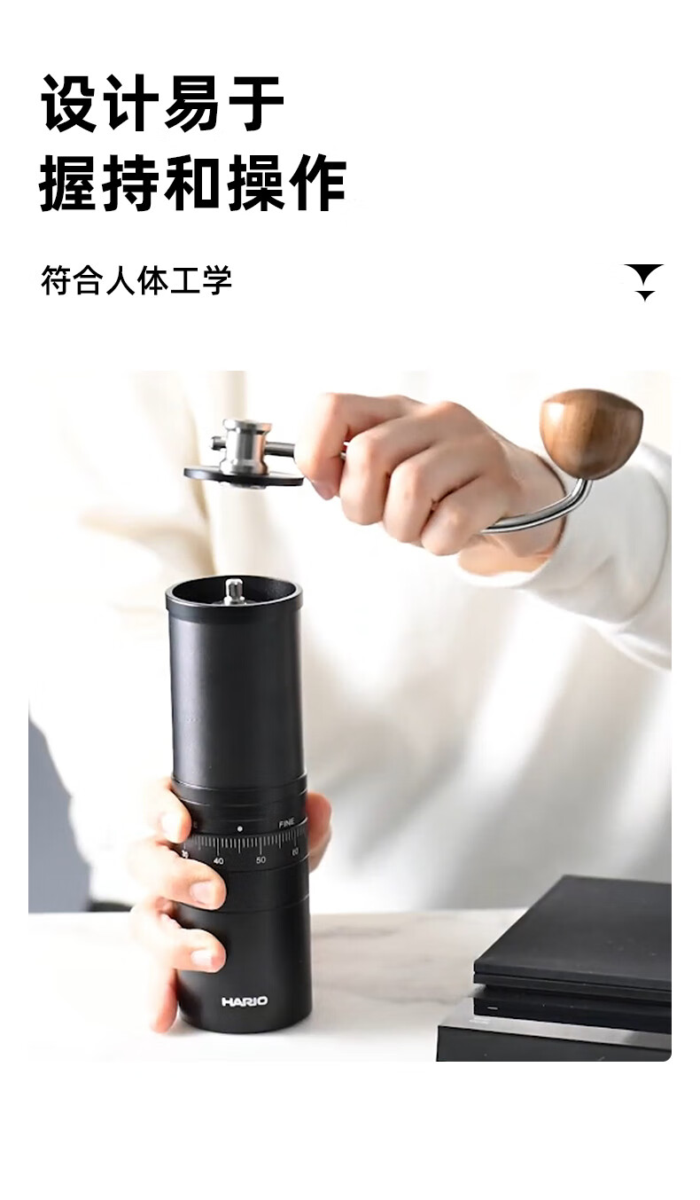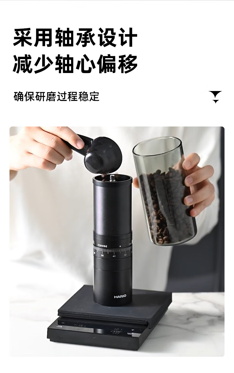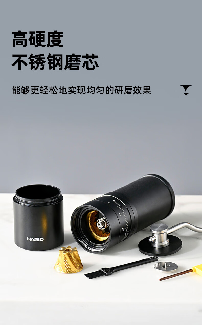HARIO new stainless steel core hand grinder coffee bean grinder precision adjustment household portable outdoor stainless steel core grinder capacity 24g