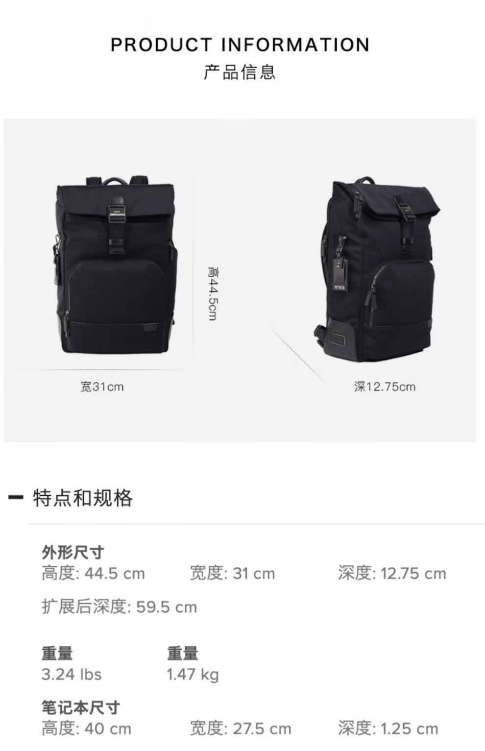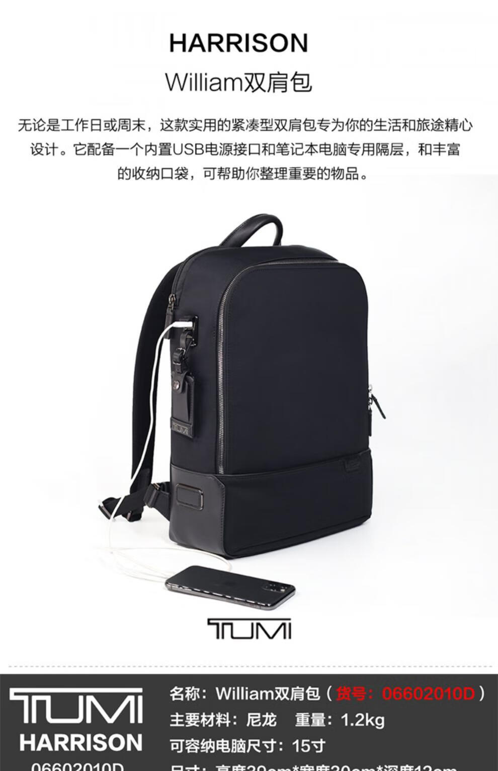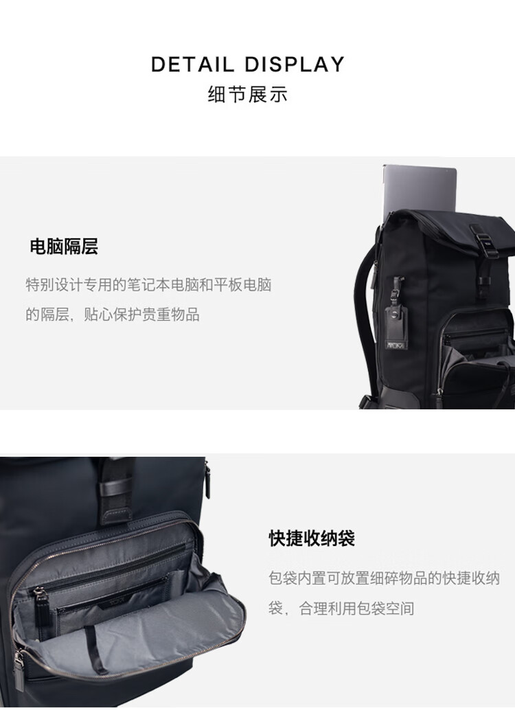 TUMI American Harrison Personalized Business Simple Roll Top Backpack 0660D Iron Gray 0660DIRN/Large/Channel/
