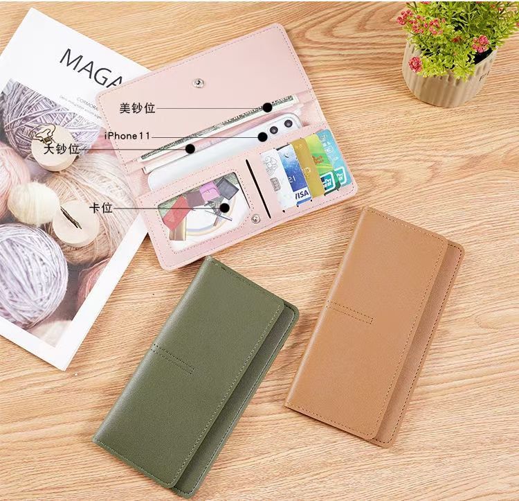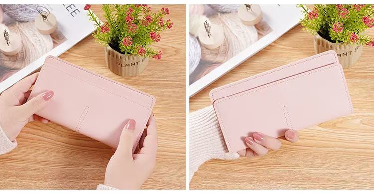 Yunluo Qixi Women's Wallet Thin Wallet Long Multifunctional Wallet Simple Clutch Multi-Card Slot Coin Purse Pink